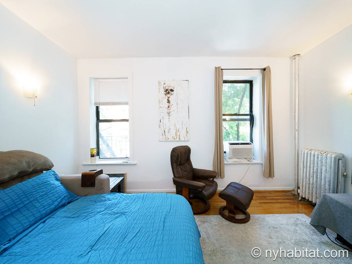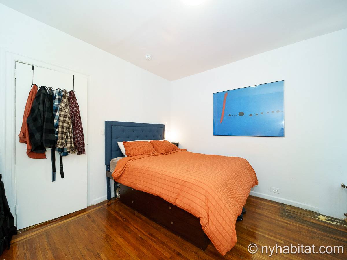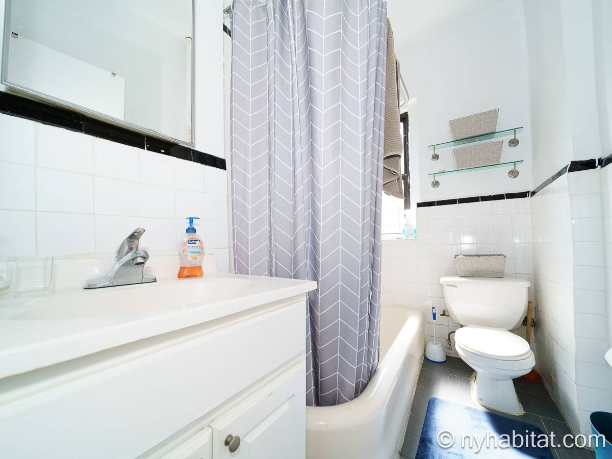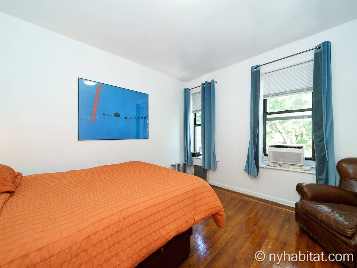 Questo appartamento ammobiliato di circa 77 m2 situato a Upper Manhattan si trova al secondo piano (equivalente al primo piano europeo) vicino all’angolo tra 148th Street e Convent Avenue. Oltre alle camere da letto, comprende anche una zona giorno e una cucina. La zona giorno dispone di un tavolo da pranzo, mentre la cucina indipendente è dotata di frigorifero, freezer, forno, microonde, macchina del caffè e tostapane. In entrambe le camere da letto ci sono delle finestre affacciate sull’esterno, aria condizionata e letti queen size. La seconda camera da letto offre anche di una televisione. Nel bagno è disponibile una doccia con vasca a incasso e spazio sotto al lavandino per riporre i vostri effetti personali.