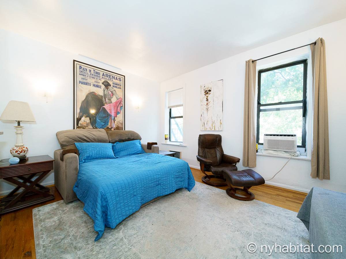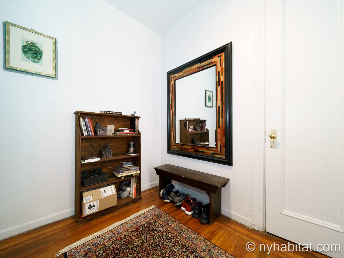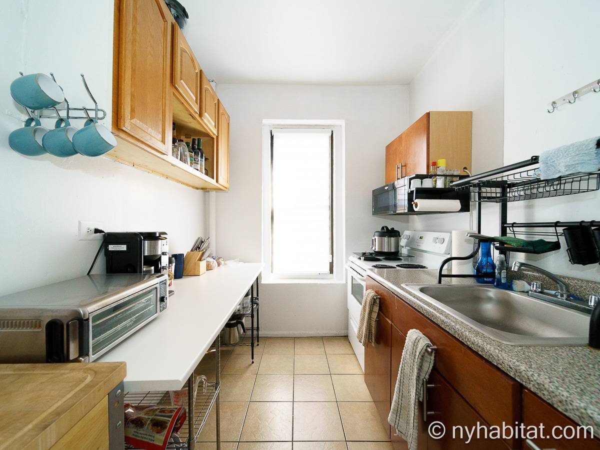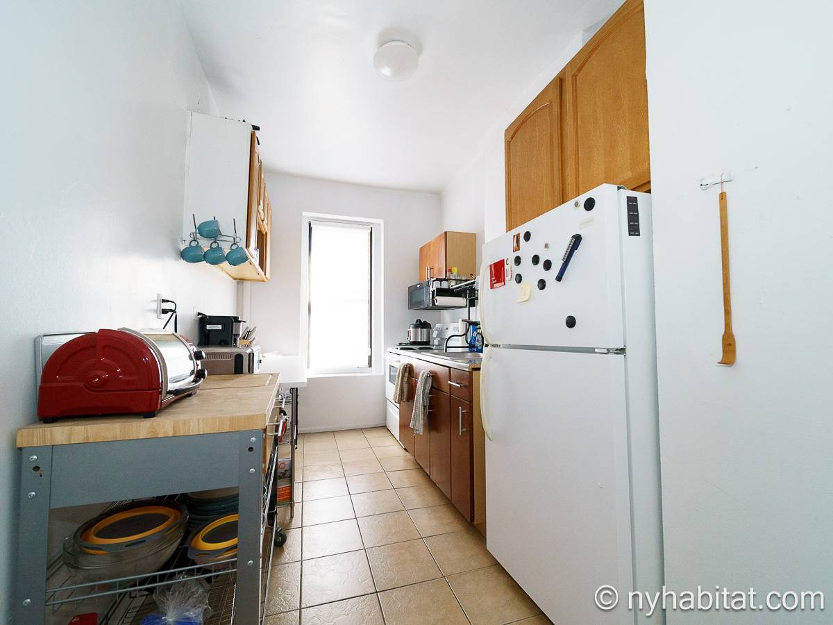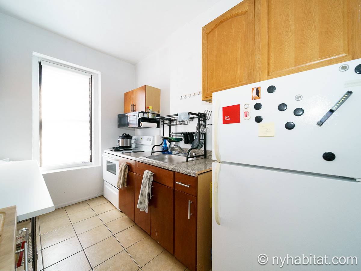 Questo appartamento ammobiliato di circa 77 m2 situato a Upper Manhattan si trova al secondo piano (equivalente al primo piano europeo) vicino all’angolo tra 148th Street e Convent Avenue. Oltre alle camere da letto, comprende anche una zona giorno e una cucina. La zona giorno dispone di un tavolo da pranzo, mentre la cucina indipendente è dotata di frigorifero, freezer, forno, microonde, macchina del caffè e tostapane. In entrambe le camere da letto ci sono delle finestre affacciate sull’esterno, aria condizionata e letti queen size. La seconda camera da letto offre anche di una televisione. Nel bagno è disponibile una doccia con vasca a incasso e spazio sotto al lavandino per riporre i vostri effetti personali.