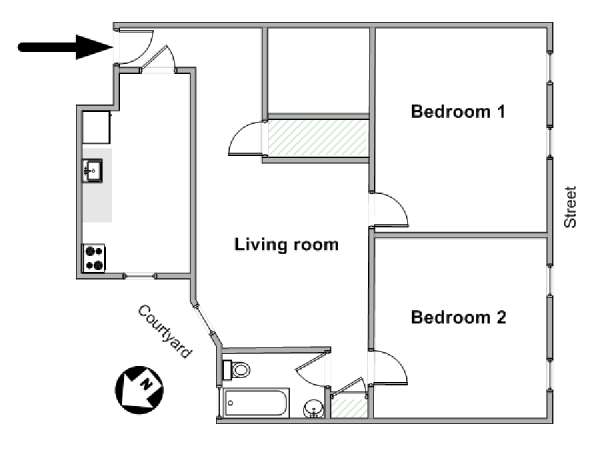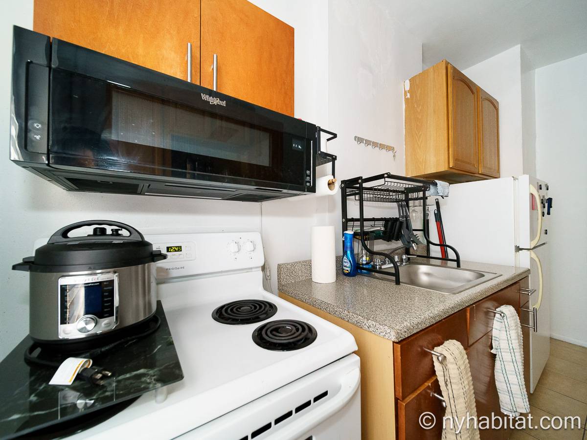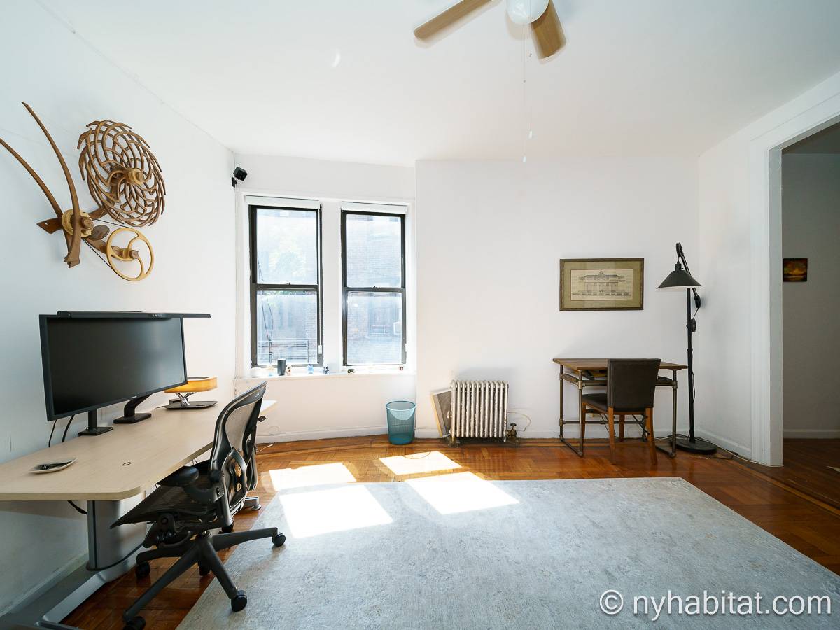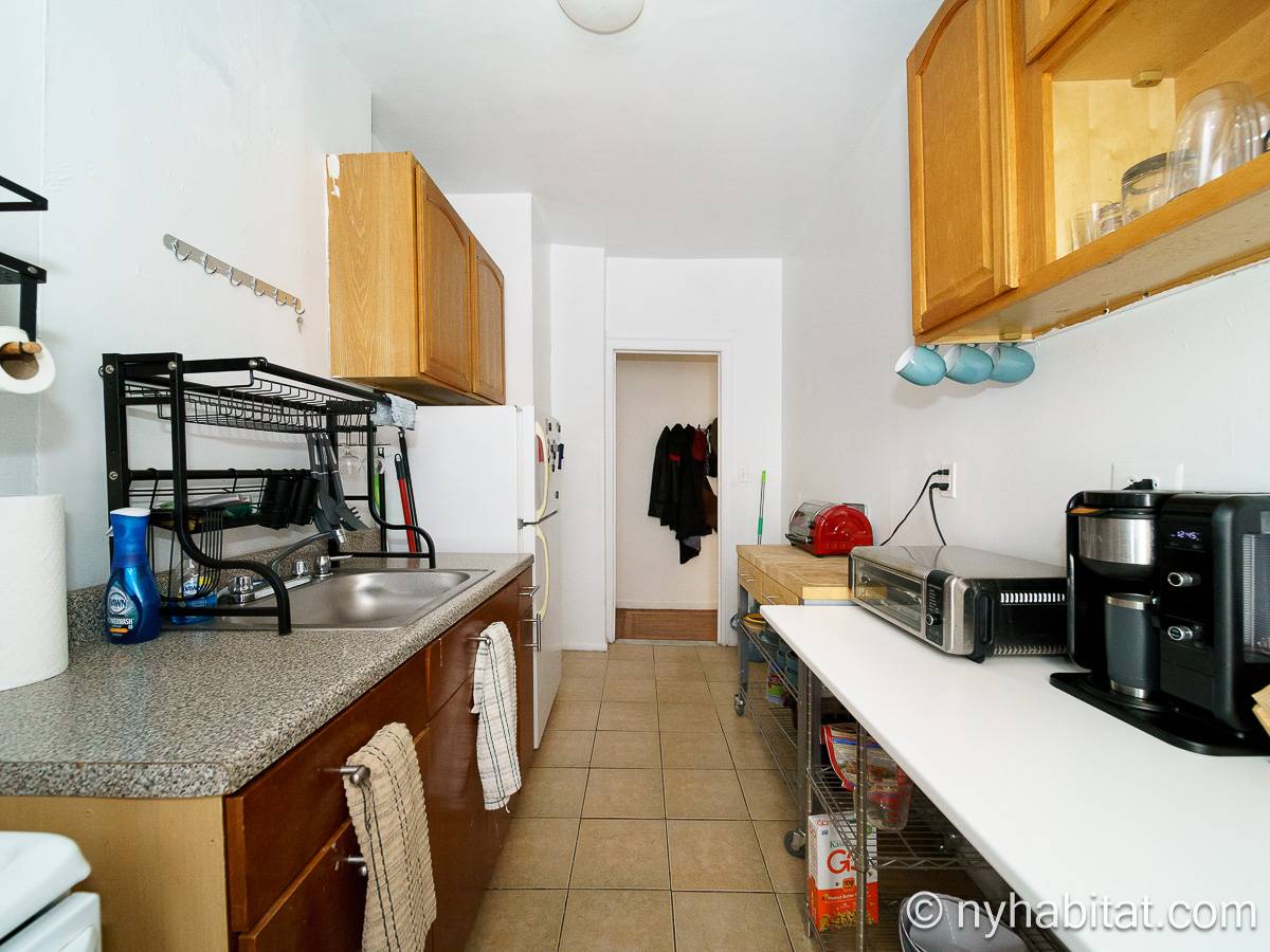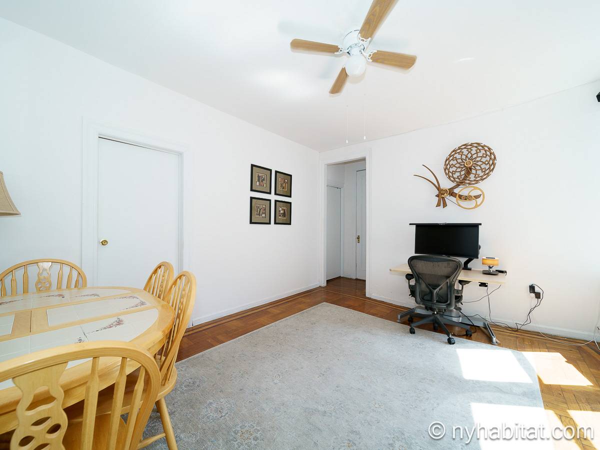 Questo appartamento ammobiliato di circa 77 m2 situato a Upper Manhattan si trova al secondo piano (equivalente al primo piano europeo) vicino all’angolo tra 148th Street e Convent Avenue. Oltre alle camere da letto, comprende anche una zona giorno e una cucina. La zona giorno dispone di un tavolo da pranzo, mentre la cucina indipendente è dotata di frigorifero, freezer, forno, microonde, macchina del caffè e tostapane. In entrambe le camere da letto ci sono delle finestre affacciate sull’esterno, aria condizionata e letti queen size. La seconda camera da letto offre anche di una televisione. Nel bagno è disponibile una doccia con vasca a incasso e spazio sotto al lavandino per riporre i vostri effetti personali.