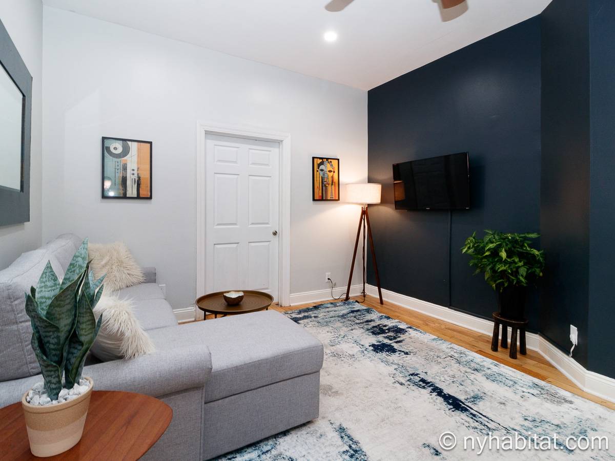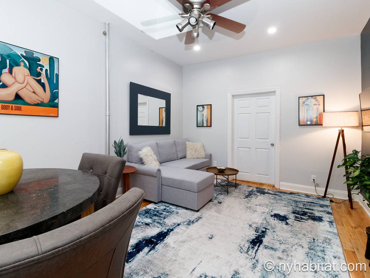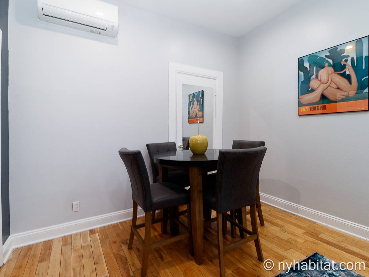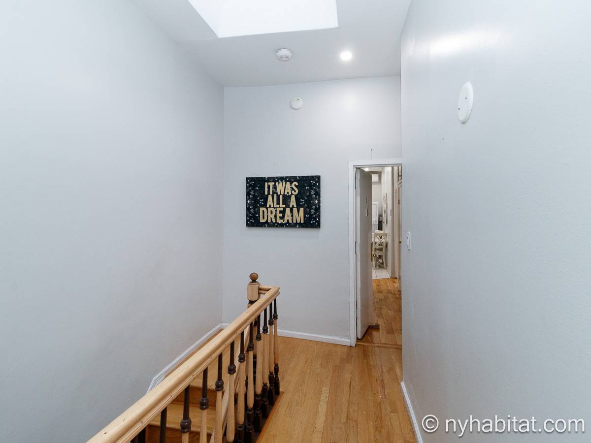 L’appartamento ammobiliato ha una superficie di 93 m2 e si trova all’ultimo piano di una villetta a schiera di tre piani, situata vicino all’angolo tra Bergen Street e Ralph Avenue. Nel soggiorno troverete aria condizionata, un tavolo da pranzo, una TV e un divano estraibile che si trasforma in un divano letto matrimoniale. La cucina separata è completa di frigorifero con freezer, microonde, forno, lavastoviglie, tostapane e macchina per il caffè. Le tre camere da letto dispongono tutte di aria condizionata e di una finestra che affaccia sulla strada o sul cortile. La prima e la seconda camera da letto presentano un letto queen size e una TV, mentre nella terza si trova un letto matrimoniale. Il bagno è fornito di vasca con doccia e di armadietti sotto il lavandino. Nell’appartamento troverete anche lavatrice e asciugatrice.