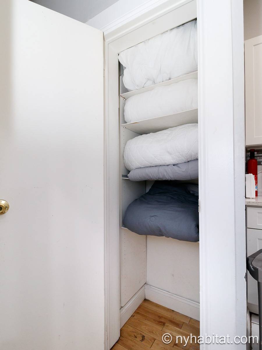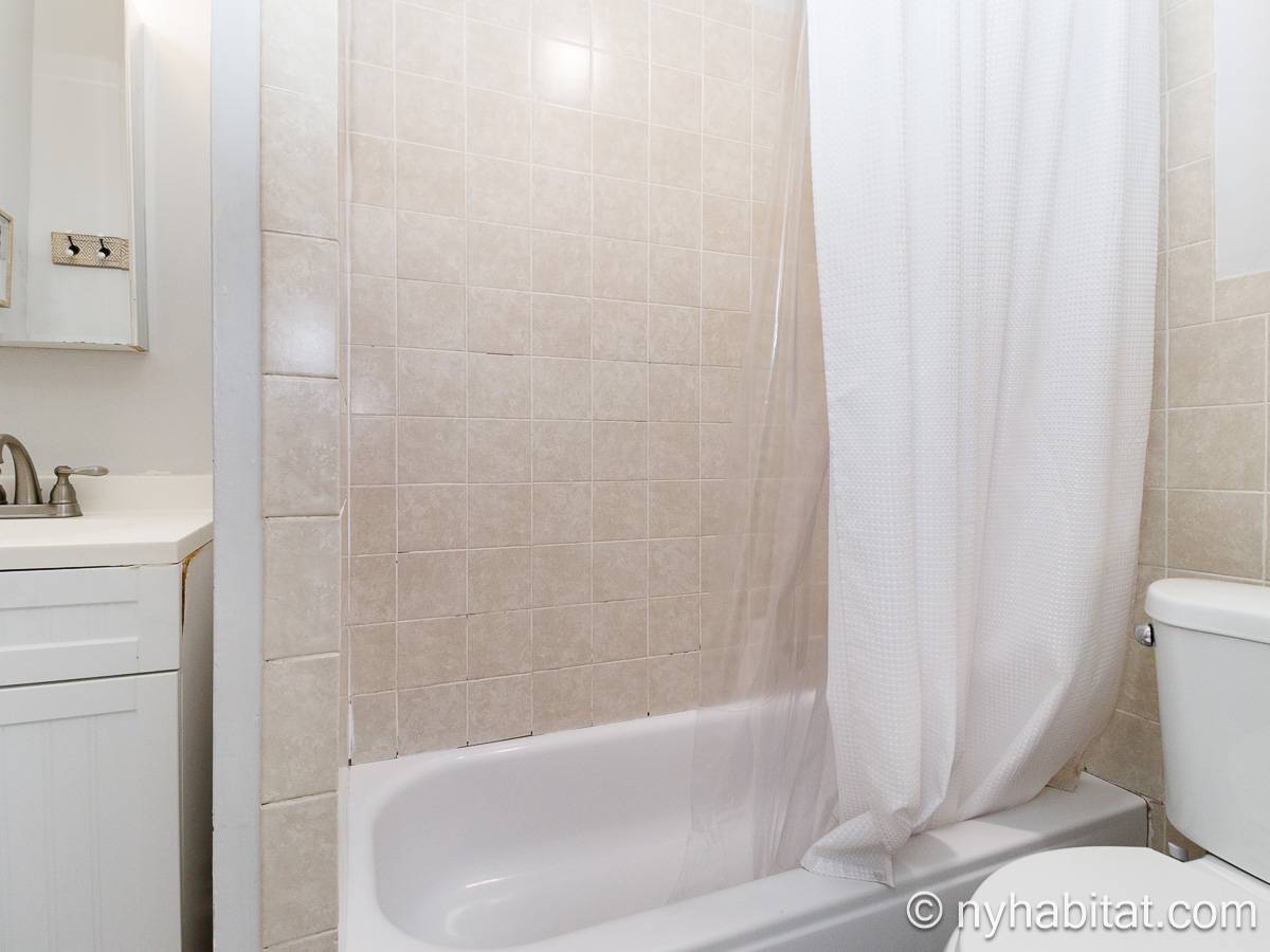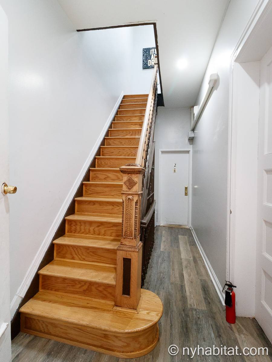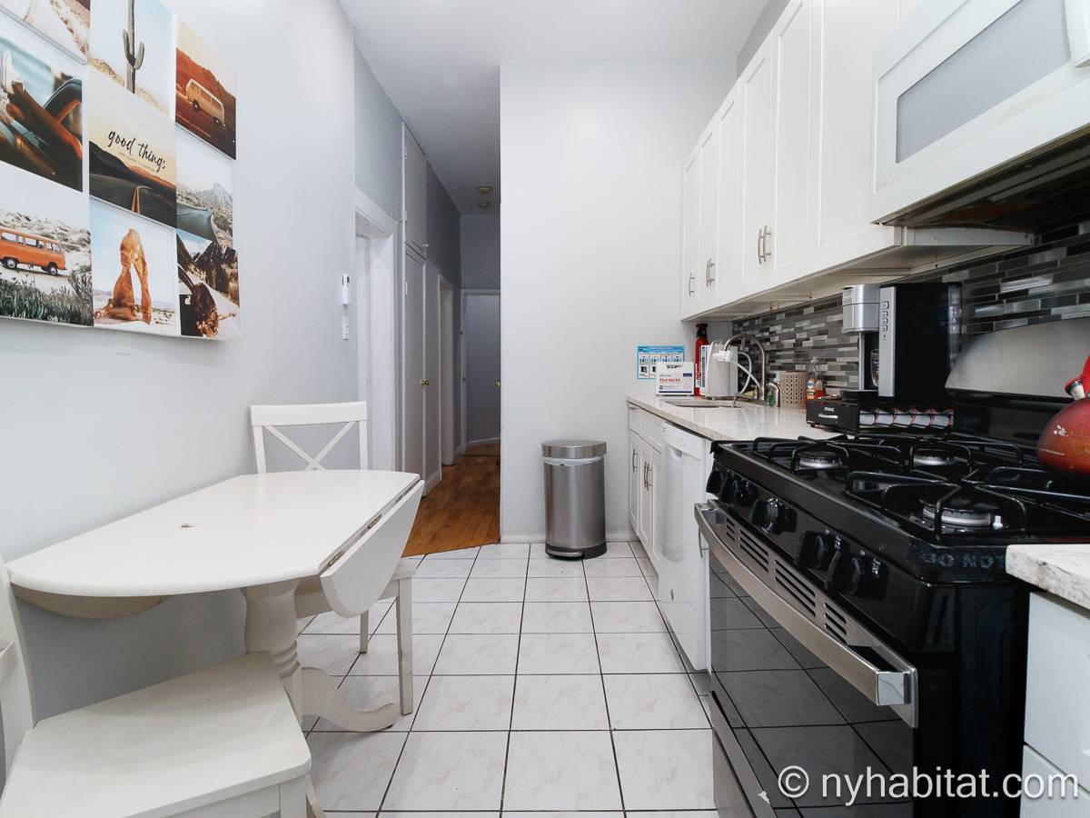 L’appartamento ammobiliato ha una superficie di 93 m2 e si trova all’ultimo piano di una villetta a schiera di tre piani, situata vicino all’angolo tra Bergen Street e Ralph Avenue. Nel soggiorno troverete aria condizionata, un tavolo da pranzo, una TV e un divano estraibile che si trasforma in un divano letto matrimoniale. La cucina separata è completa di frigorifero con freezer, microonde, forno, lavastoviglie, tostapane e macchina per il caffè. Le tre camere da letto dispongono tutte di aria condizionata e di una finestra che affaccia sulla strada o sul cortile. La prima e la seconda camera da letto presentano un letto queen size e una TV, mentre nella terza si trova un letto matrimoniale. Il bagno è fornito di vasca con doccia e di armadietti sotto il lavandino. Nell’appartamento troverete anche lavatrice e asciugatrice.