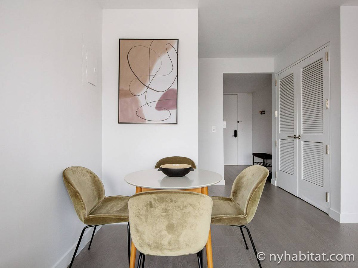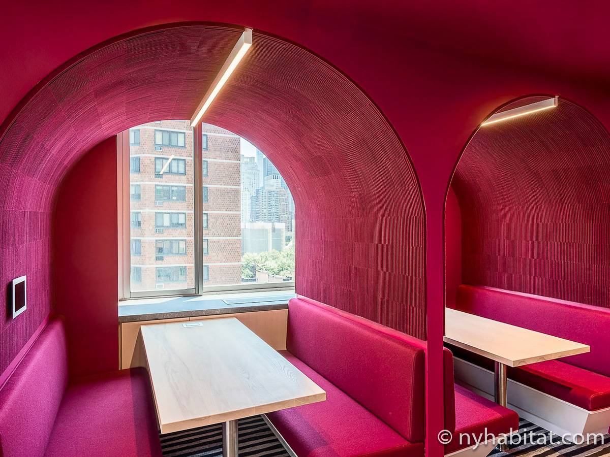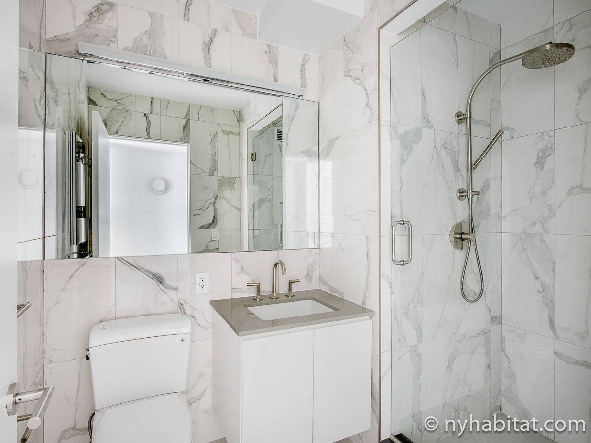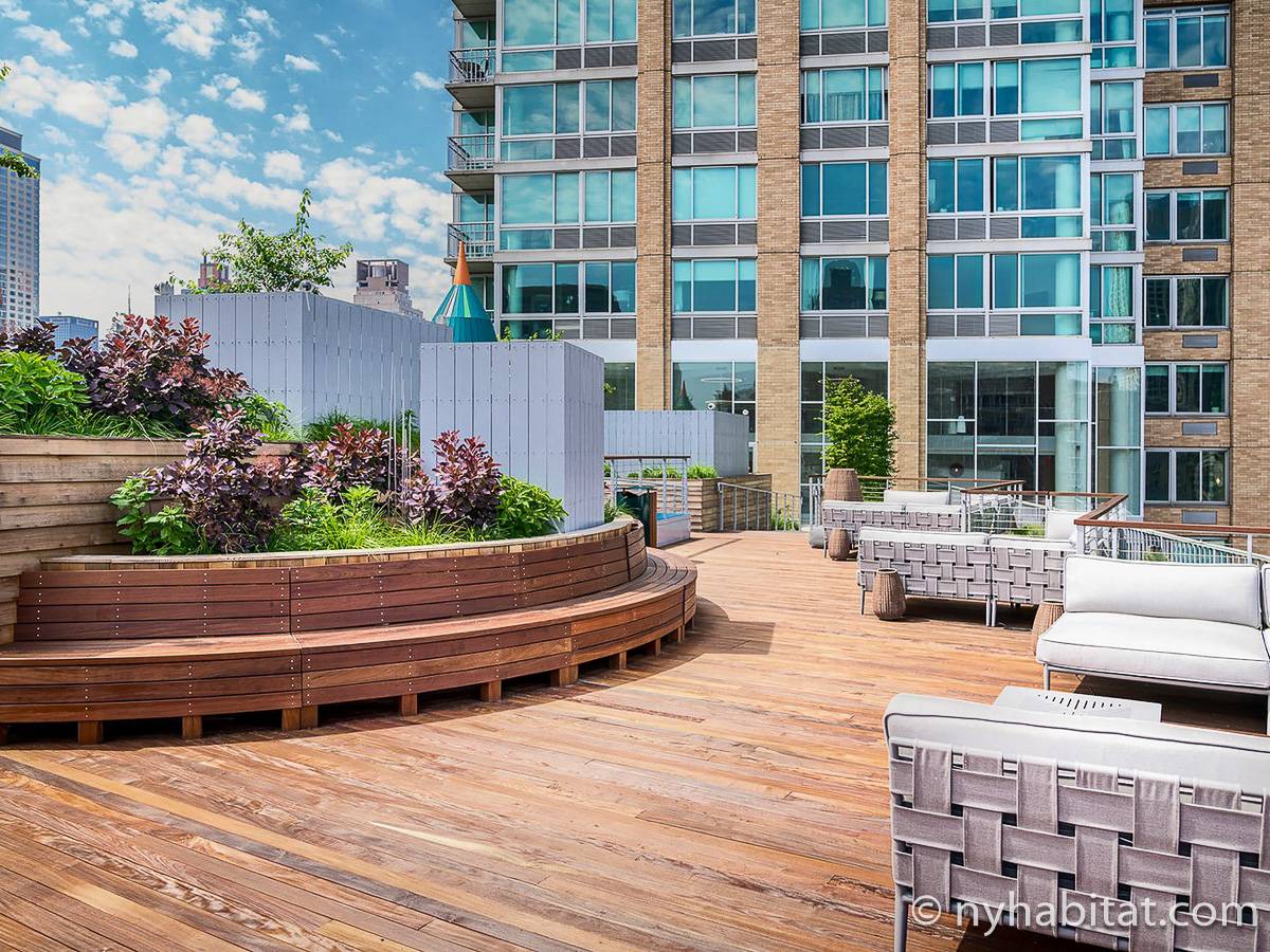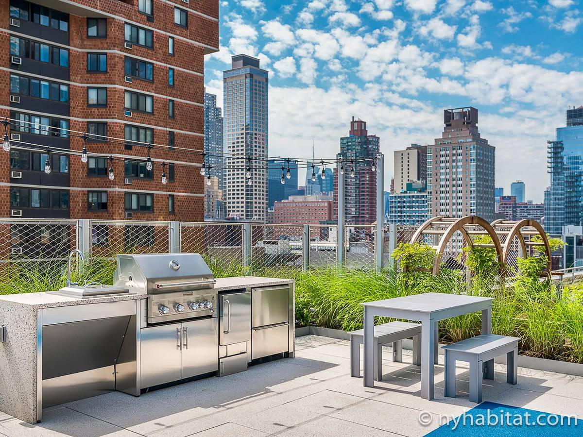 Situato al 23° piano (equivalente al 22° piano in Europa) di un grattacielo di trentacinque piani con portiere, vicino all'incrocio tra West End Avenue e West 64th Street, questo appartamento in affitto ha una superficie di 85 m². L'edificio dispone di un ascensore e una palestra, mentre all’interno dell'appartamento sono presenti aria condizionata, lavatrice, asciugatrice e – per sfruttare l'altezza – un balcone.