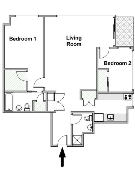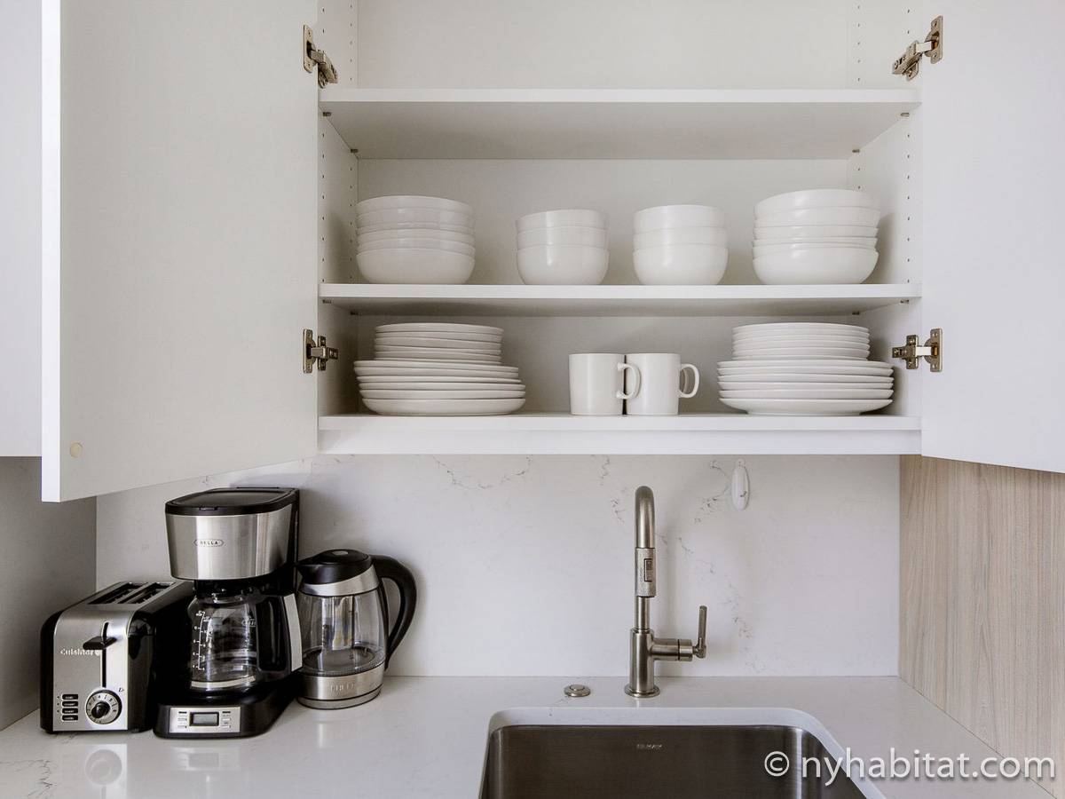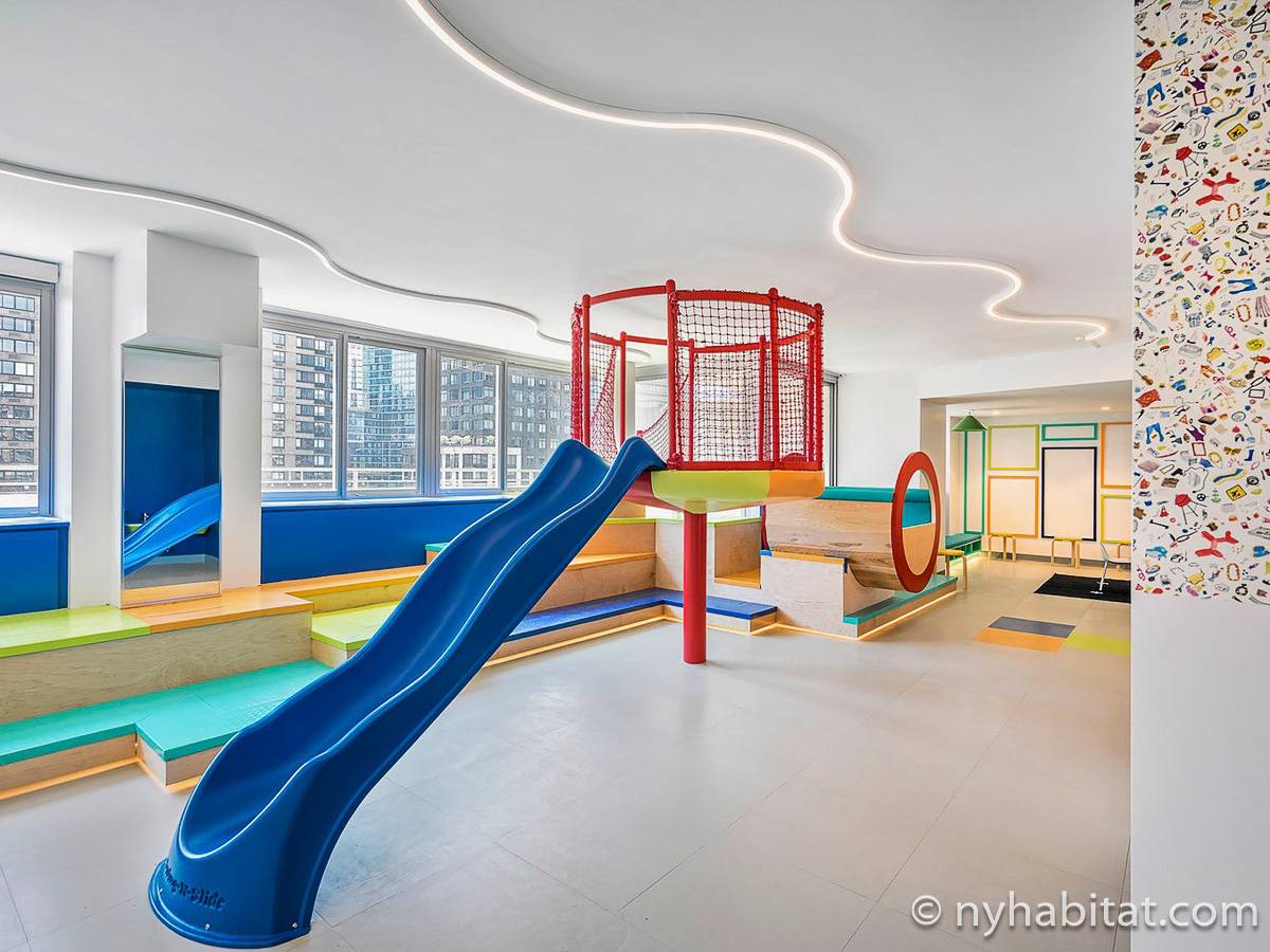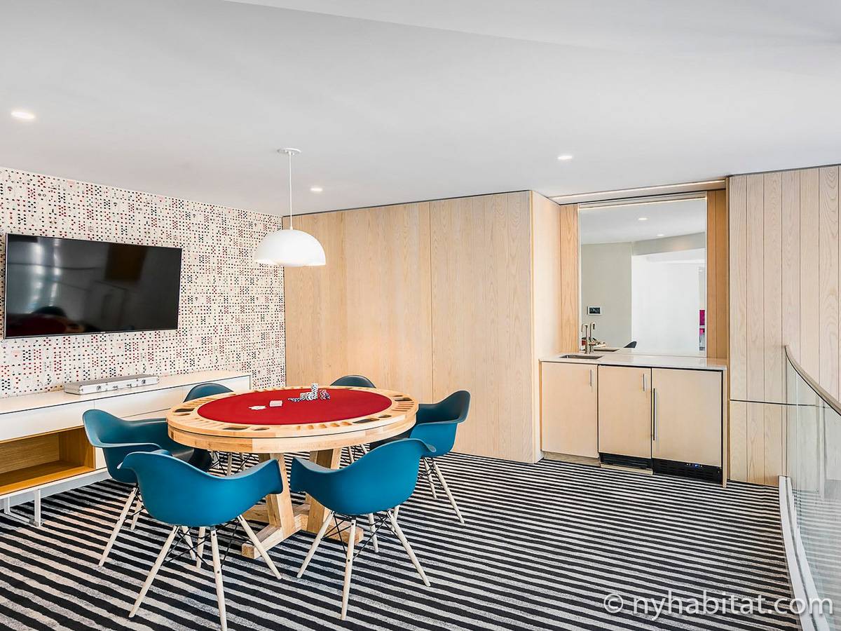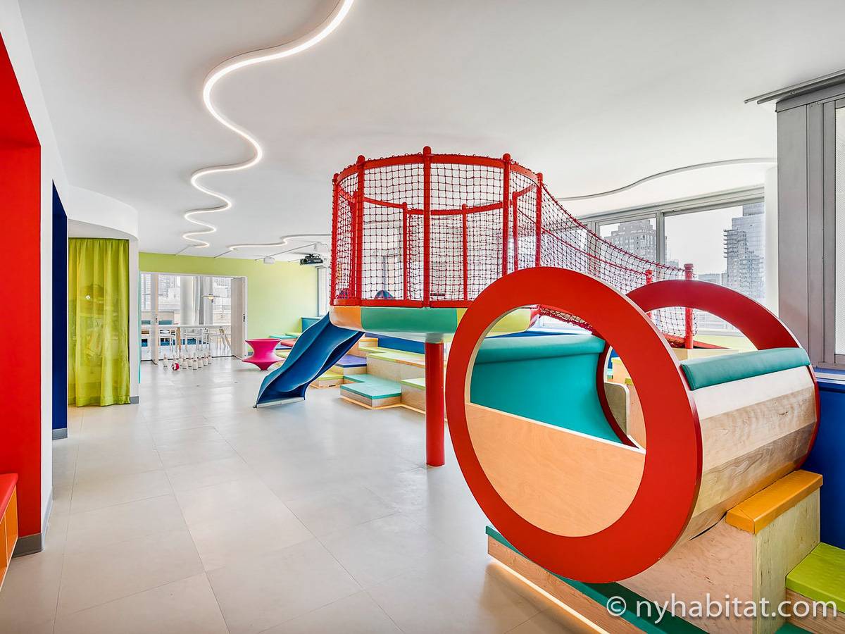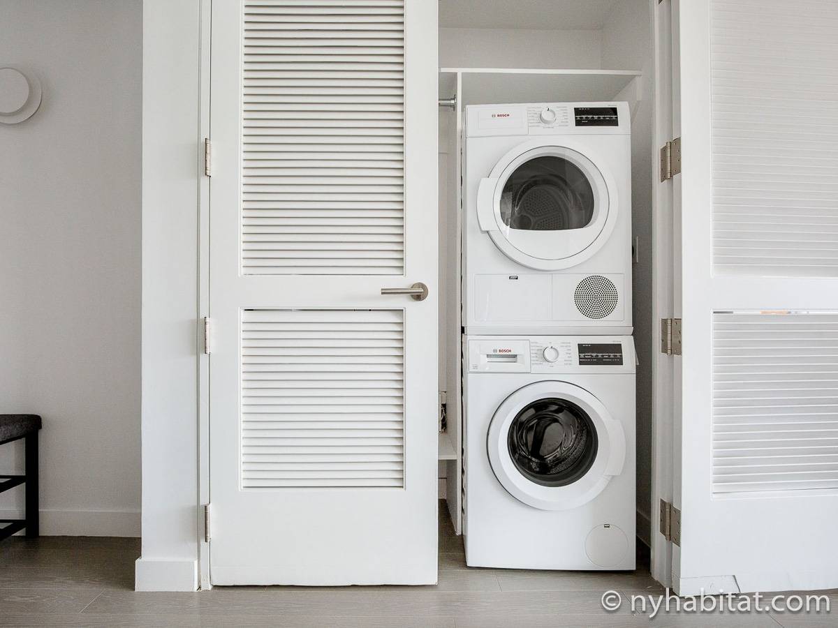 Situato al 23° piano (equivalente al 22° piano in Europa) di un grattacielo di trentacinque piani con portiere, vicino all'incrocio tra West End Avenue e West 64th Street, questo appartamento in affitto ha una superficie di 85 m². L'edificio dispone di un ascensore e una palestra, mentre all’interno dell'appartamento sono presenti aria condizionata, lavatrice, asciugatrice e – per sfruttare l'altezza – un balcone.