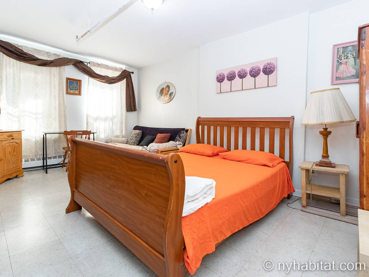 Queste due camere in affitto fanno parte di un triplo appartamento con sette camere da letto tra West 148th Street e Amsterdam Avenue. Sono situate al 3° e al 4° piano (equivalenti al 2° e al 3° piano europeo)di una casa a schiera prebellica di 4 piani senza ascensore. Notate bene: le camere da letto 2 e 3 sono le stanze in affitto. Solo la camera da letto è privata ; tutte le altre stanze saranno condivise con i coinquilini.