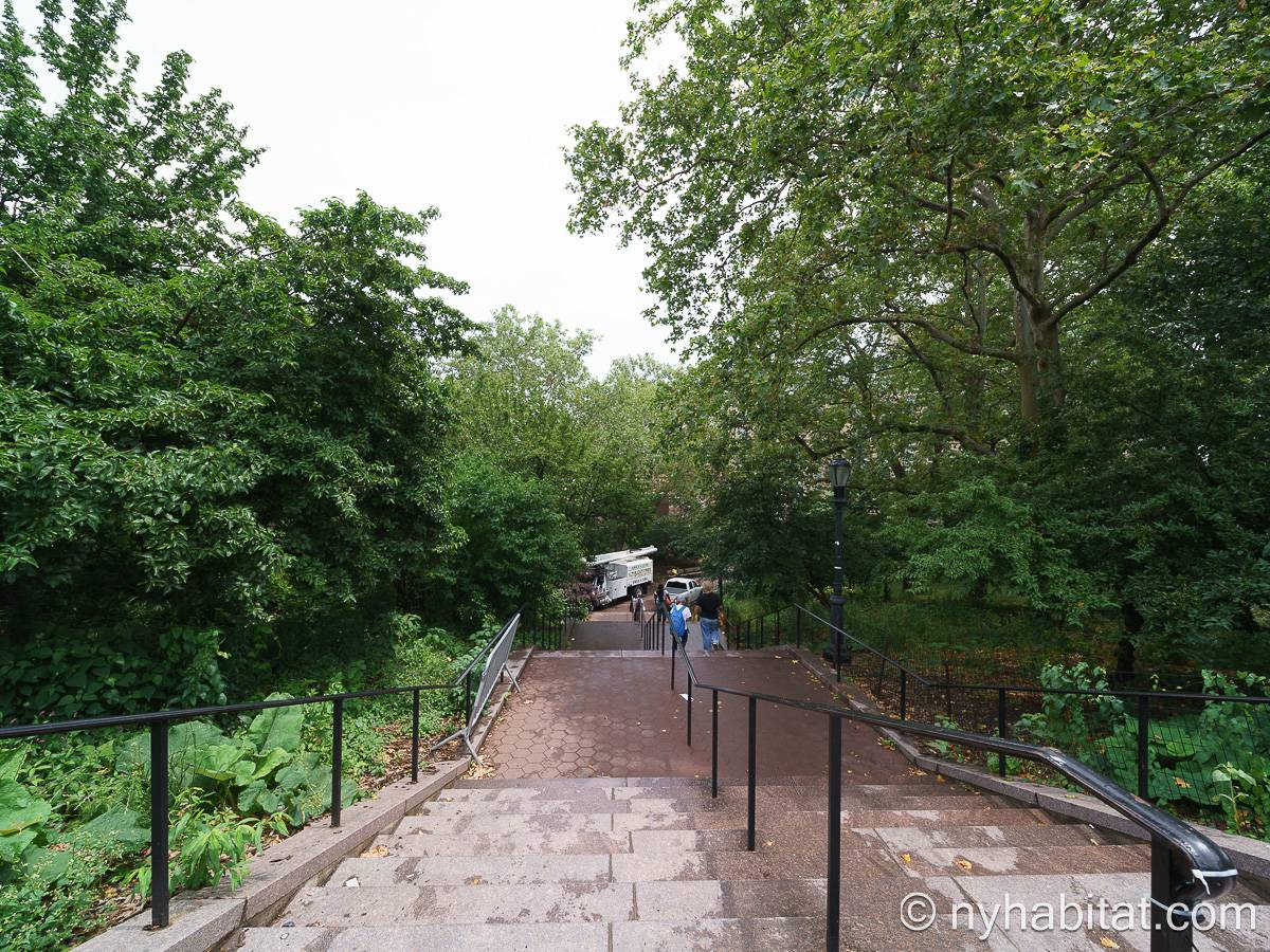 Vi è una stazione della metropolitana a soli quattro isolati di distanza servita dalle linee A, B, C e D e da treni sia espressi sia locali, che rendono più facili gli spostamenti a Lower Manhattan. Inoltre vi è una stazione della metropolitana della linea 3 a circa quattro isolati di distanza dall’appartamento in direzione opposta.