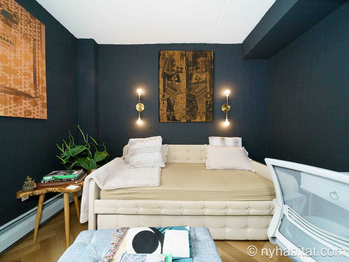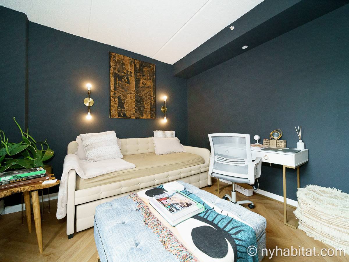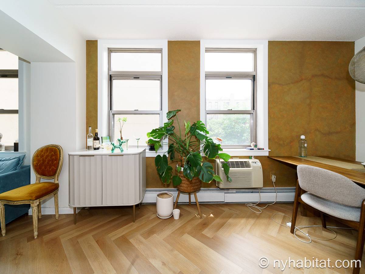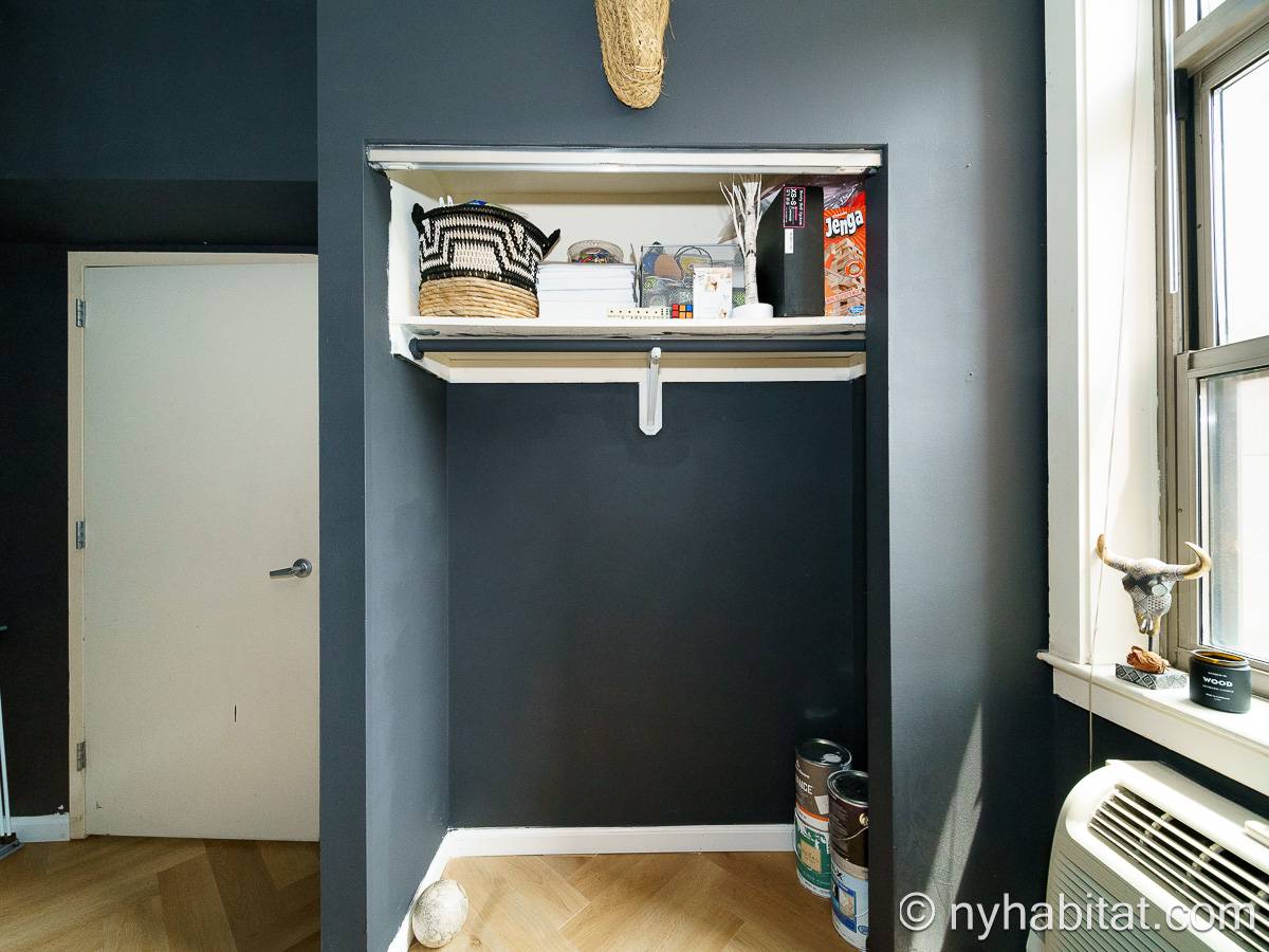 Questa stanza in affitto è completamente ammobiliata e si trova in un appartamento da condividere con 2 camere da letto situato a Hamilton Heights, un quartiere storico di Uptown Manhattan, New York. L’appartamento è situato al terzo piano di un edificio di undici piani con ascensore e servizio di portineria 24h su 24. Vi è anche la comodità di una palestra nell’edificio disponibile a pagamento.