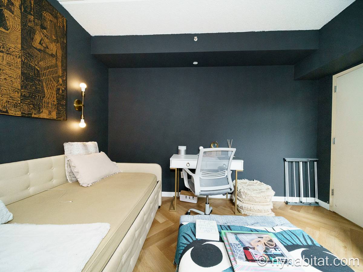 Questa stanza in affitto completamente ammobiliata dispone di un bagno privato completo situato appena fuori dalla porta della camera, la camera da letto del coinquilino si trova dalla parte opposta dell’appartamento. La camera da letto è arredata con un letto singolo, una scrivania, una sedia e uno scaffale. Vi è un armadio dove potrete riporre i vostri effetti personali. Vi è una finestra esposta ad est che si affaccia sul cortile dell’edificio.