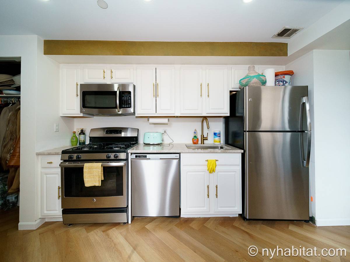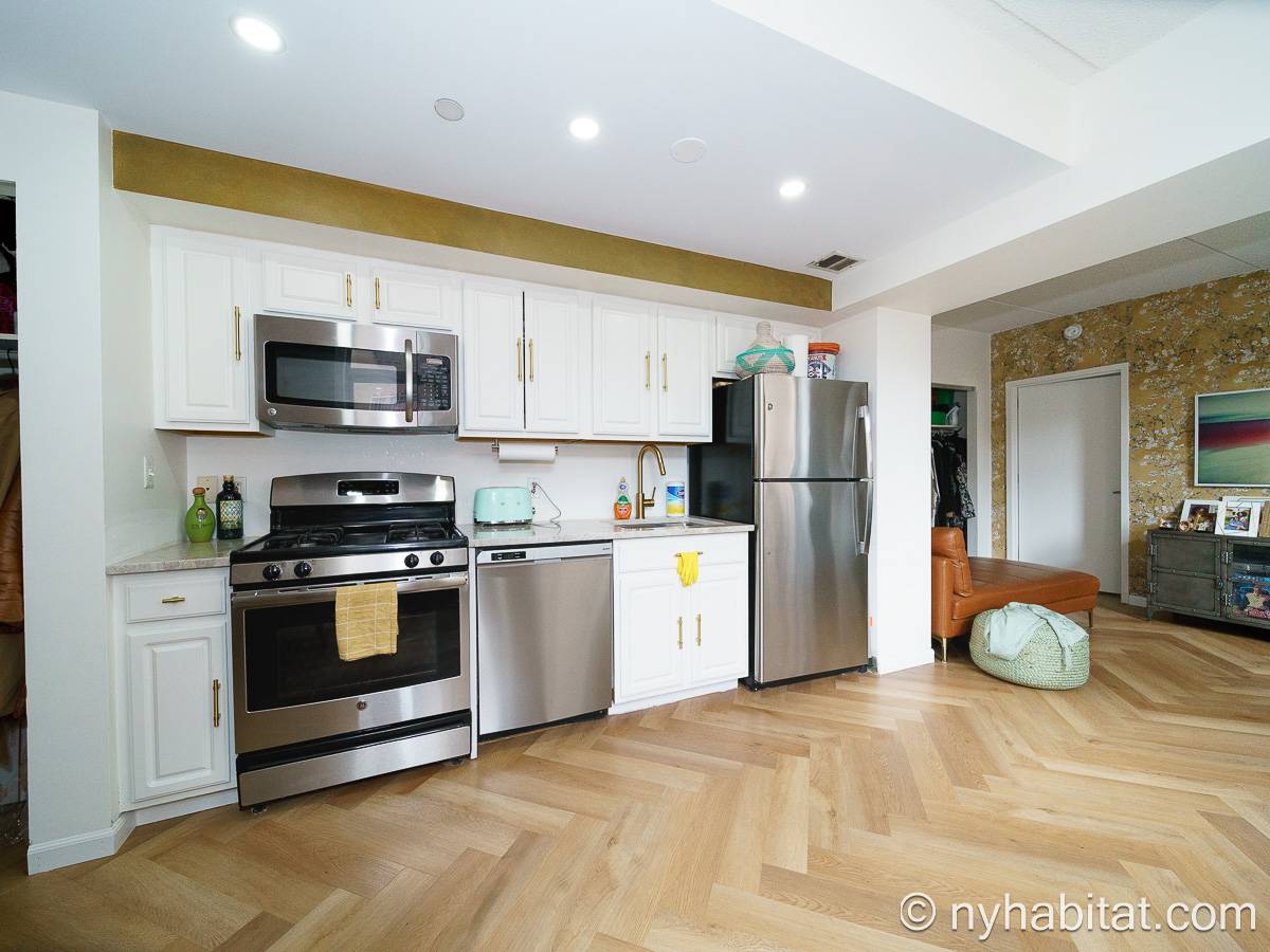 Il soggiorno e la cucina sono condivisi con il coinquilino. La cucina è aperta sul soggiorno ed è completamente accessoriata con lavastoviglie, cucina a gas, frigorifero, tostapane e macchinetta per il caffè. In soggiorno vi è un tavolo da pranzo ma anche un divano e un televisore a parete a schermo piatto via cavo. Vi è anche la comodità di una lavatrice e di un’asciugatrice nell’appartamento.
