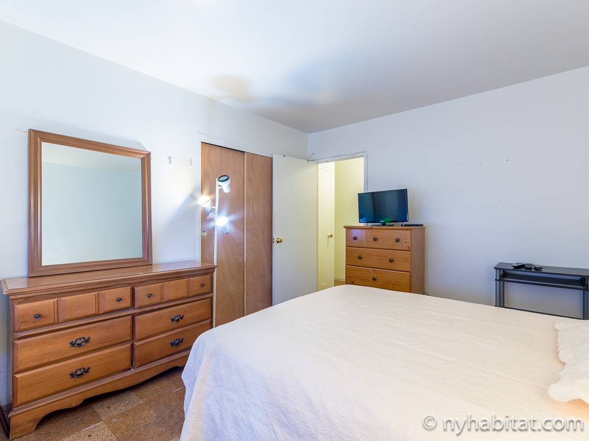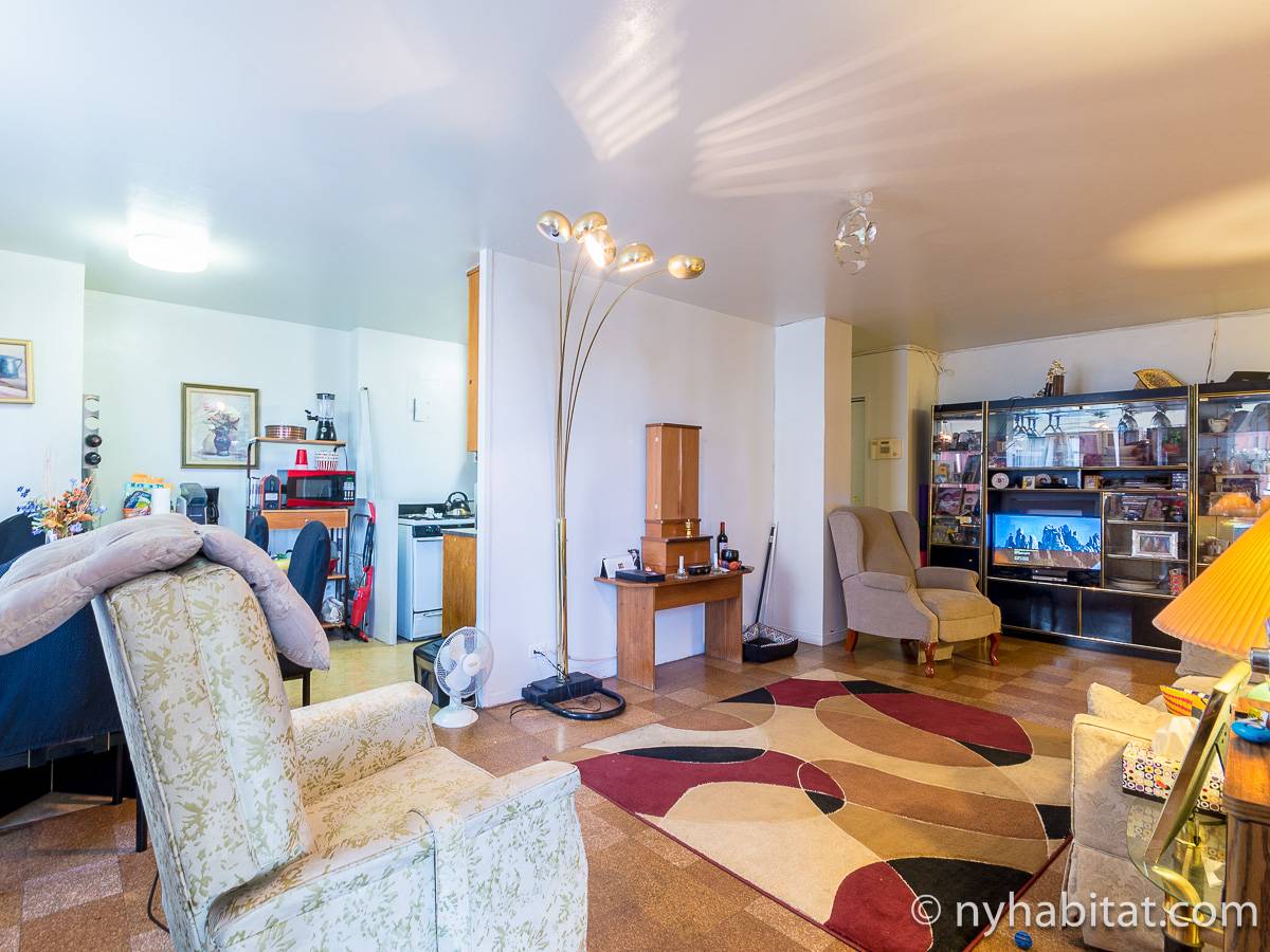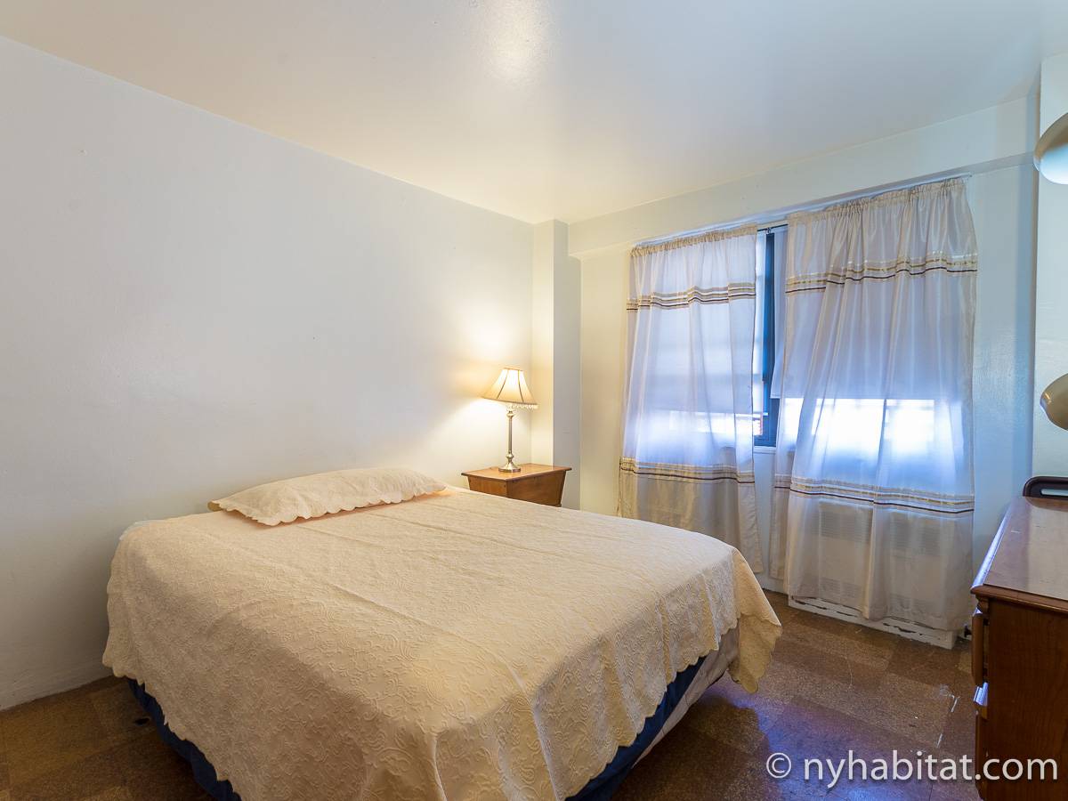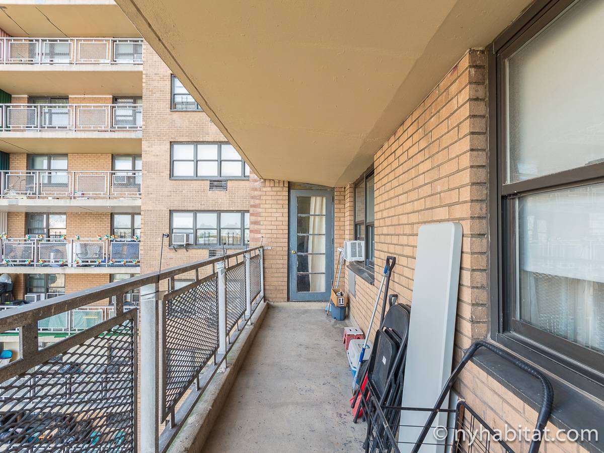 La stanza ha una finestra affacciata sul balcone che offre una vista su Prospect Park e i tetti di New York fino a Manhattan. La stanza comprende un letto matrimoniale, un televisore con collegamento via cavo e un telefono. Il bagno, il soggiorno, la cucina e il balcone sono condivisi con l’altro inquilino dell’appartamento, che occupa la seconda camera da letto. Il soggiorno ha dei comodi arredi e un moderno tappeto, con la cucina dietro l’angolo.