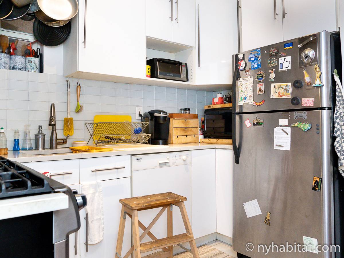 Sono disponibili due stanze in affitto in questo appartamento con tre camere da letto. Situato sulla 2nd Street, tra Avenue A e Avenue B, nell’East Village, a New York, l’appartamento si trova al terzo piano (corrispondente al secondo piano europeo) di un grattacielo. Avrete a disposizione tantissimi comfort, tra i quali un ascensore, un sistema di sorveglianza e una lavatrice e un’asciugatrice interne all’appartamento.