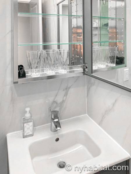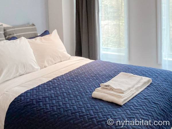Godetevi il vostro soggiorno in questo appartamento ammobiliato con due camere da letto e un bagno a Midtown West a Manhattan, New York. Si trova all’angolo di 2nd Avenue e East 52nd Street al terzo piano (corrispondente al secondo piano europeo) di un edificio con servizi di lavanderia, un sistema di sicurezza e un ascensore.