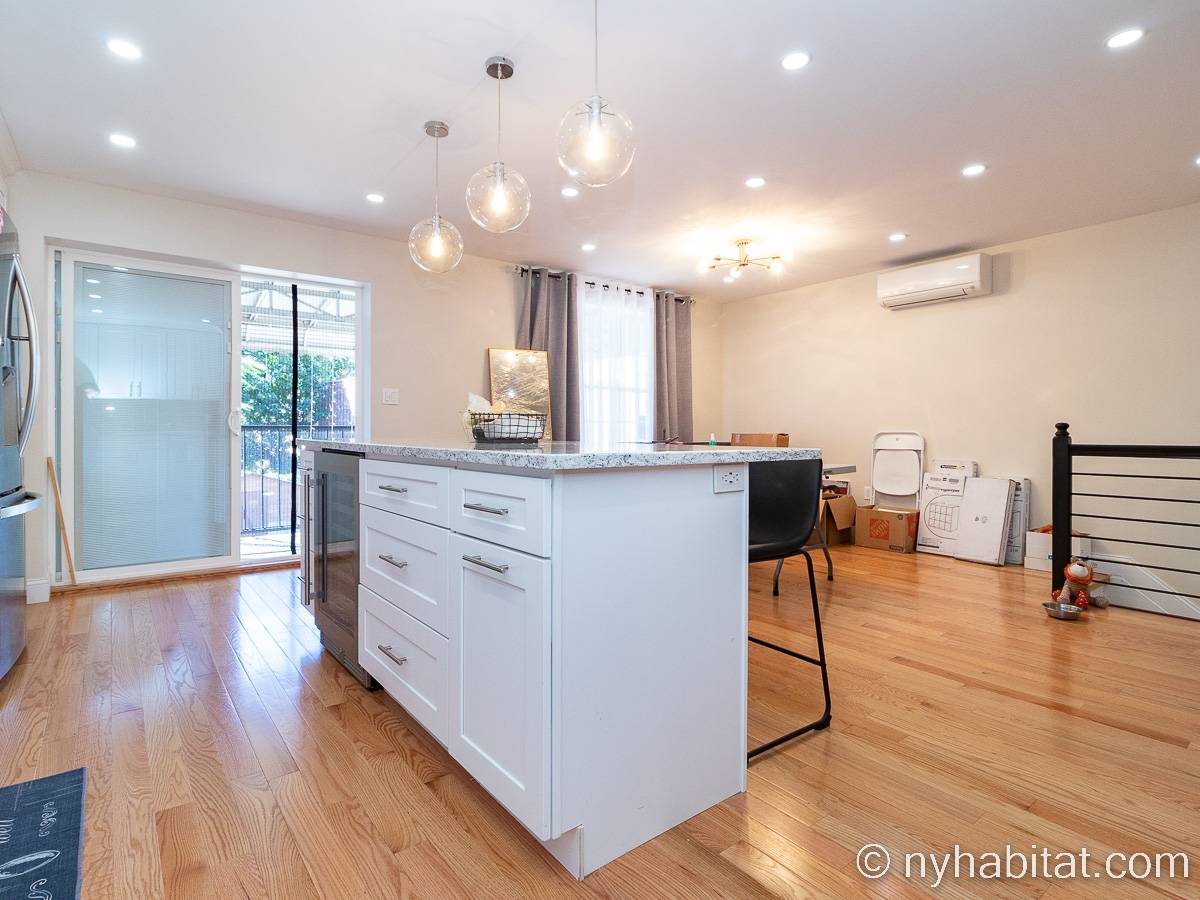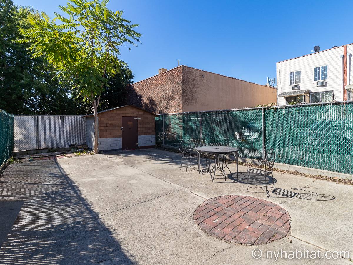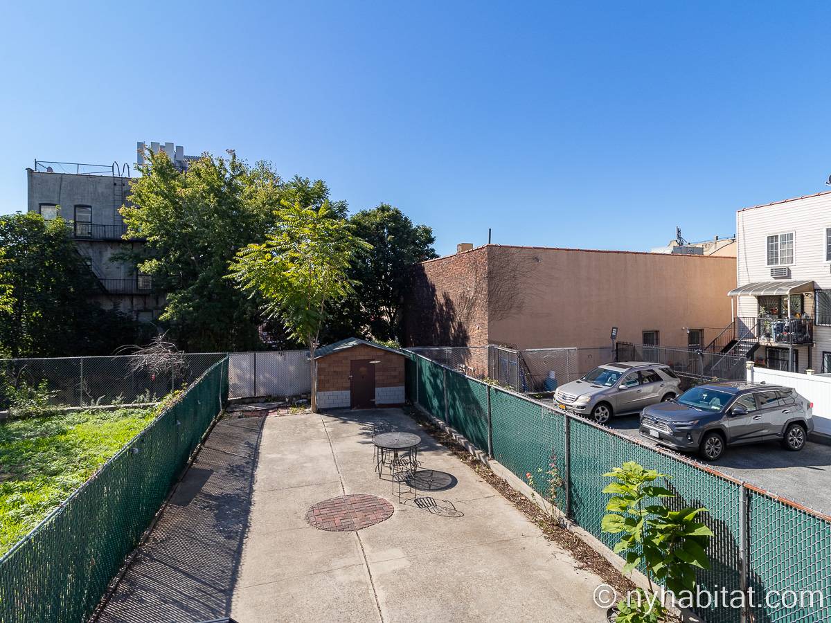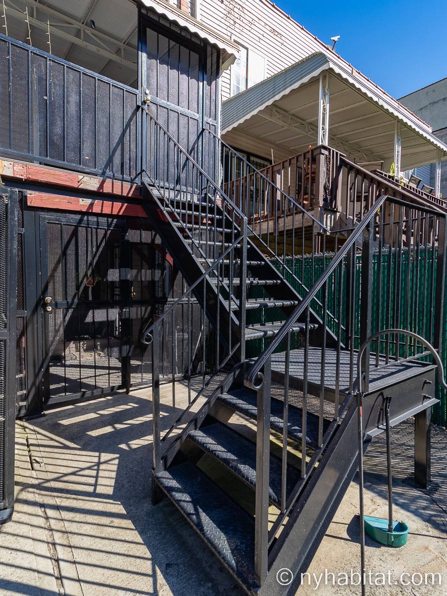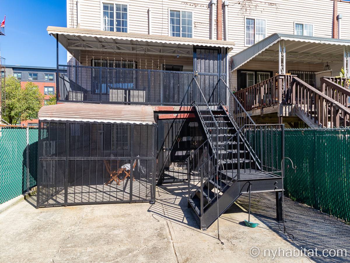 La stanza in affitto disponibile si trova in questo appartamento con tre camere da letto, due bagni e un bagno di servizio, situato tra Bergen Street e Saratoga Avenue, nel quartiere di Bedford-Stuyvesant, a Brooklyn. Questo duplex ammobiliato si estende tra il secondo e il terzo piano (equivalenti al primo e al secondo piano europei) di una tipica townhouse newyorkese priva di ascensore. L’appartamento da condividere ha una superficie di 172 m2 e ha accesso ad una terrazza coperta e un cortile esterno.
