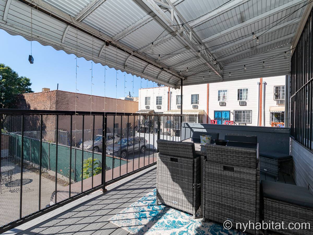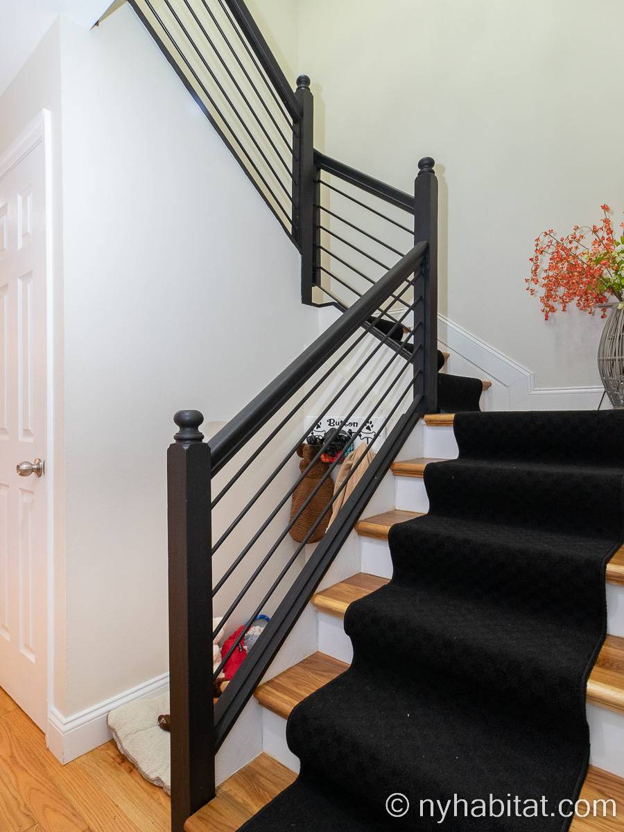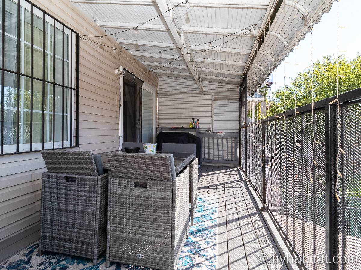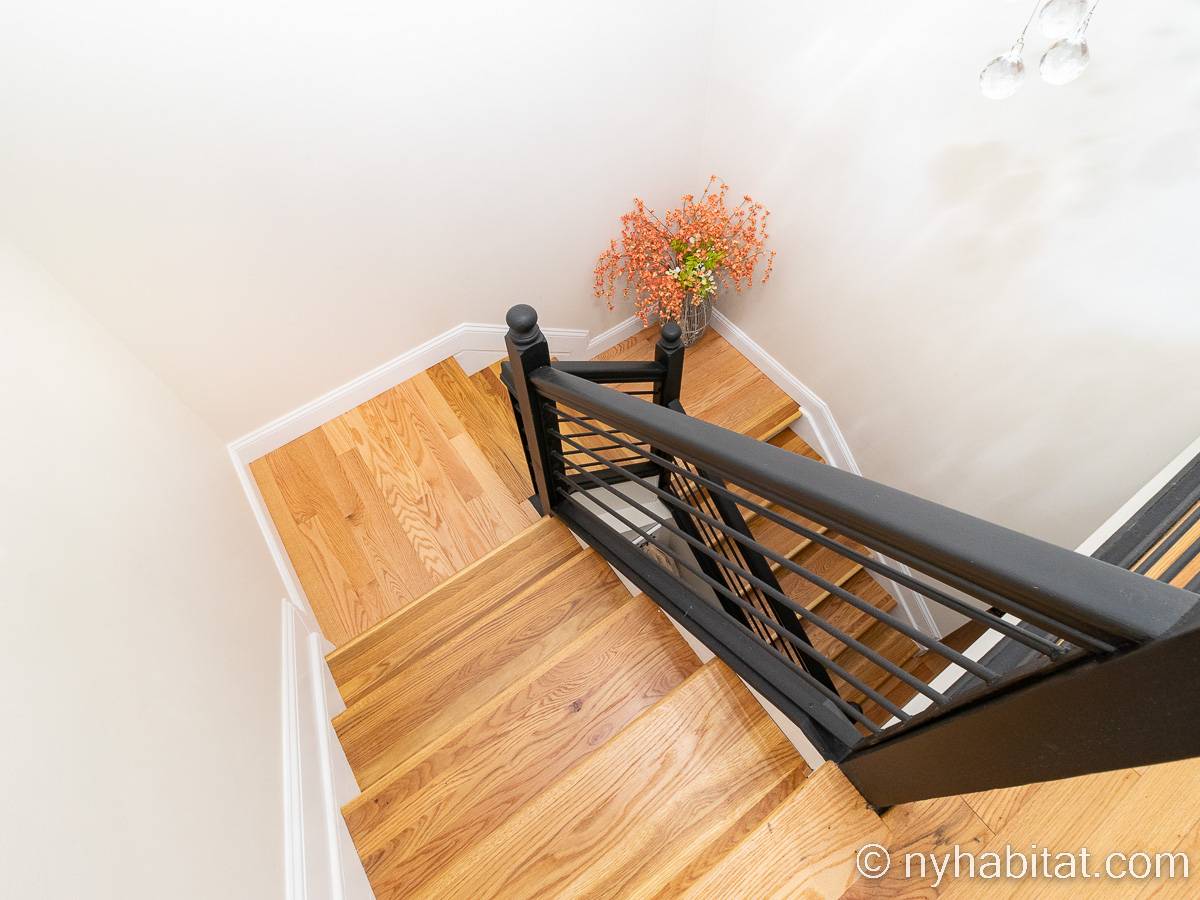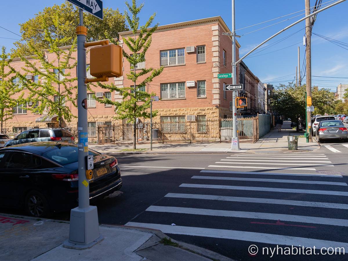La stanza in affitto disponibile si trova in questo appartamento con tre camere da letto, due bagni e un bagno di servizio, situato tra Bergen Street e Saratoga Avenue, nel quartiere di Bedford-Stuyvesant, a Brooklyn. Questo duplex ammobiliato si estende tra il secondo e il terzo piano (equivalenti al primo e al secondo piano europei) di una tipica townhouse newyorkese priva di ascensore. L’appartamento da condividere ha una superficie di 172 m2 e ha accesso ad una terrazza coperta e un cortile esterno.