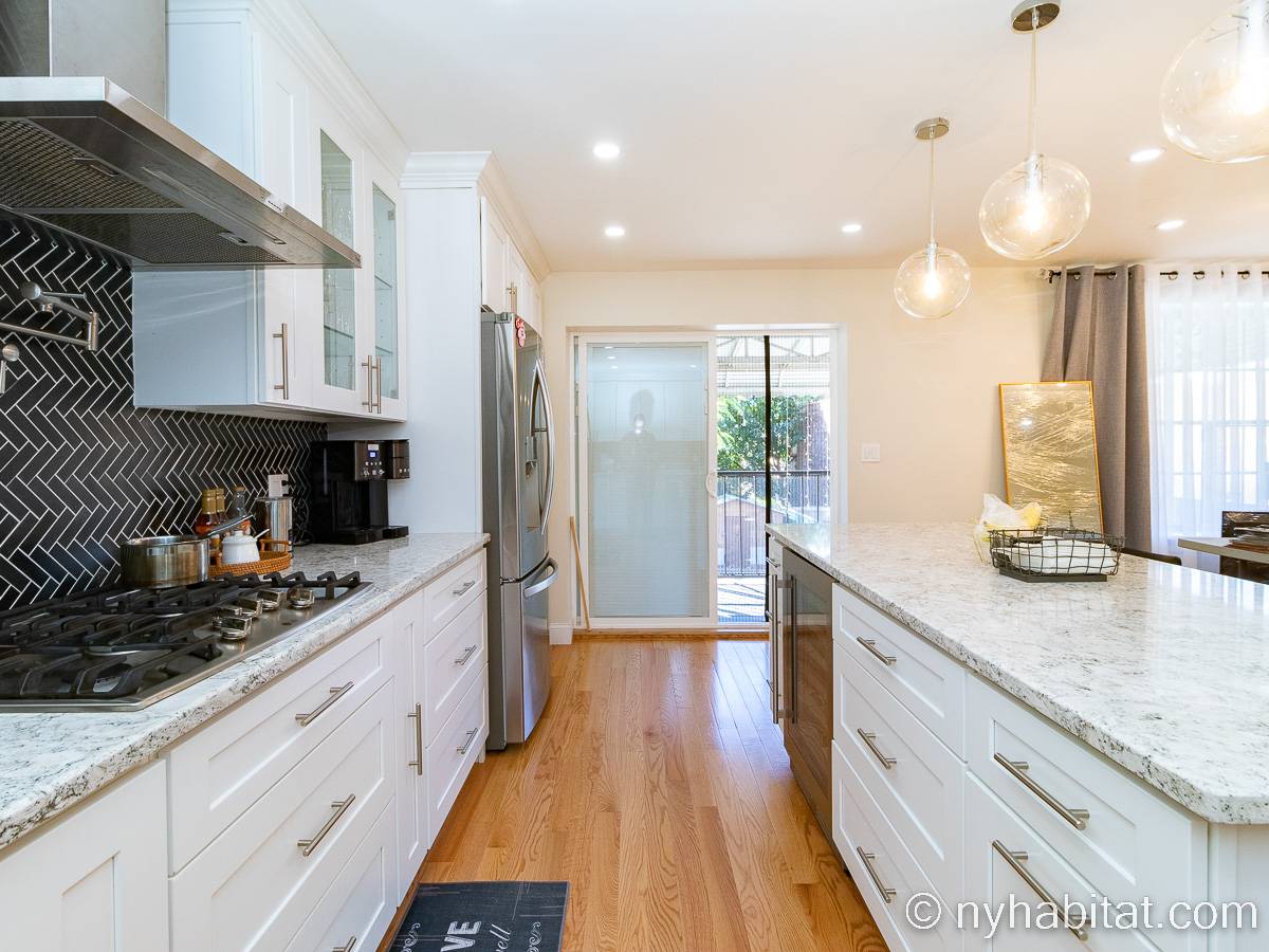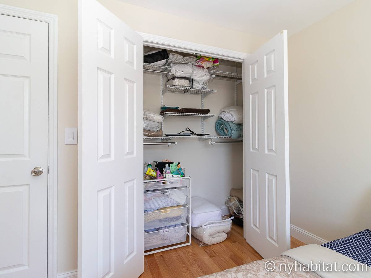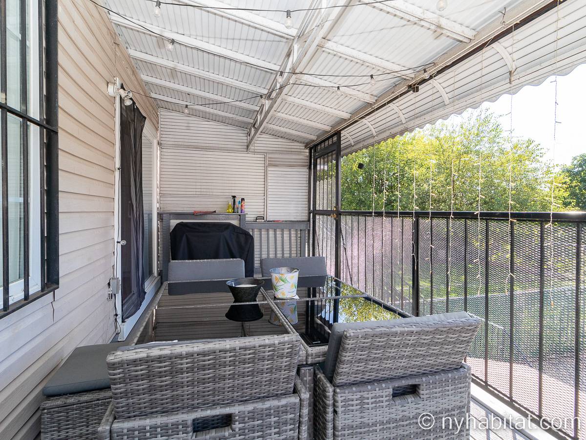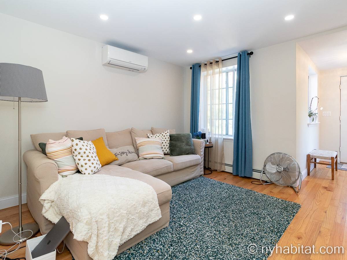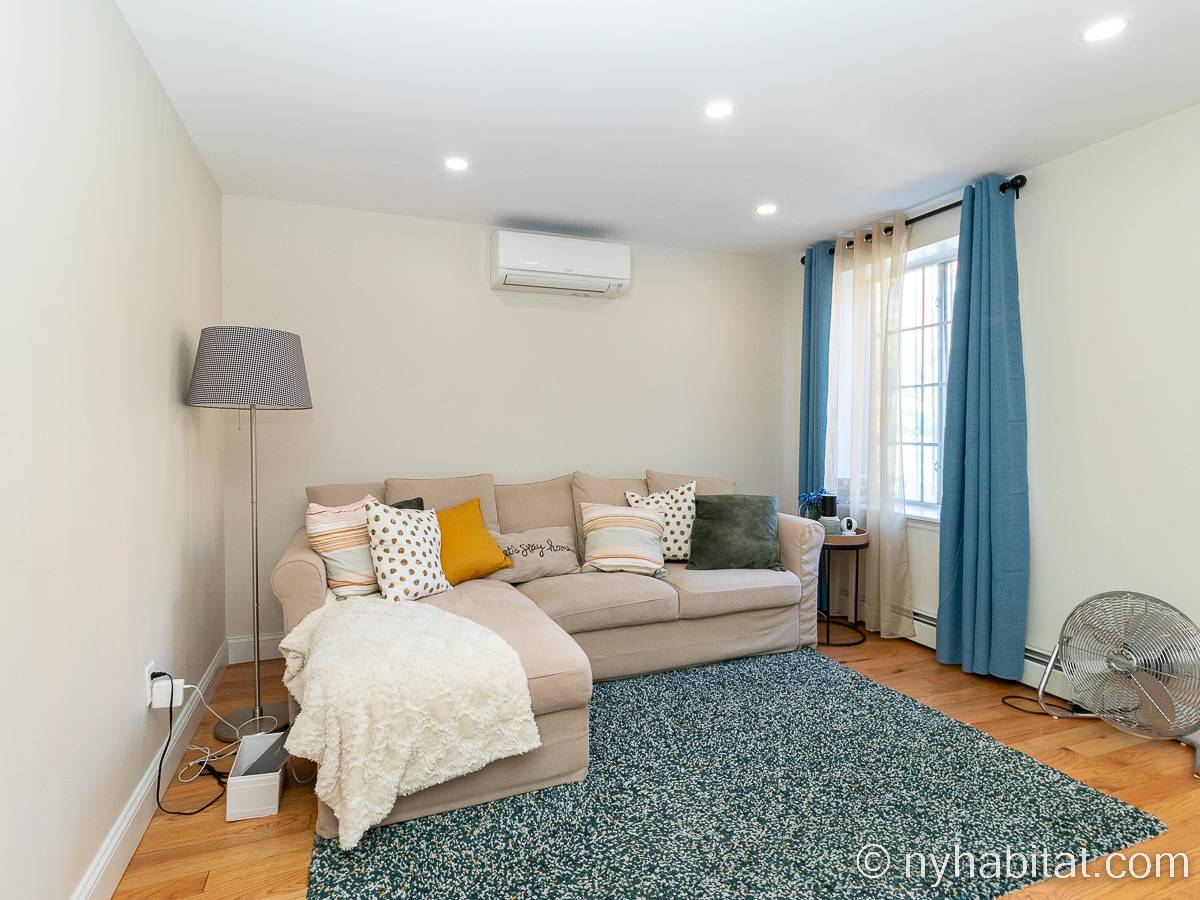 La stanza in affitto disponibile si trova in questo appartamento con tre camere da letto, due bagni e un bagno di servizio, situato tra Bergen Street e Saratoga Avenue, nel quartiere di Bedford-Stuyvesant, a Brooklyn. Questo duplex ammobiliato si estende tra il secondo e il terzo piano (equivalenti al primo e al secondo piano europei) di una tipica townhouse newyorkese priva di ascensore. L’appartamento da condividere ha una superficie di 172 m2 e ha accesso ad una terrazza coperta e un cortile esterno.