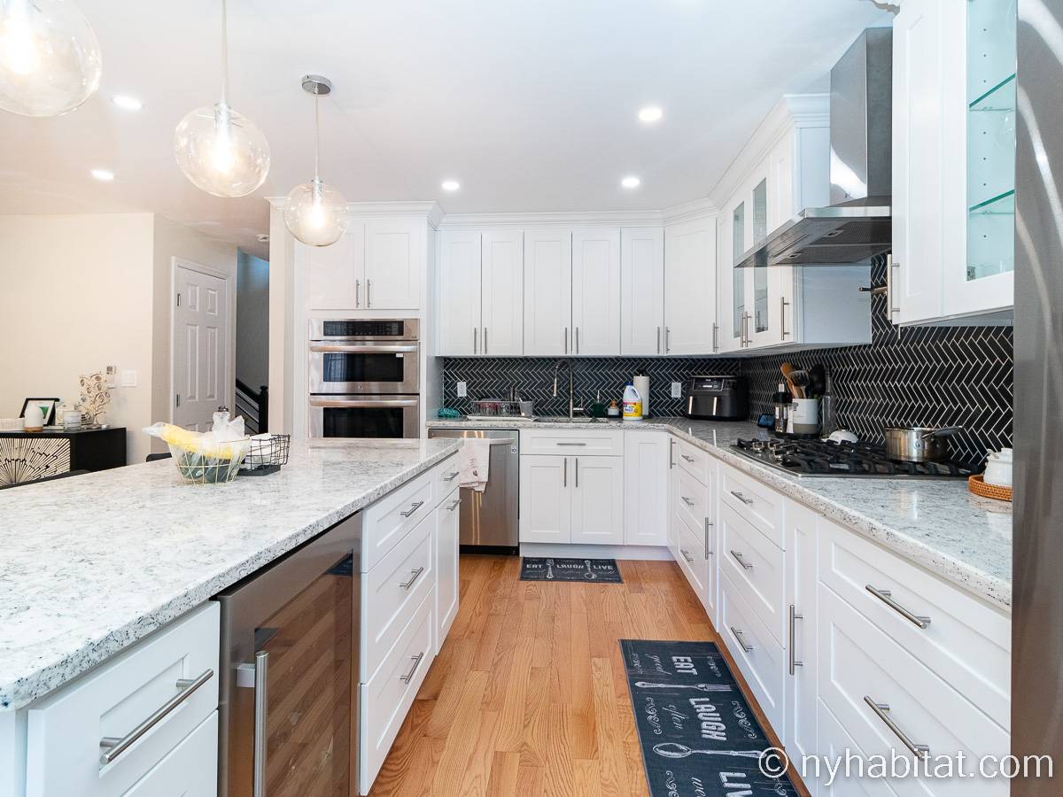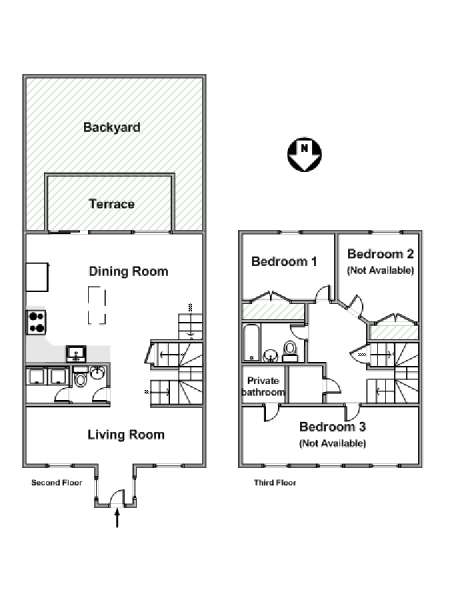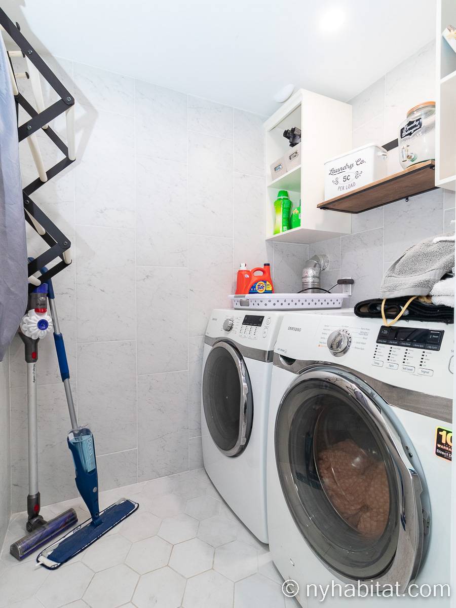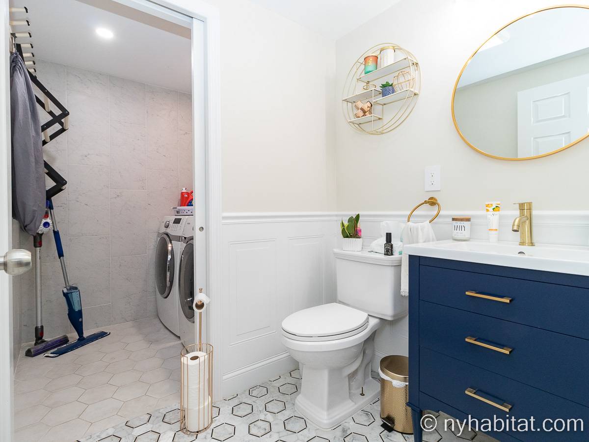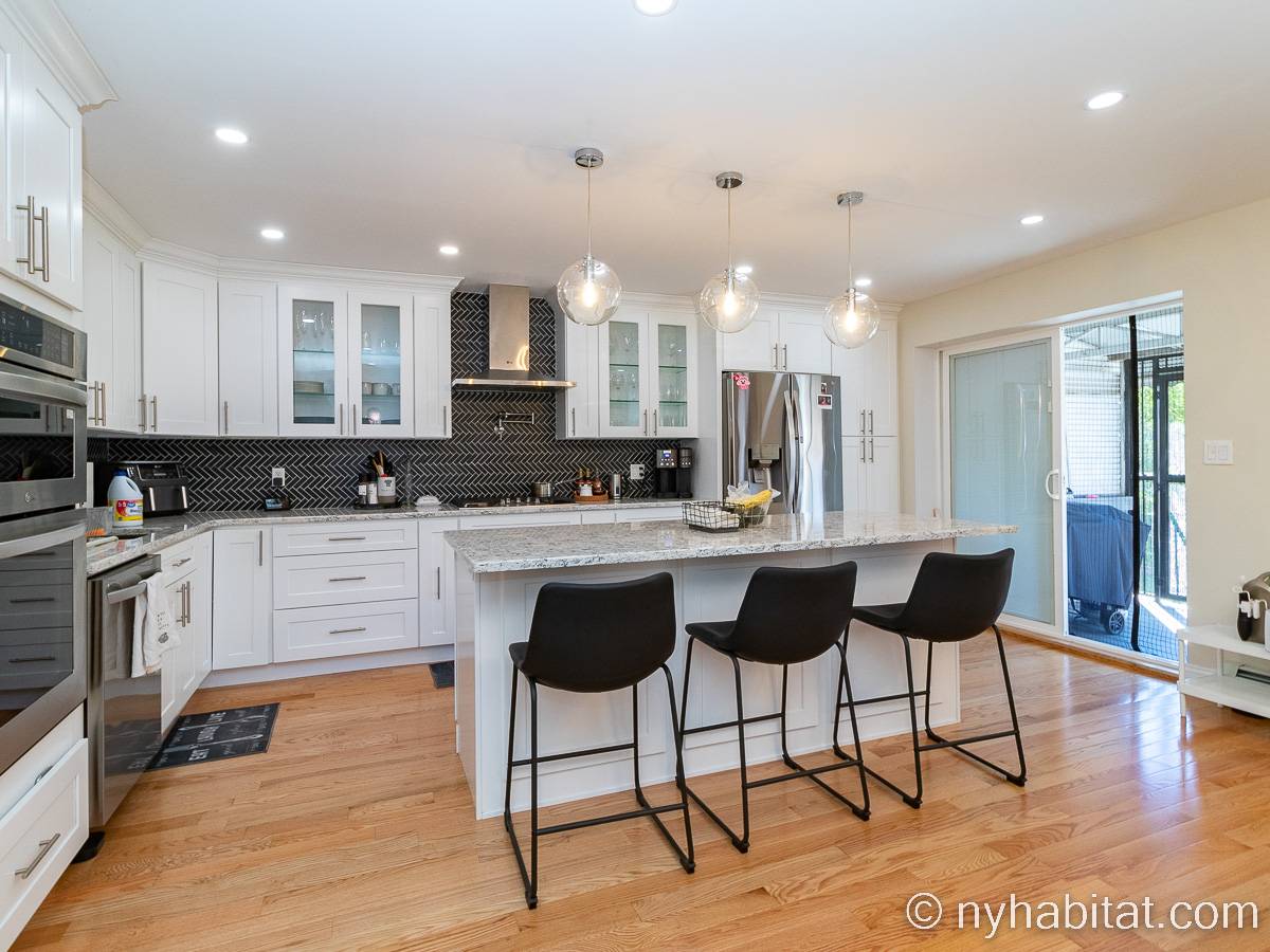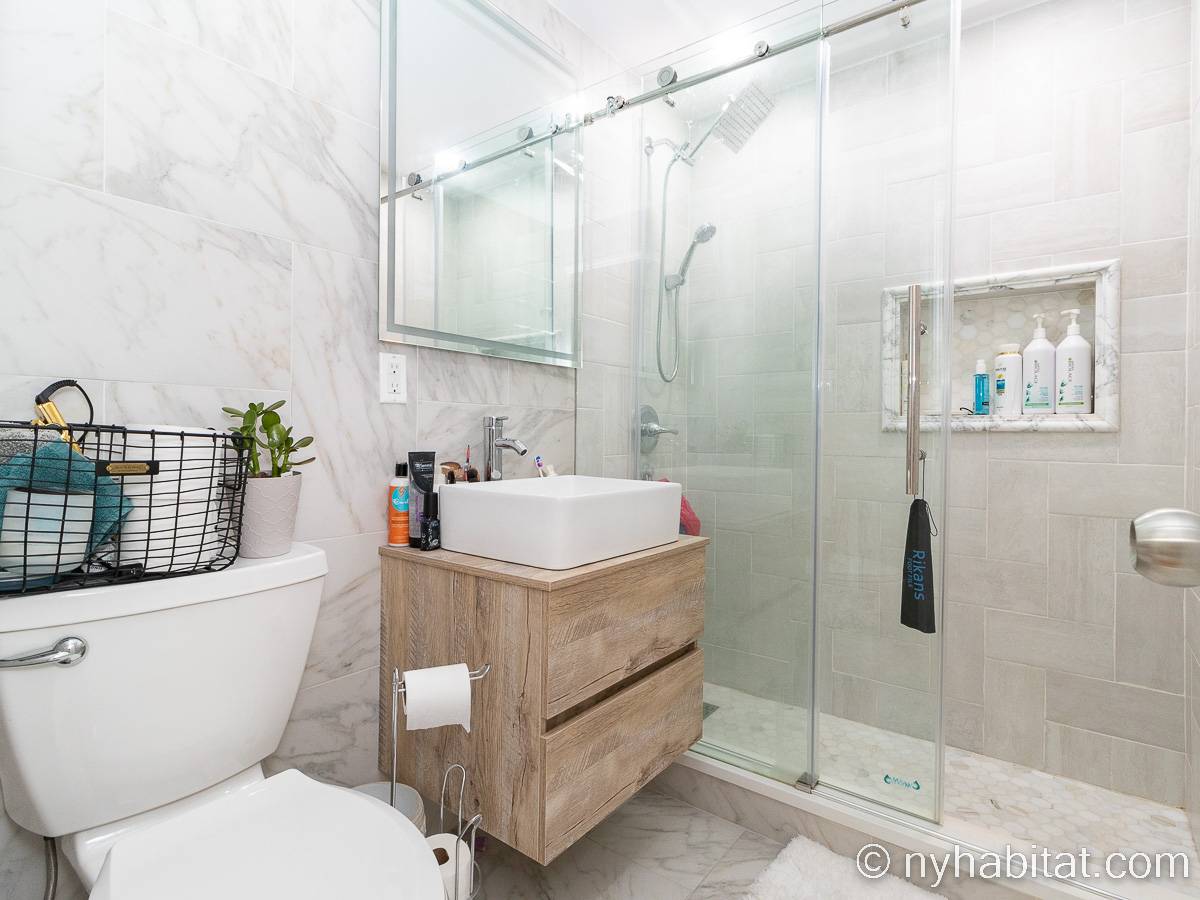 La stanza in affitto disponibile si trova in questo appartamento con tre camere da letto, due bagni e un bagno di servizio, situato tra Bergen Street e Saratoga Avenue, nel quartiere di Bedford-Stuyvesant, a Brooklyn. Questo duplex ammobiliato si estende tra il secondo e il terzo piano (equivalenti al primo e al secondo piano europei) di una tipica townhouse newyorkese priva di ascensore. L’appartamento da condividere ha una superficie di 172 m2 e ha accesso ad una terrazza coperta e un cortile esterno.
