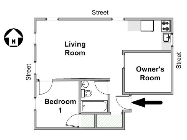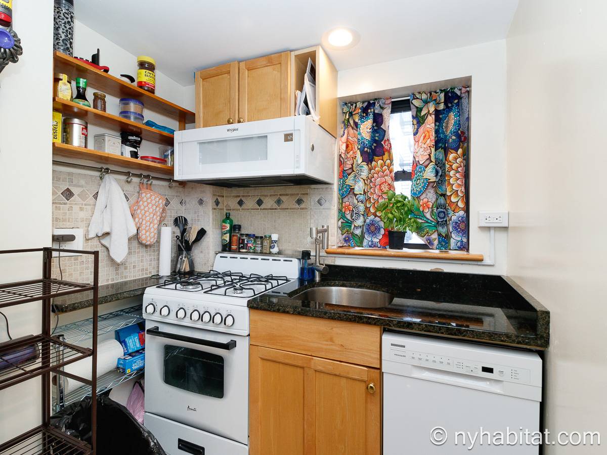 Questo appartamento da circa 57 m2 con stanze in affitto si trova all’angolo tra 3rd Avenue e 25th Street, all’ultimo piano di un edificio a tre piani dotato di sistema di sicurezza e lavanderia, ma privo di ascensore. La zona giorno condivisa comprende quattro finestre con vista sull’esterno, divano, tavolo da pranzo, camino decorativo e televisione. La cucina a vista è dotata di frigorifero, microonde, forno, lavastoviglie e macchina del caffè. Nella camera in affitto troverete aria condizionata, un armadio a muro e spazio per riporre i vostri effetti personali. La seconda camera da letto non è disponibile. Il bagno in condivisione dispone di vasca a incasso con doccia e alcune mensole.