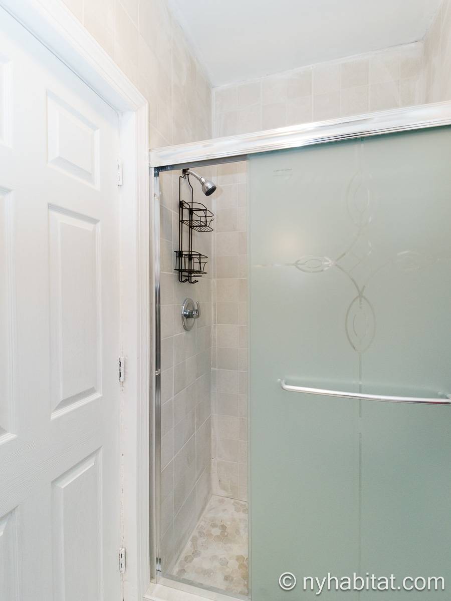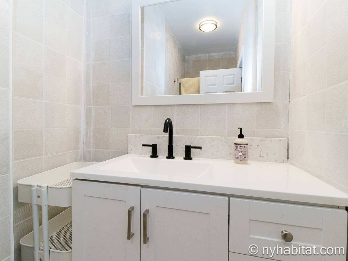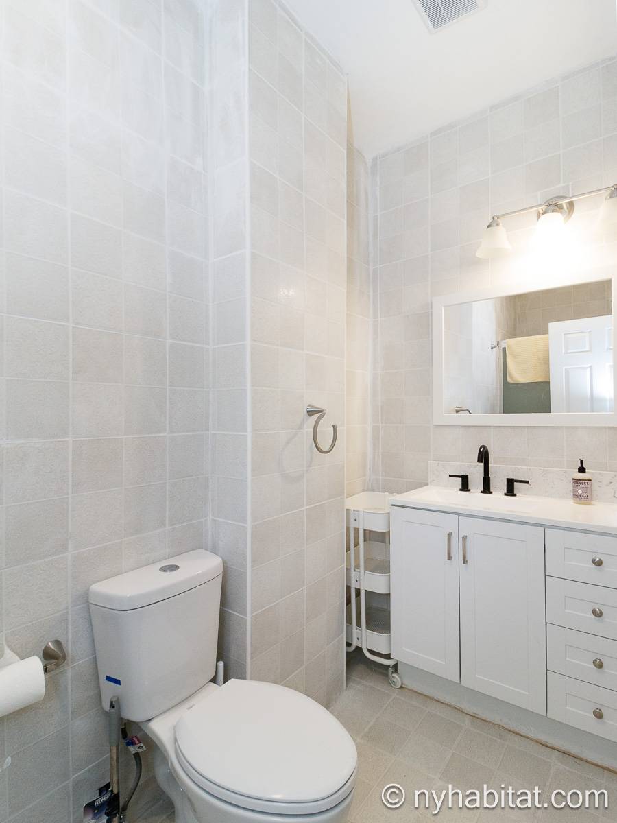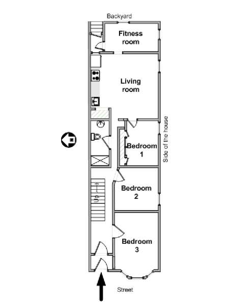 Questo appartamento di circa 102 m2 si trova vicino all’angolo tra Barbey Street e Atlantic Avenue e dispone di due zone giorno e una cucina. L’appartamento ammobiliato si trova al primo piano (equivalente al pianterreno europeo) di una villa a schiera. La prima zona giorno, caratterizzata da una parete in mattoni a vista, dispone di un divano e un tavolo da pranzo. La seconda zona giorno può essere utilizzata come ufficio, camera da letto extra o per fare attività fisica. La cucina a vista è dotata di frigorifero in acciaio inossidabile, freezer, forno e microonde. In tutte e tre le camere da letto troverete un letto singolo, mentre nella terza camera da letto ce ne sono due (per un totale di quattro letti). La prima camera da letto offre spazio per riporre i vostri effetti personali, mentre la terza dispone di una finestra a golfo con vista sull’esterno. Nel bagno completamente bianco è presente una doccia e spazio sotto al lavandino per riporre i vostri effetti personali.