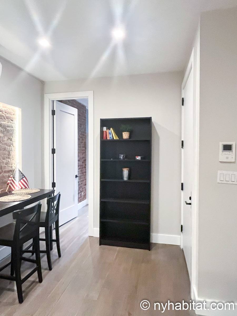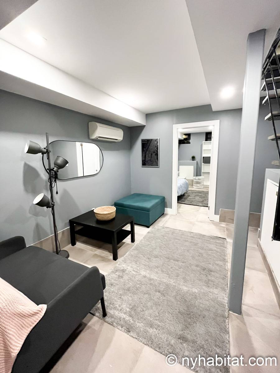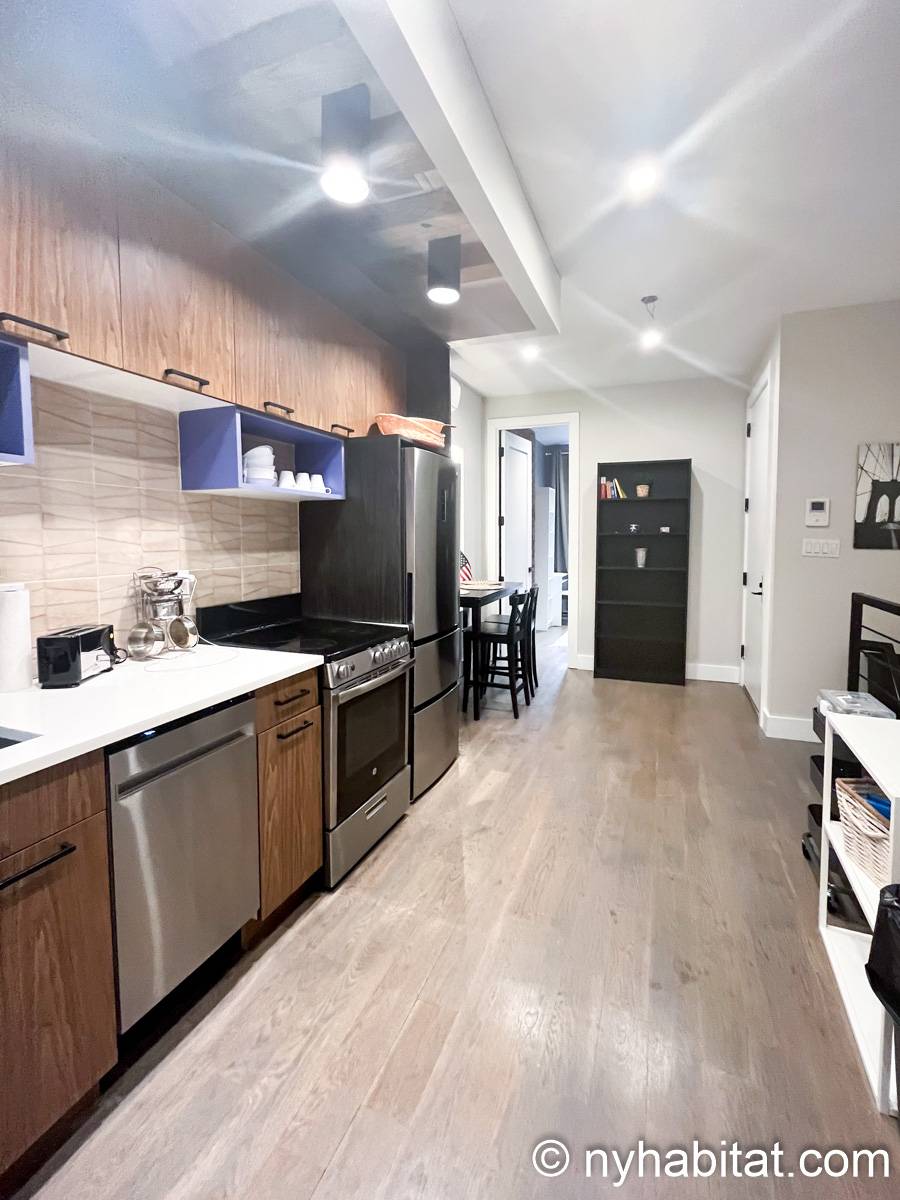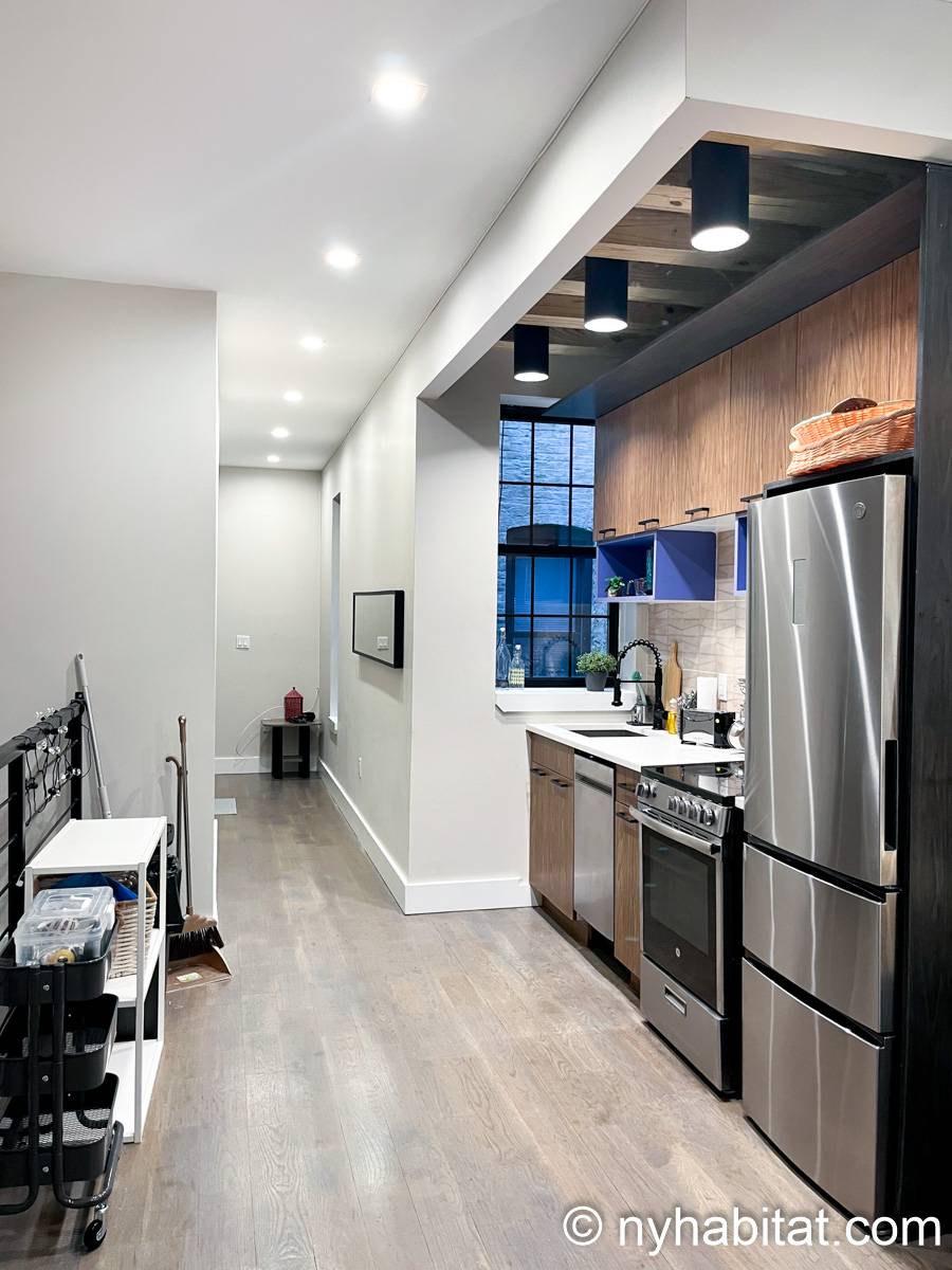 Nel soggiorno sono presenti posti a sedere e un tavolino da caffè. La cucina è dotata di forno, tostapane, lavastoviglie, frigorifero, congelatore, paraschizzi in piastrelle e zona per pranzare. Entrambe le camere da letto dispongono di un letto matrimoniale e una scrivania/spazio da lavoro, e una di esse è caratterizzata da una parete in mattoni a vista. I bagni presentano entrambi una doccia.