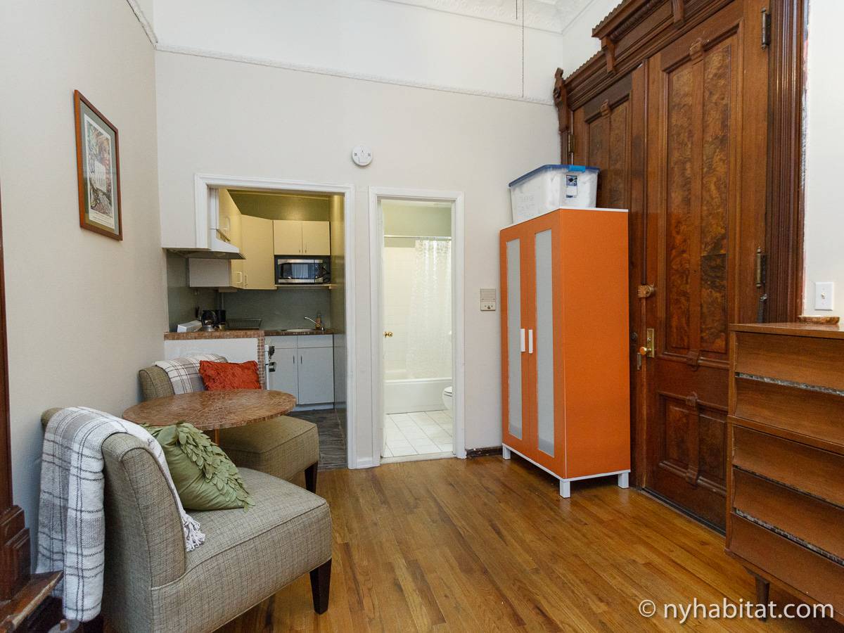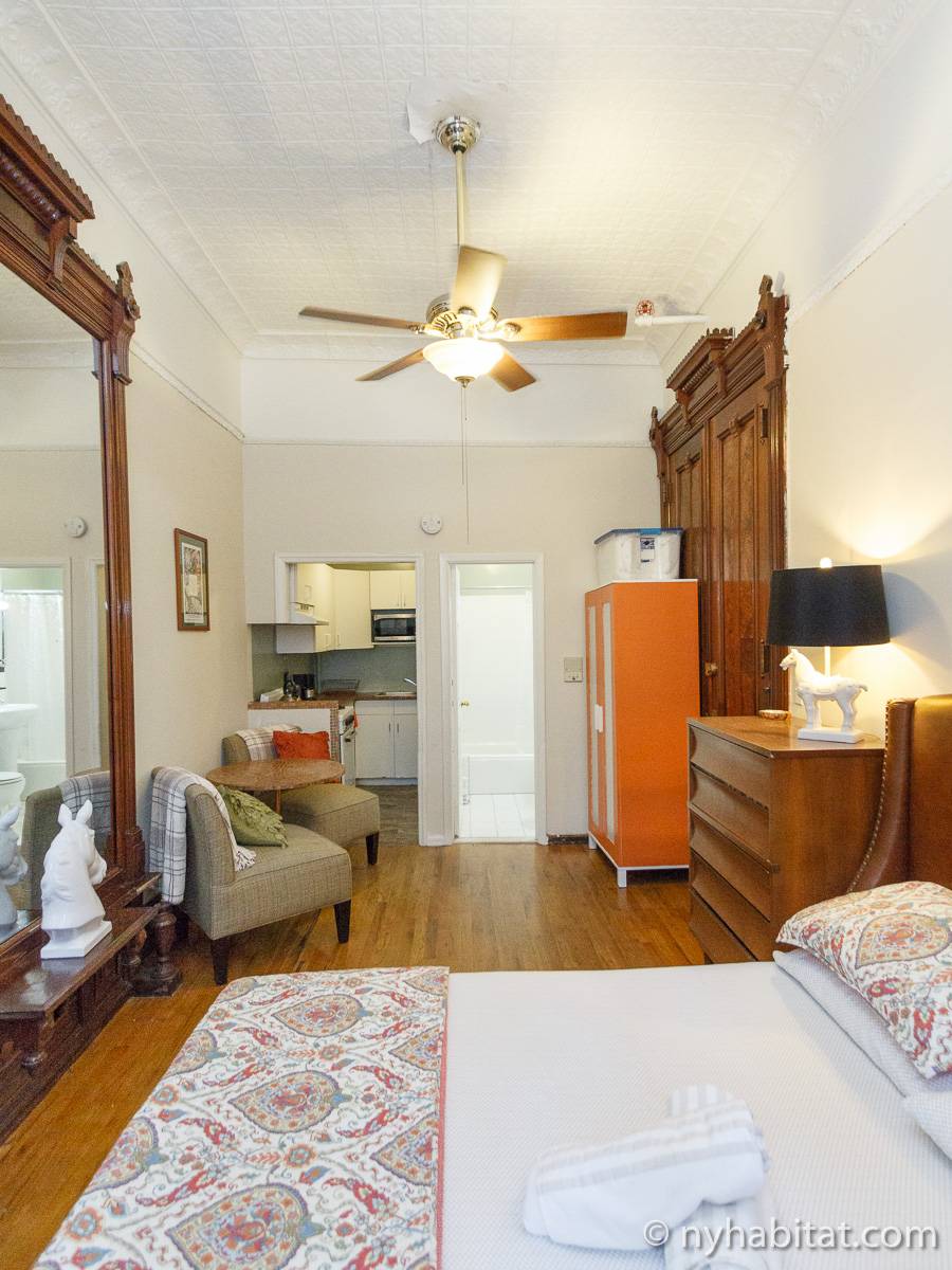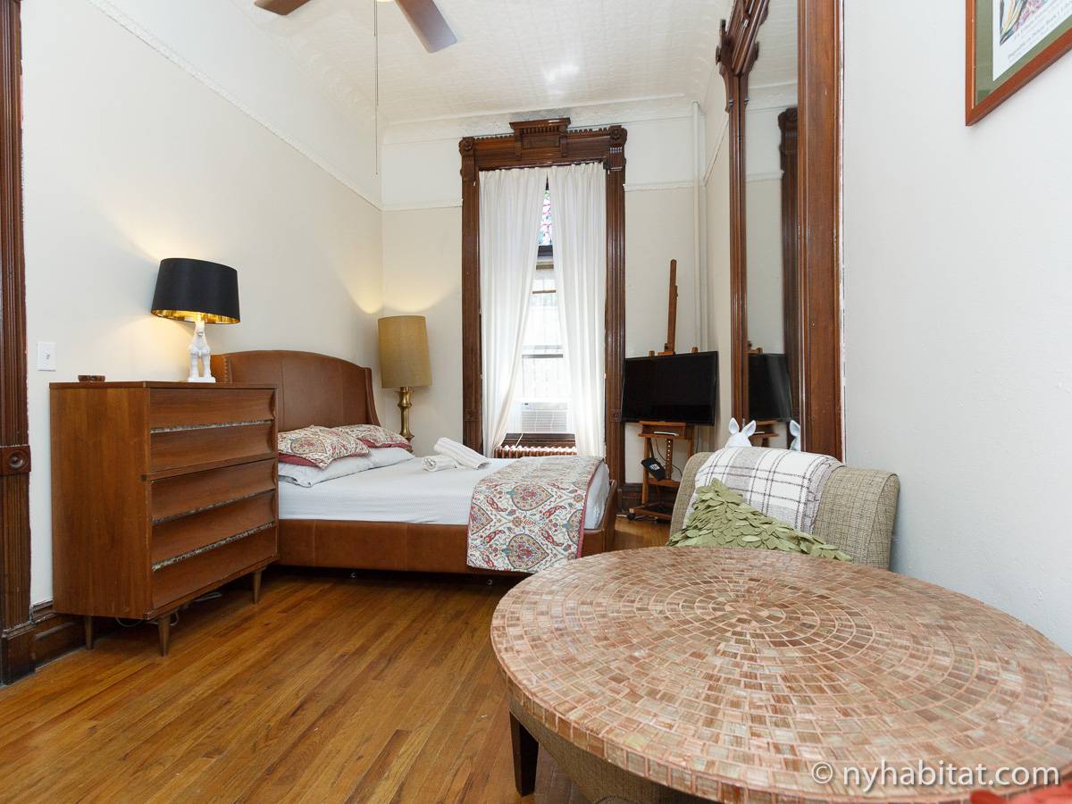 Questo appartamento monolocale privato è allocato all’interno di una casa a schiera bed and breakfast senza ascensore ad Harlem, New York. Si trova al 1°piano di un soleggiato palazzo anteguerra in brownstone di 4 piani (equivalenti rispettivamente al piano terra e ad un palazzo di 3 piani europei) a 123rd Street & Frederick Douglas Blvd. Per il rispetto della privacy degli ospiti, è installato un sistema di telecamere di sicurezza con citofono integrato attivo 24 ore su 24. Gli ospiti potranno inoltre godere di un servizio di portineria.