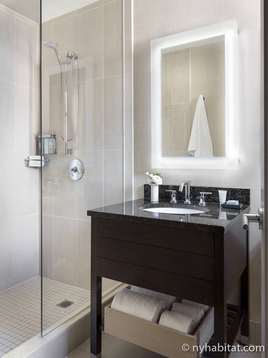 Ho dovuto cambiare appartamento a causa di alcuni imprevisti e mi è stato offerto questo monolocale che si trovava in un hotel invece di essere un appartamento indipendente. Al momento della prenotazione ero consapevole di ciò e l'ho scelto per l'eccellente posizione nel centro città. Se soggiornerete a NY per un periodo lungo e vi piace cucinare e fare la spesa, allora non fa per voi. L'unico elettrodomestico disponibile è un forno microonde, e non c'è tavolo da pranzo. |