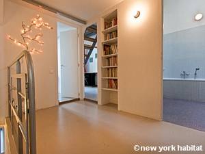 Questo elegante appartamento con tre camera da letto duplex dispone di pavimenti con pietre a vista, mobili colorati, accessori in legno e travi a vista. I letti a castello risparmiano molto spazio! La casa è strutturata in questo modo: al piano terra troviamo il soggiorno, la cucina e un bagno. Al primo piano invece abbiamo le tre camere da letto, uno studio e un bagno.