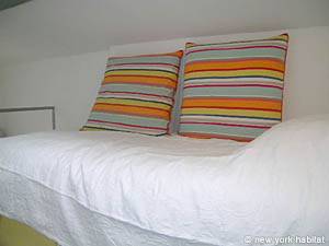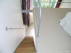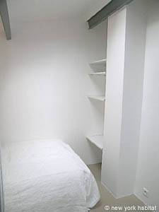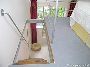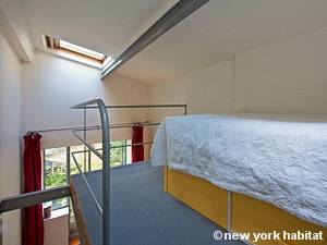 Le tre camere da letto sono sparpagliate al primo piano. La camera da letto 1 è leggermente più piccola delle altre due ed è ammobiliata con semplicità. È disponibile un letto a castello con materasso a due piazze e lenzuola pulite. La finestra si affaccia sulla strada e sotto il letto a castello c’è anche un piccolo tavolo pieghevole. A disposizione anche alcuni scaffali.