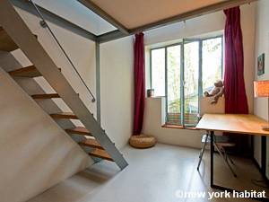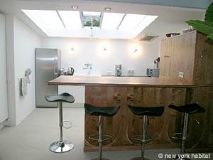 Questo luminoso appartamento in Rue de la Clef, tra Rue Censier e Rue du Fer à Moulin, occupa il piano terra e il 1° piano di un palazzo di due piani del XX secolo. L’alloggio include grandi finestre e un lucernario in cucina, che permettono alla luce del giorno di illuminare gli spazi interni.
