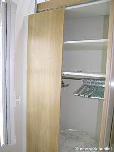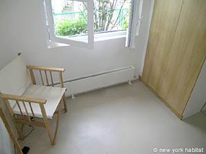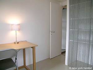 La Camera da Letto 2 di questo appartamento offre un’ampia finestra che regala luce e aria fresca alla stanza. C’è una scrivania in legno con relativa sedia e relativi scaffali. Il letto a castello è a una sola piazza.