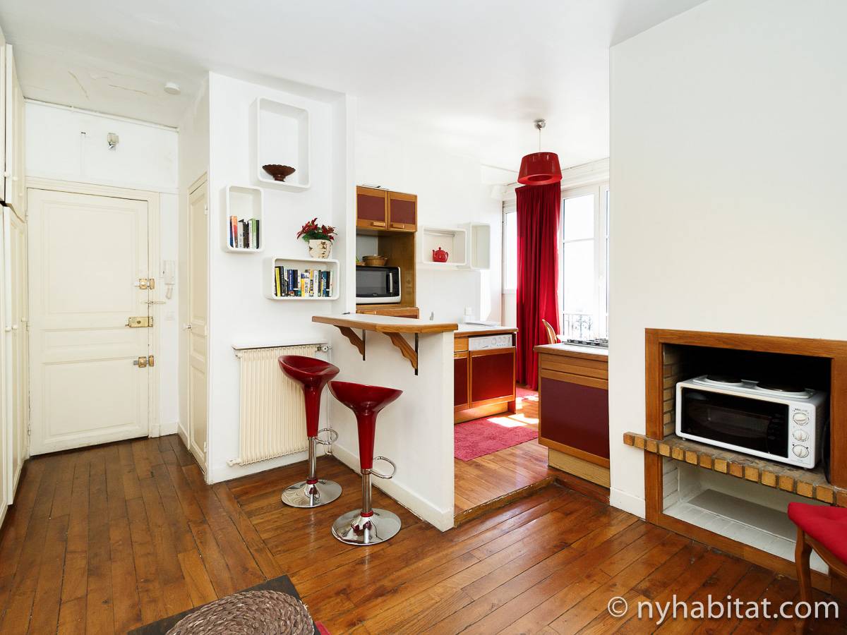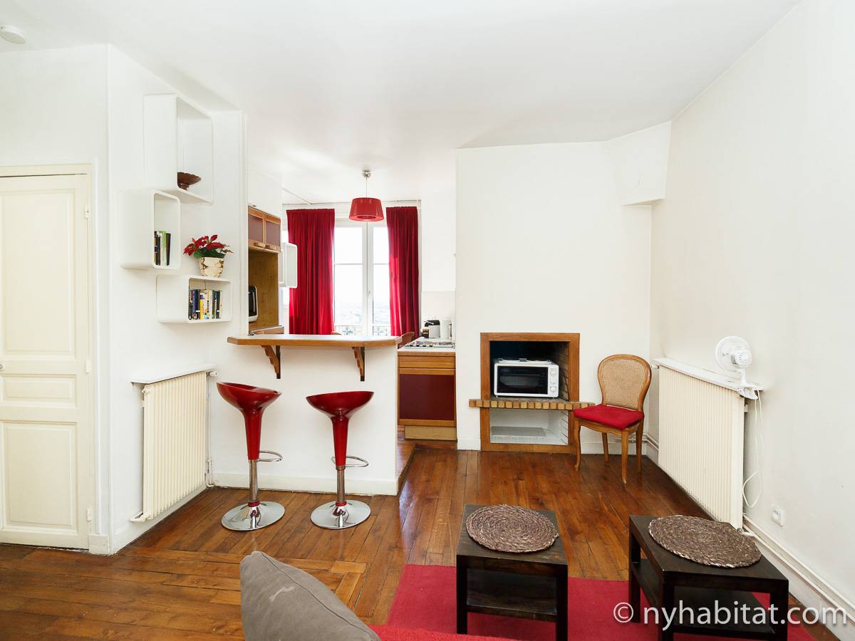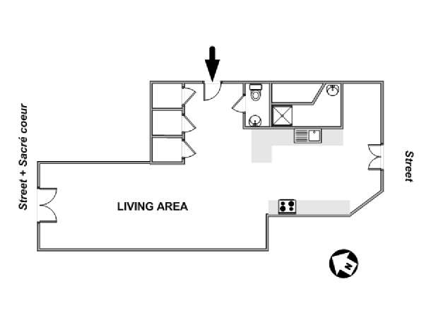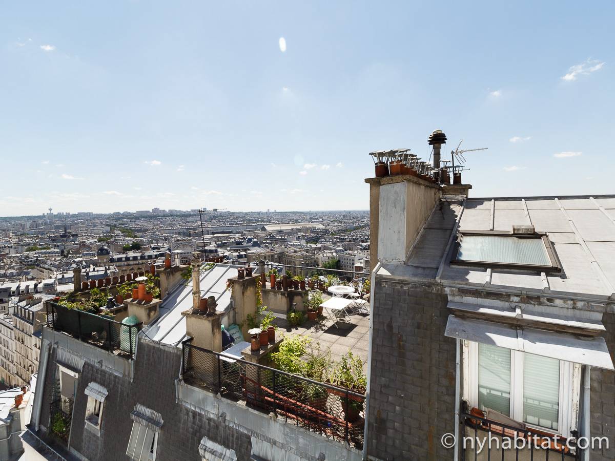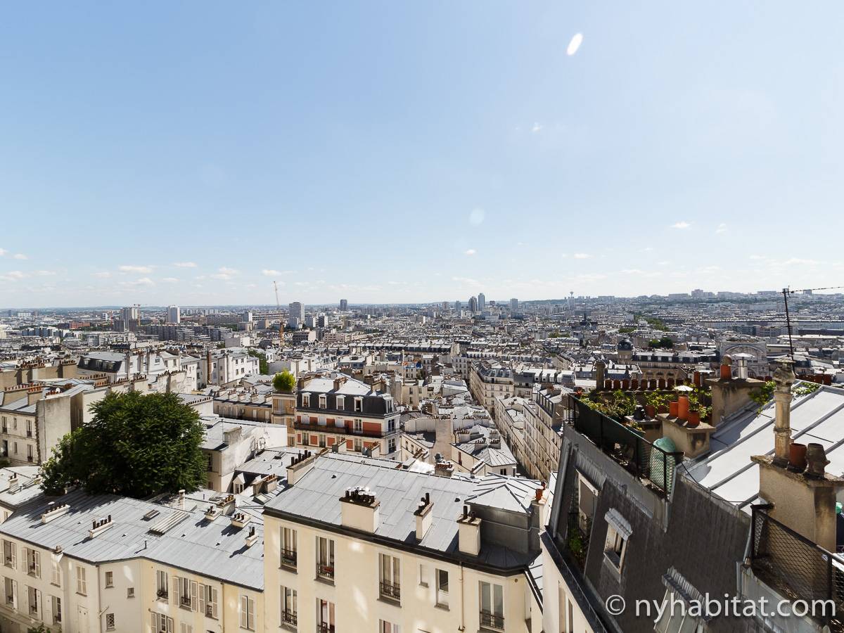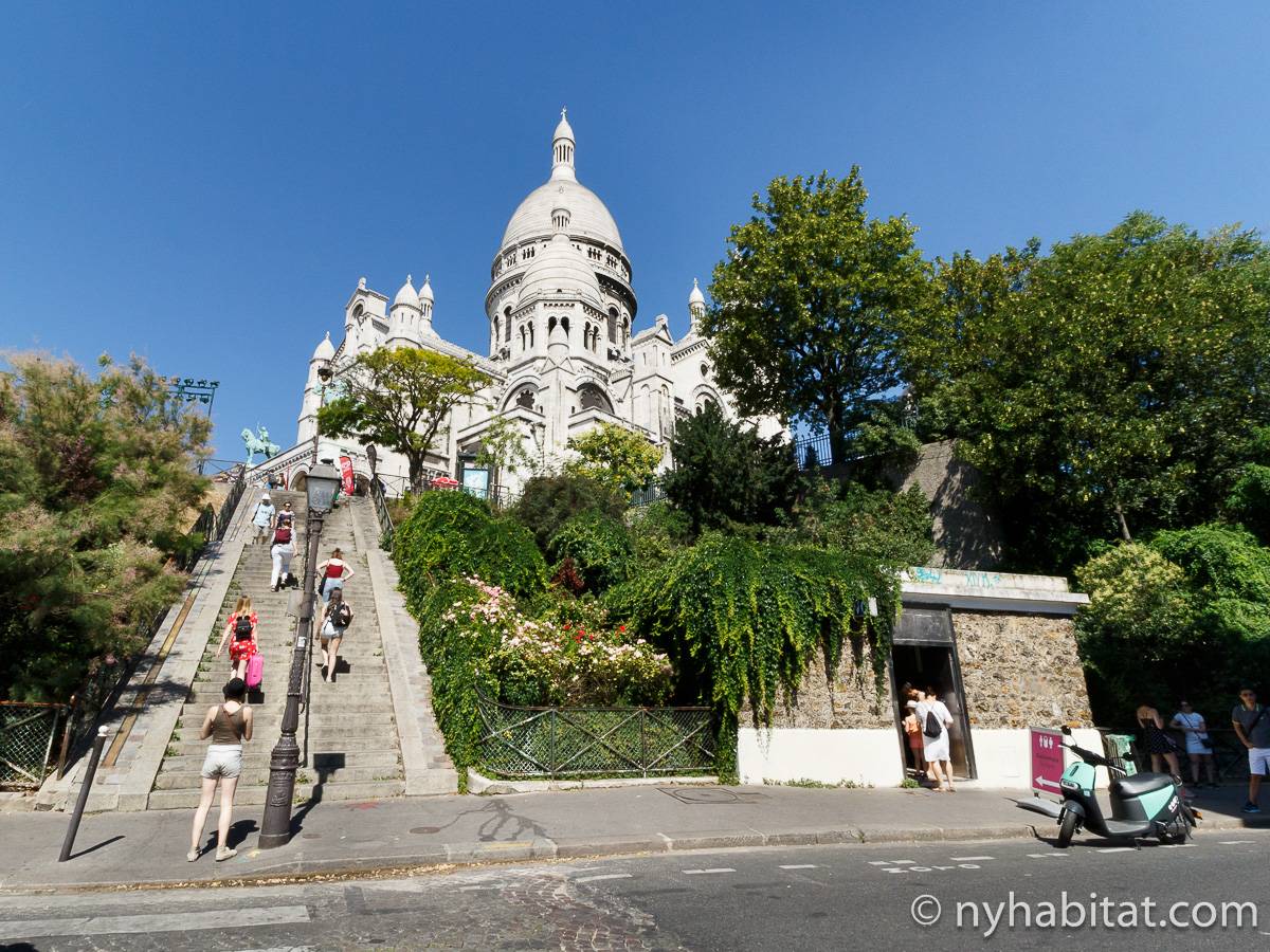 La posizione è fantastica perché l'appartamento è proprio accanto al Sacro Cuore in cima a Montmarte. Ci sono 2 grandi finestre, una rivolta ad est e una ad ovest. Questo era importante per la ventilazione trasversale, dato che un giorno la temperatura massima era di 107 fahrenheigt. Ci tornerei volentieri! Essendo situato vicino al Sacro Cuore il livello di rumore di notte era alto a causa del fatto che i giovani fanno festa lì urlando e suonando musica ad alto volume fino all'alba. Questo accadeva soprattutto nei fine settimana. Le finestre sono nuove e con doppi vetri, il che ha aiutato, ma non se la sera faceva caldo e bisognava aprire le finestre.