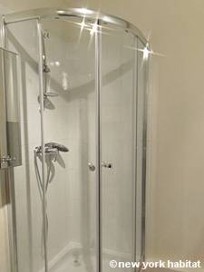 L'appartamento monolocale di 12m² a Batignolles - Ternes , presenta pavimenti a parquet e alti soffitti, ed è arredato in stile contemporaneo. C'è una finestra che affaccia su un monumento e un lucernario che illumina la camera. L'area soggiorno è arredata con un divano letto a una piazza e mezzo e un piccolo tavolo da pranzo in legno per due persone. L'angolo cottura ha un piano di lavoro grigio che riprende il colore delle piastrelle nei pavimenti e nelle pareti. È dotato di armadietti bianchi, lavello, mini-frigo e un piano cottura con due fornelli. Inoltre, c'è un microonde, una macchina per il caffè e un tostapane, così come gli utensili essenziali. Mentre questo soggiorno aperto contiene un vano doccia con porta vetrata trasparente, la toilette e il lavandino sono in un ambiente separato sul corridoio comune (appena si esce dal monolocale). Per cui si tenga conto di questa limitazione della privacy.
