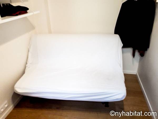 Caratterizzata da pavimenti in legno massello e soffitti inclinati, questo appartamento in affitto di 10 mq a Parigi offre servizi generali per un piacevole soggiorno nella città delle luci. L’appartamento è equipaggiata con un letto singolo, un lettore DVD ed un cucinino graziosamente fornito con gli utensili esseziali alla cucina, il mobilio e la lavastoviglie. Le larghe porte finestre affacciano su un fantastico panorama parigino. Con le librerie a muro fornite di tascabili ed una scrivania con una sedia per il tavolo da lavoro, questo appartamento è sia elegante che pratico.