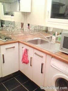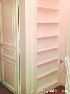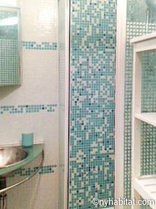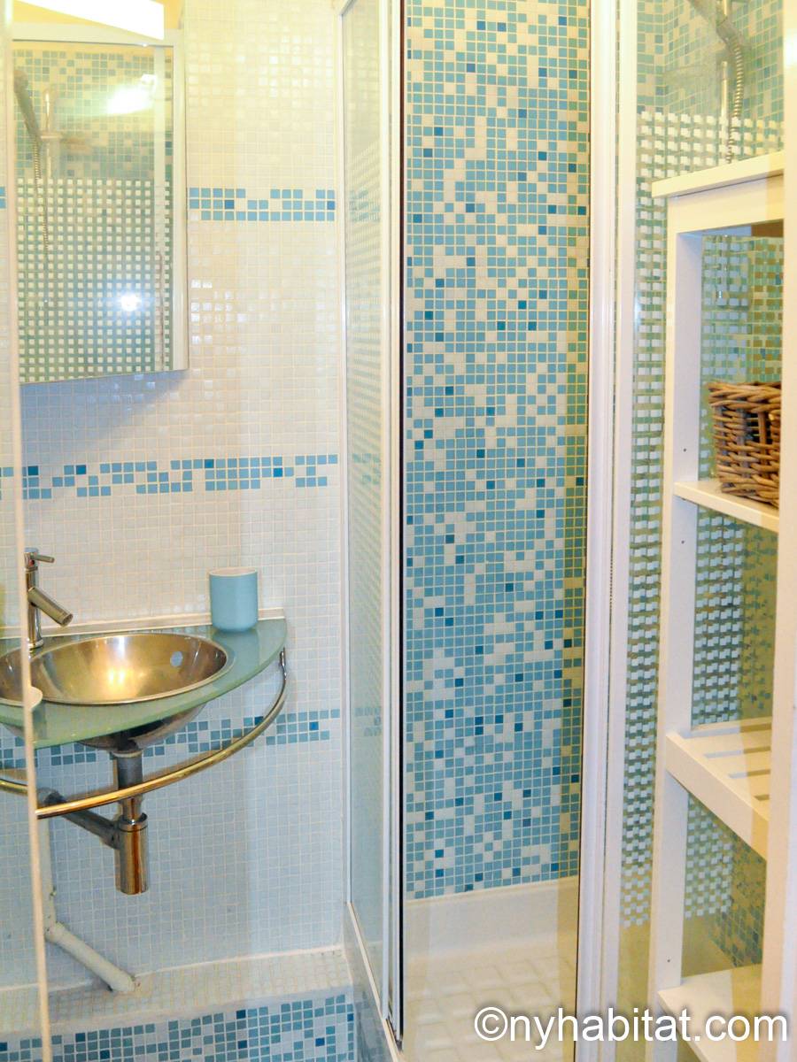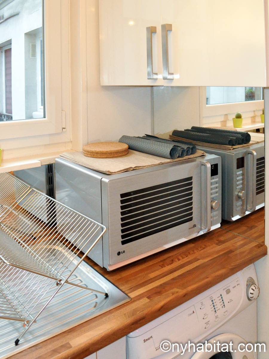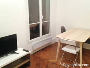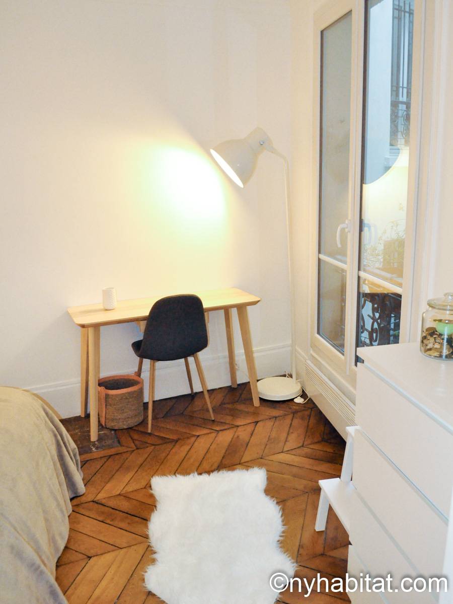 Quest'appartamento con una camera da letto mescola lo stile tradizionale con il moderno in maniera spontanea. Pareti chiare, parquet e soffitti alti fanno della casa una dimora arieggiata e confortevole. Il soggiorno, completamente ammobiliato in stile contemporaneo, dispone di un divano, una scrivania e una TV a schermo piatto. La camera da letto è ammobiliata in bianco con un letto matrimoniale "queen" e una luce debole. L'appartamento in affitto ha un bagno e mezzo: un bagno completo con mattonelle blu, una doccia verticale e il water, vicino alla cucina. La cucina è stata da poco rimodernata con banconi in quercia e armadietti bianchi. La casa è attrezzata con l'essenziale: un aspirapolvere, un ferro da stiro, l'asciugacapelli etc.