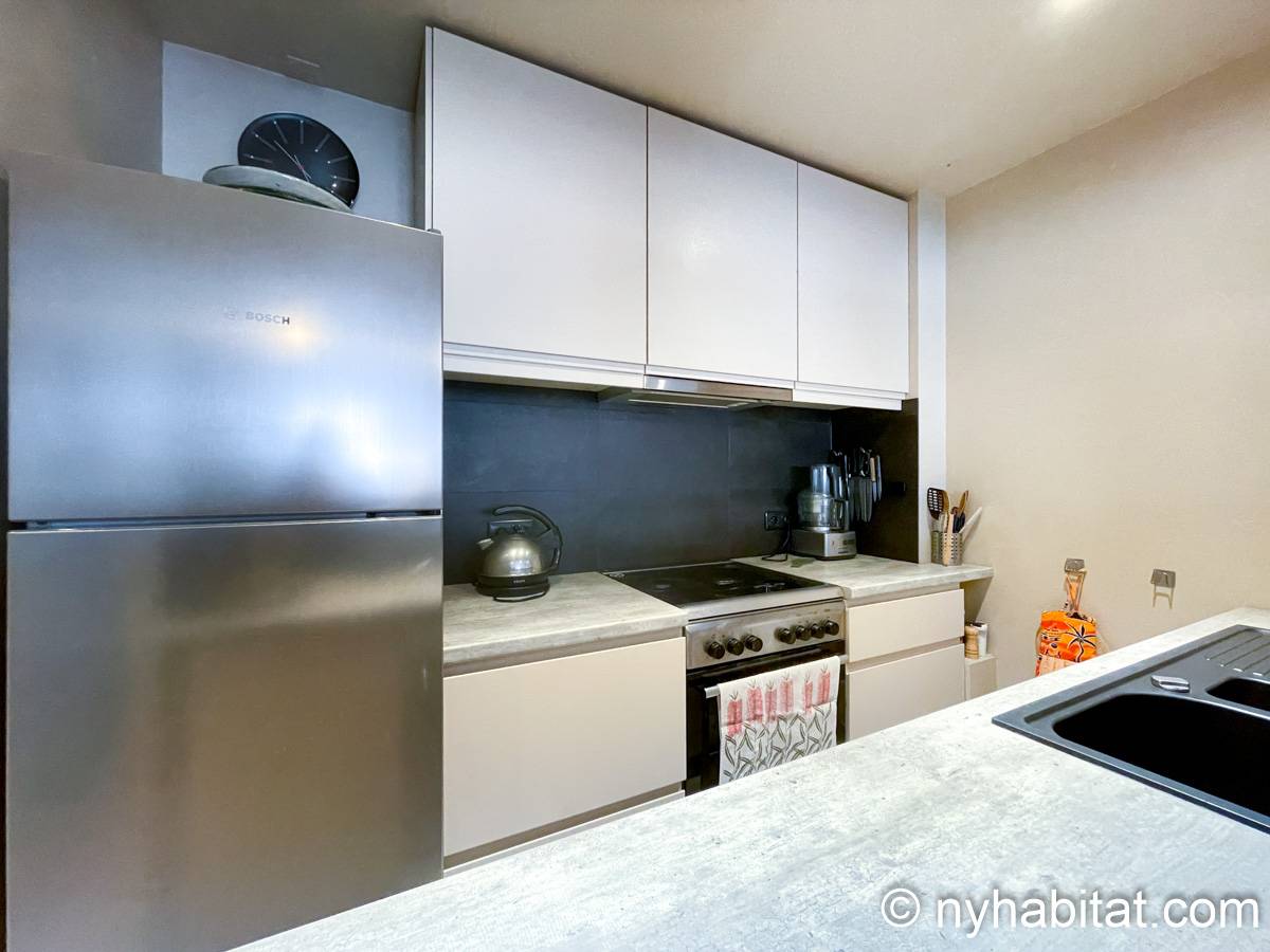 Potrete trovare questo appartamento in affitto nel pittoresco diciottesimo arrondissement di Parigi, a pochi passi dai migliori ristoranti e negozi della città e da monumenti quali la Sacre-Coeur Basilica (1km). In fondo alla strada troverete il famoso Café des Deux Moulins (130m), un must da vedere per chiunque abbia amato il film il fantastico mondo di Amelie. Le Relais Gascon (550m) è un famoso bistro francese con la tipica atmosfera della Francia e il Ristorante al Caratello (280m) serve piatti e vini italiani. Per un drink ed uno stuzzichino, vi consigliamo La Fourmi (750m), un Caffè casual con un’aurea bohemian. La Piazza Louise Michel vi porterà fino alla Sacre-Coeur Basilica dove potrete ammirare una vista fantastica della città. Place du Tertre (800m) una piazza acciottolata iconica e famosa zona di ritrovo di artisti.