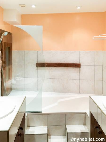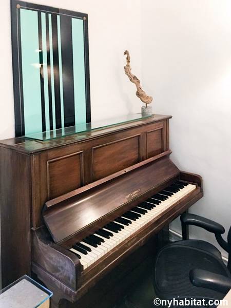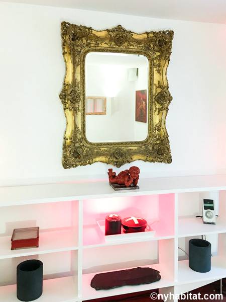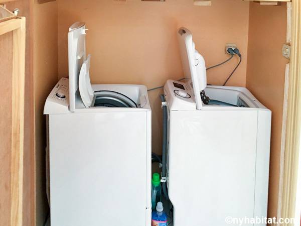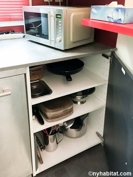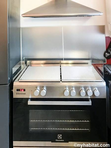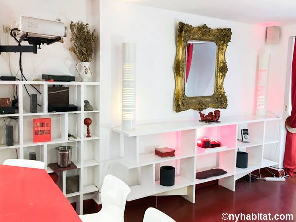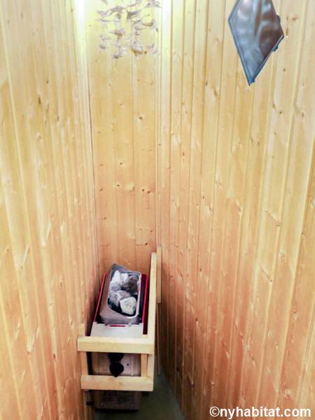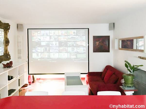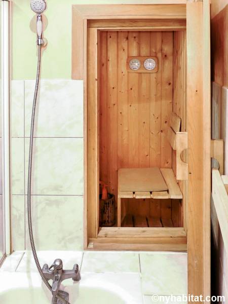 Entrando nel soggiorno di quest'appartamento noterete l'arredamento contemporaneo e lo stile eclettico. Il soggiorno è fornito di un divano, uno schermo home theater con il proiettore. Nell'angolo si apre una cucina a vista con elettrodomestici all'avanguardia. Il colore grigio scuro dei mobili dà all'appartamento in affitto un aspetto industriale, mentre i ripiani e le tende di un rosso brillante aggiungono colore allo spazio. Prendete uno sgabello e trovatevi insieme al bar di questo moderno arrendamento degli interni. La camera da letto 1 è arredata con un letto a una piazza e messa e un armadio in legno; la camera da letto 2 invece, un letto a una piazza e mezza, scaffali e un armadio, insieme a un pianoforte verticale. Il bagno, simile ad una spa, offre una sauna e una toilette separata. Per vostra comodità, la lavatrice e l'asciugatrice sono installate all'interno dell'appartamento e l'edificio dispone di una stanza per le bici.