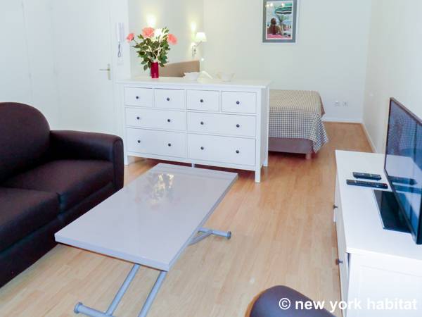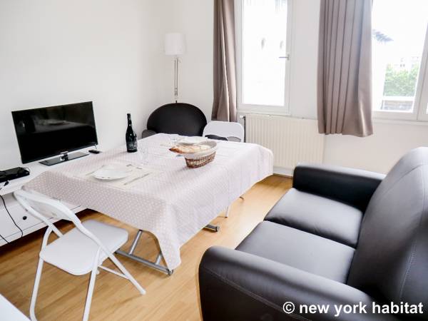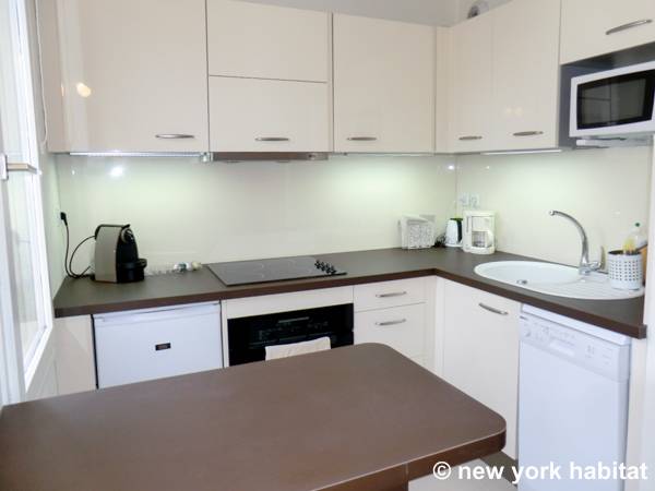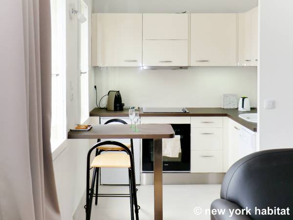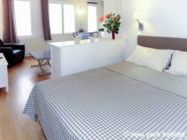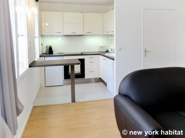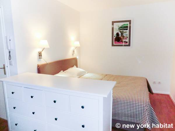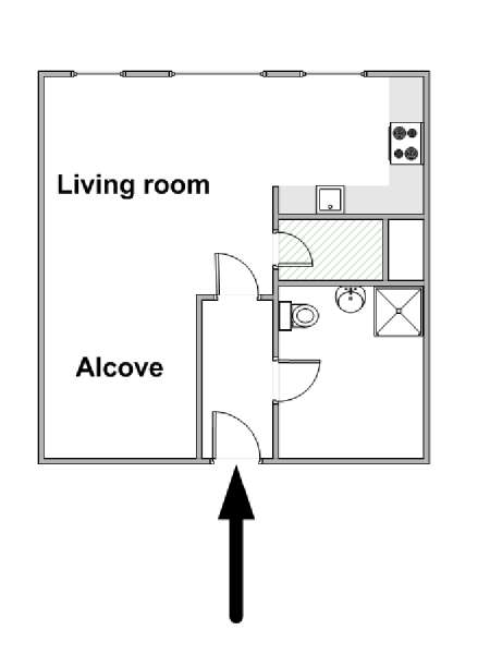 Questo grande appartamento monolocale con alcova separata ha una pavimentazione in legno massello e porte finestre esposte a est che lasciano entrare nello spazio la luce del mattino. Principalmente con la scelta dei colori bianco e nero, questo appartamento molto chic include un televisore a schermo piatto via cavo, un divano e un tavolo da pranzo. Il letto a due piazze queen è nell’angolo, parzialmente isolato dal resto della casa da un mobile. Nella cucina troverete gli essenziali elettrodomestici per cucinare, mobiletti capienti, una macchina per il caffè Nespresso e una lavastoviglie per massimo comfort! Sarà disponibile un ventilatore.