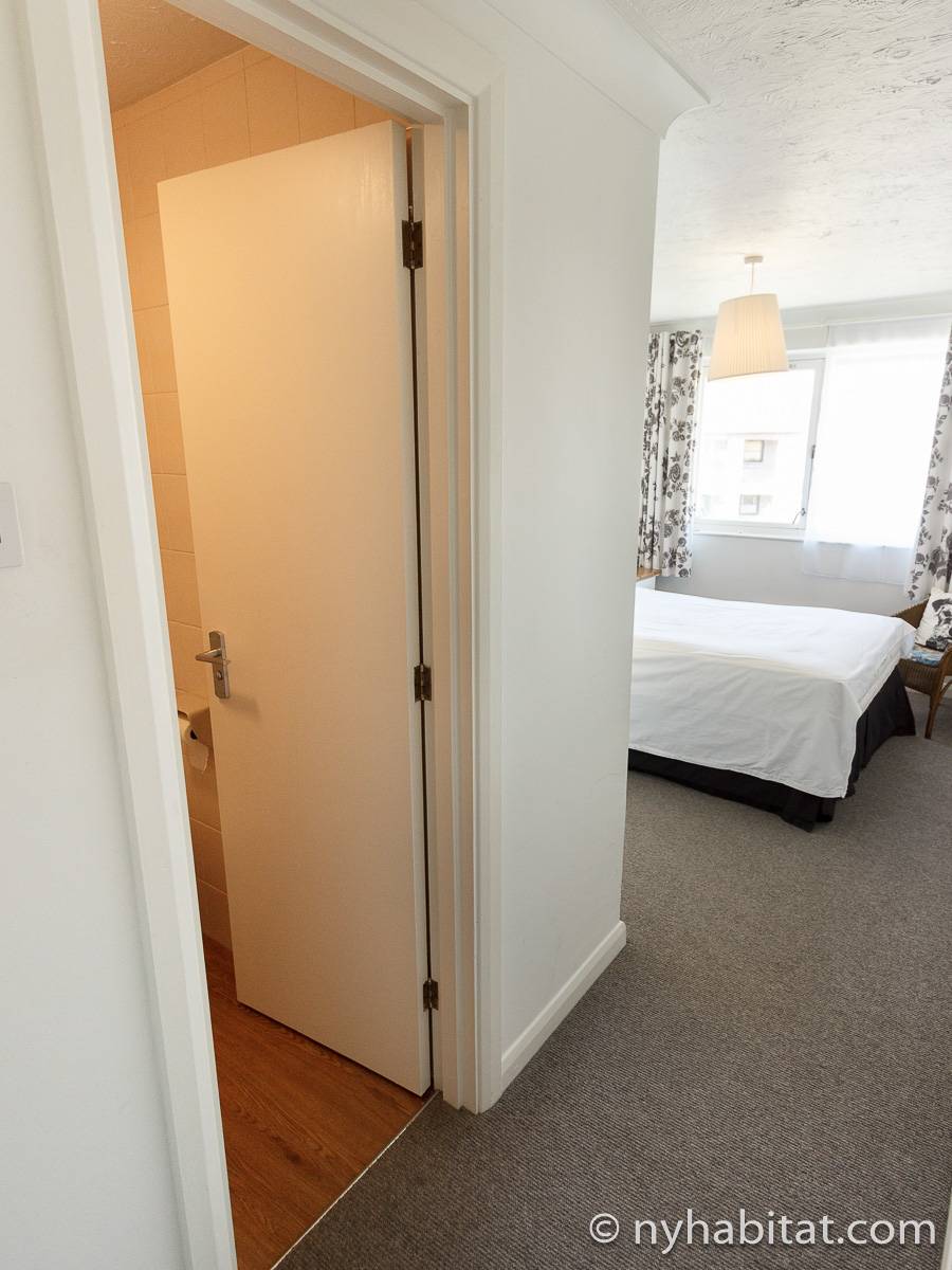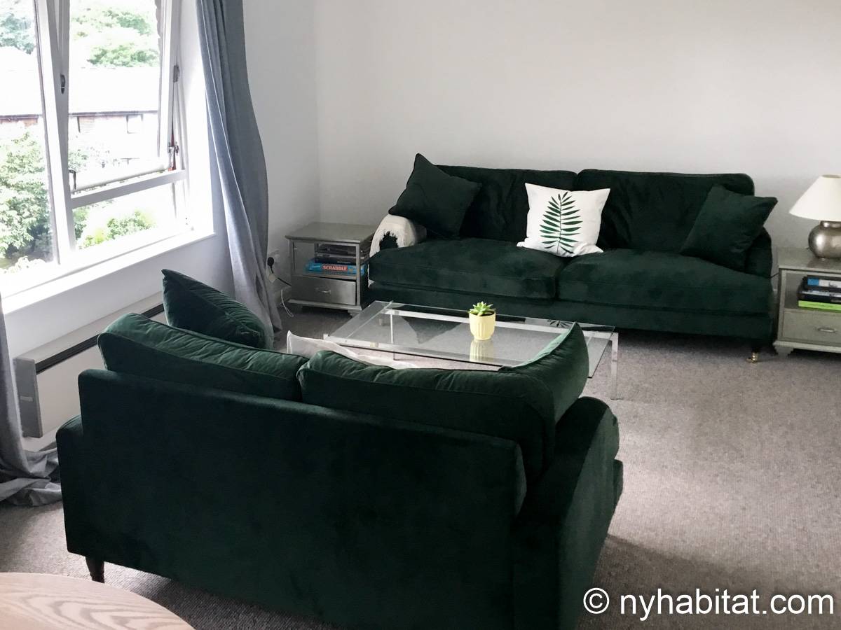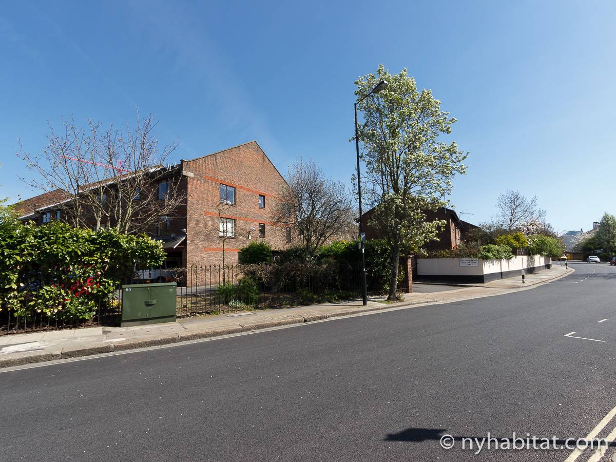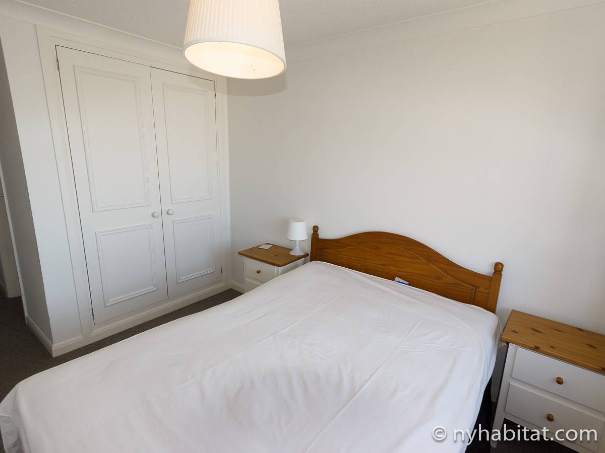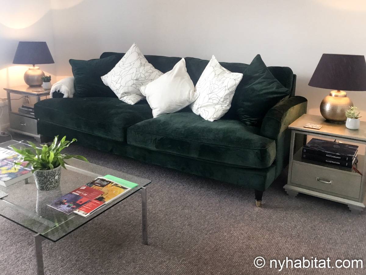 This London apartment features modern décor and offers ample natural light. The living room is furnished with a sofa and a dining table for six people. The open kitchen is equipped with an oven, fridge, microwave, toaster and a dishwasher. The bathroom has a bathtub, WC and a sink. The two bedrooms are furnished with full sized beds and nightstands. This apartment also has the convenience of a washing machine.