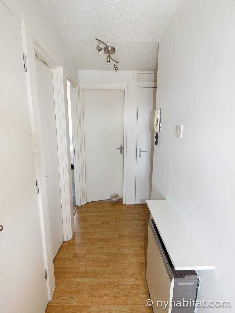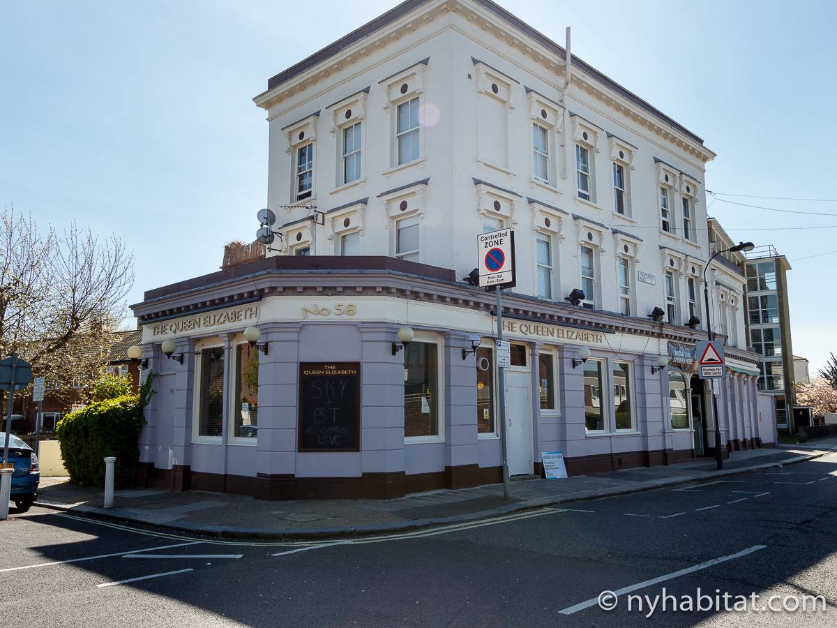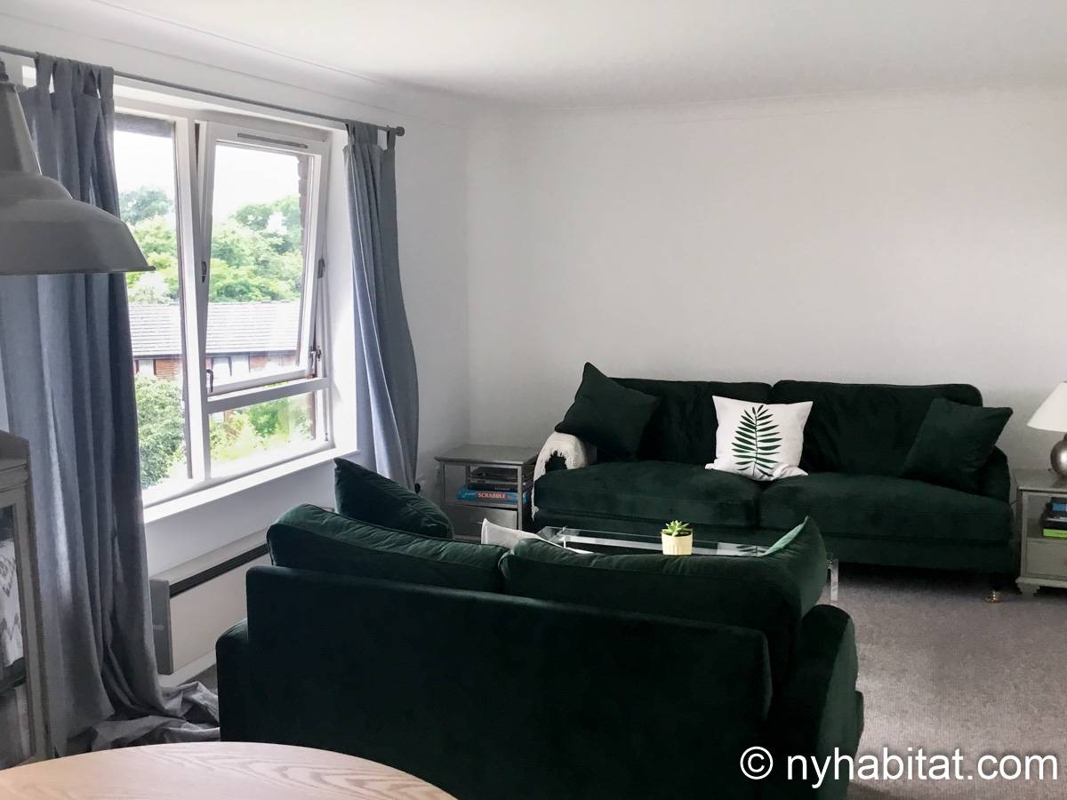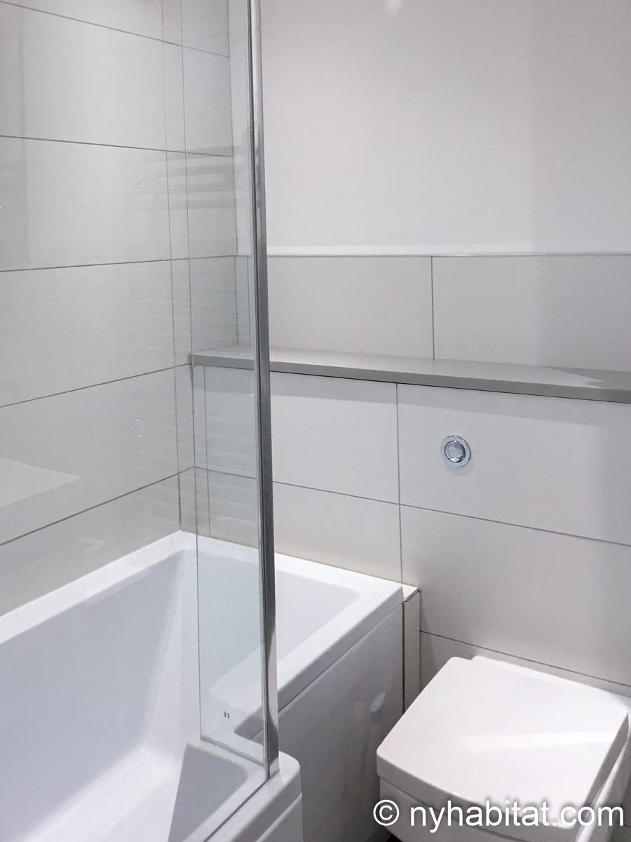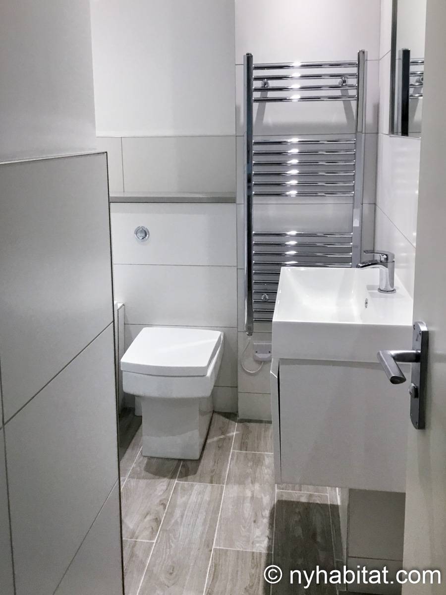 This London apartment features modern décor and offers ample natural light. The living room is furnished with a sofa and a dining table for six people. The open kitchen is equipped with an oven, fridge, microwave, toaster and a dishwasher. The bathroom has a bathtub, WC and a sink. The two bedrooms are furnished with full sized beds and nightstands. This apartment also has the convenience of a washing machine.