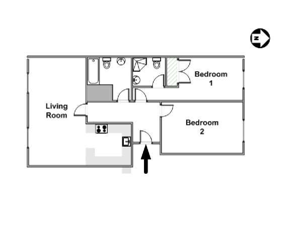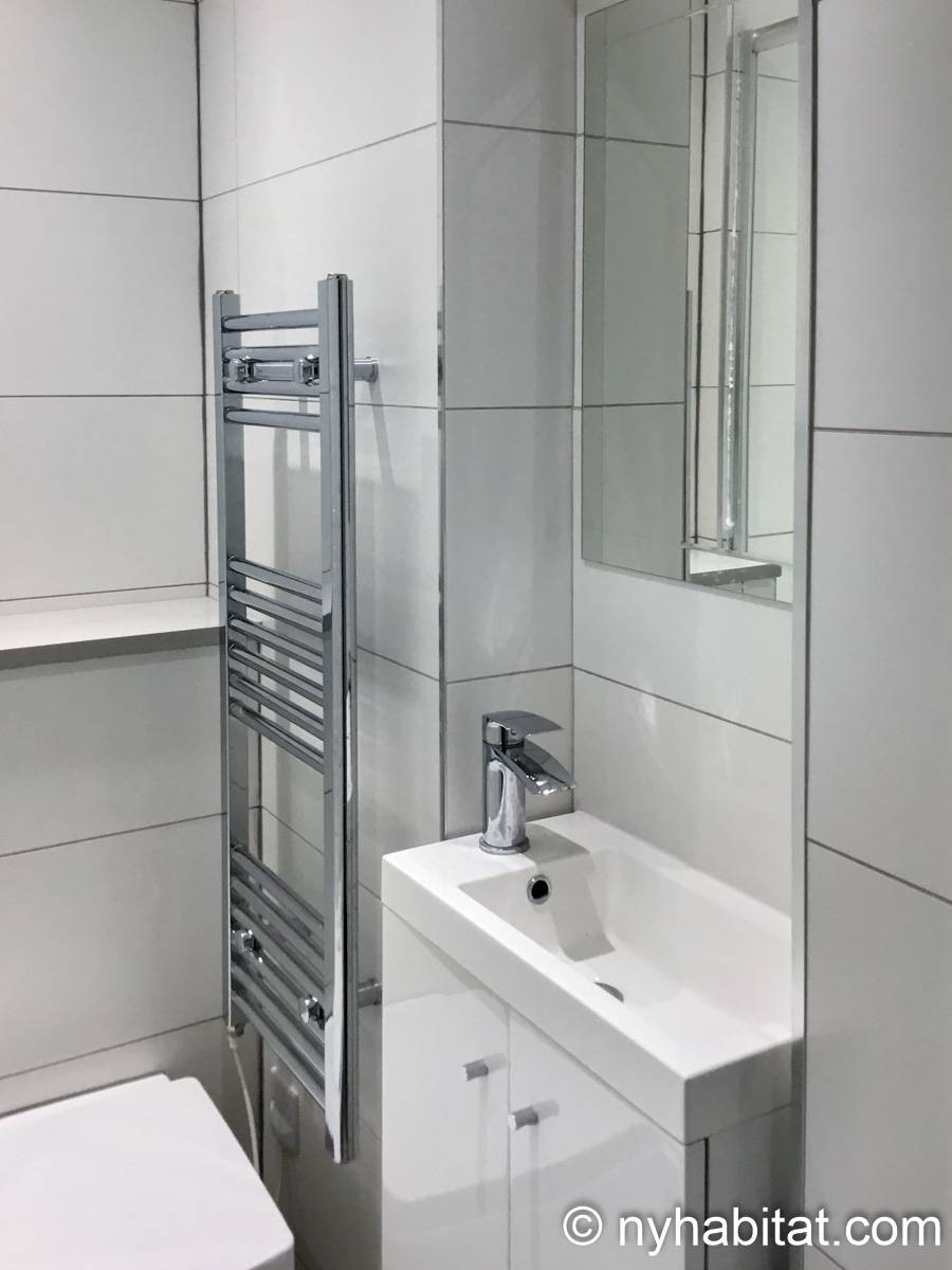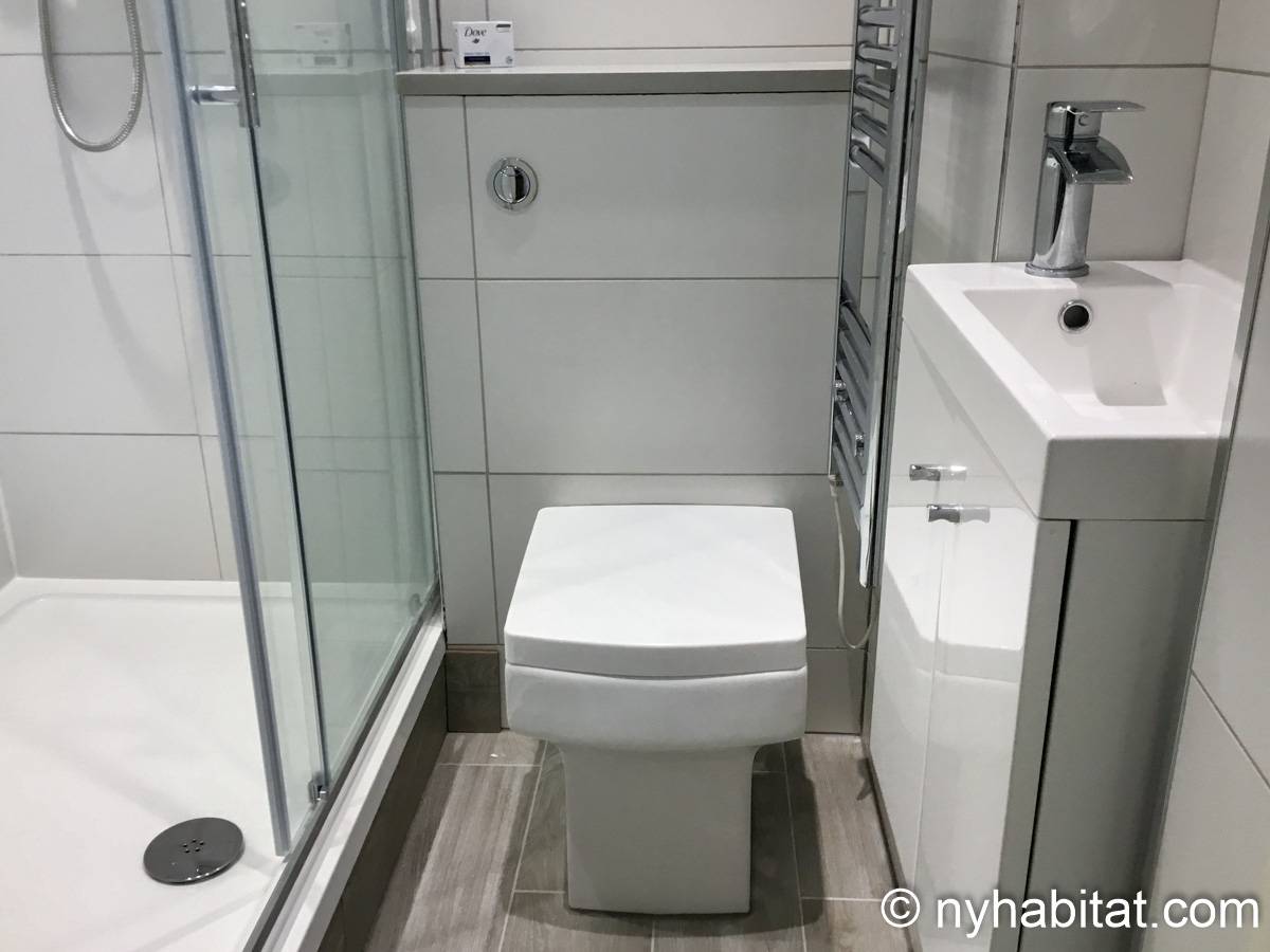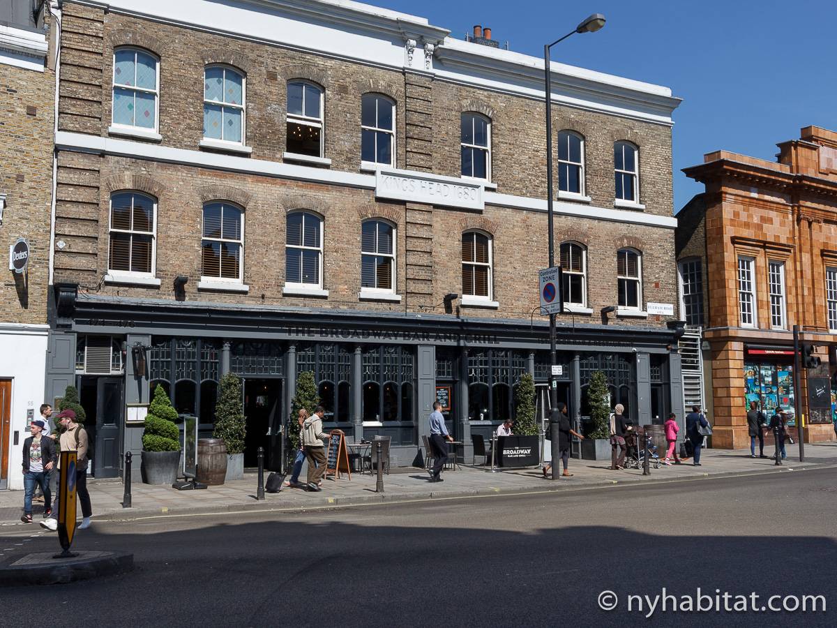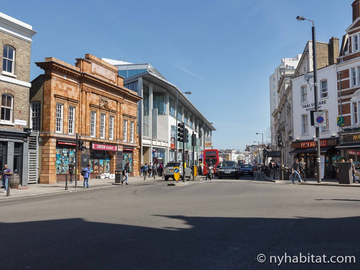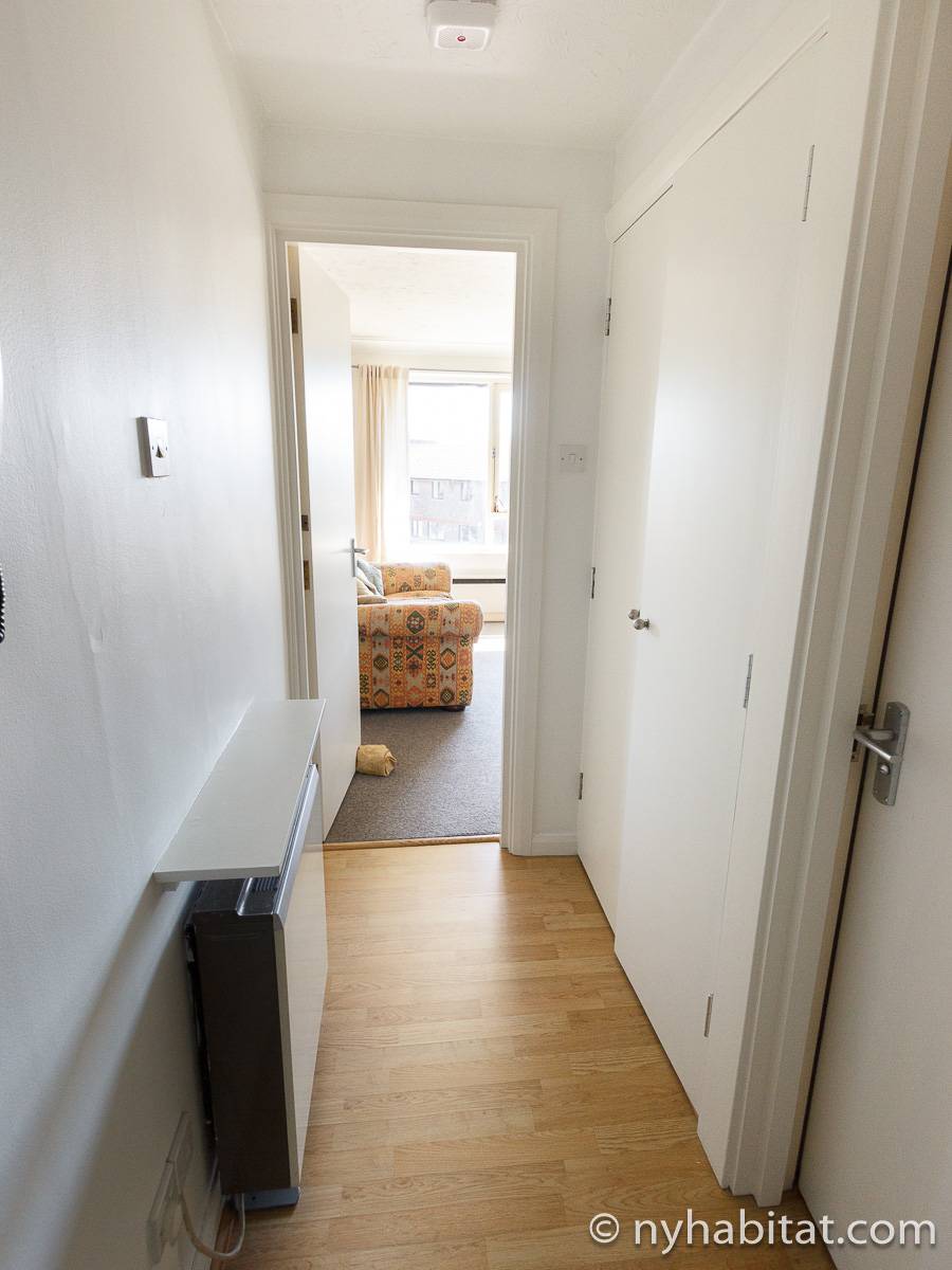 This London apartment features modern décor and offers ample natural light. The living room is furnished with a sofa and a dining table for six people. The open kitchen is equipped with an oven, fridge, microwave, toaster and a dishwasher. The bathroom has a bathtub, WC and a sink. The two bedrooms are furnished with full sized beds and nightstands. This apartment also has the convenience of a washing machine.