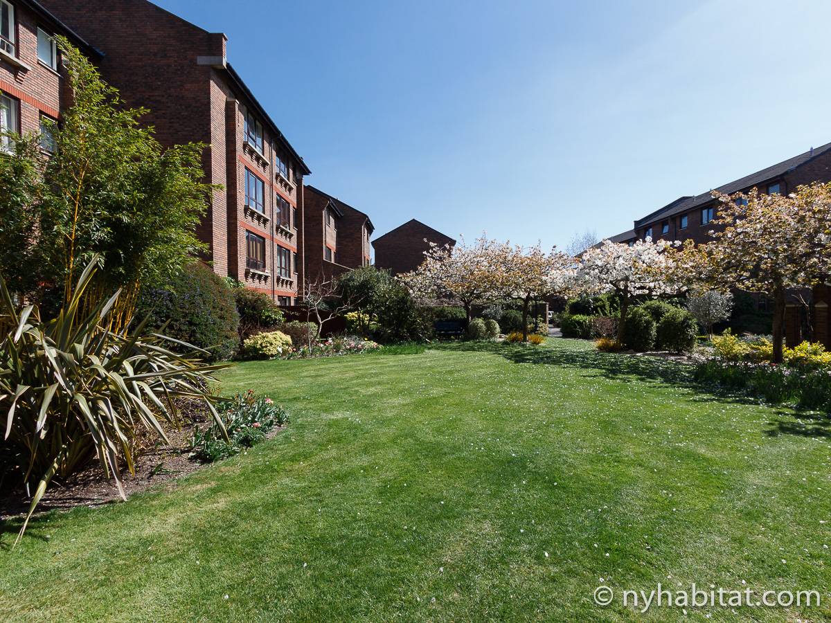 This two bedroom apartment is located in Fulham, London on Bagleys Lane off Kings Road. This fully furnished apartment can be found on the 3rd floor (considered 4th in the U.S.) of a 20th century modern building complete with a security system, parking space and a garden.
