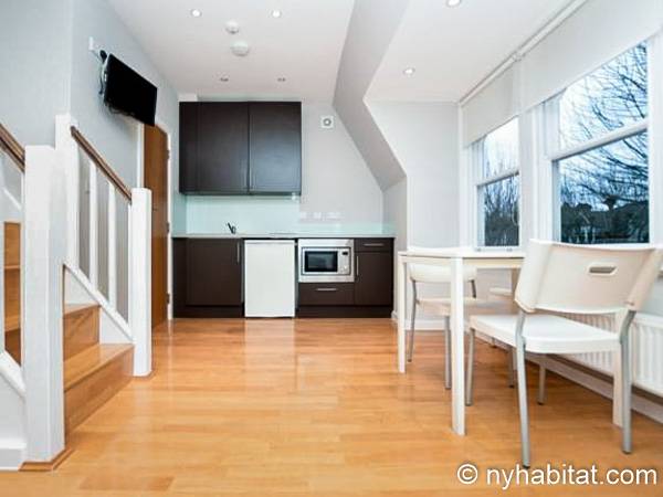Take in this fully modern one bedroom furnished apartment for rent in East Finchley. On the second floor of a duplex home, this apartment is located on Kings Avenue & Thetherdown. Laundry is located in the building and the amenities that surround this location will have all that you seek.