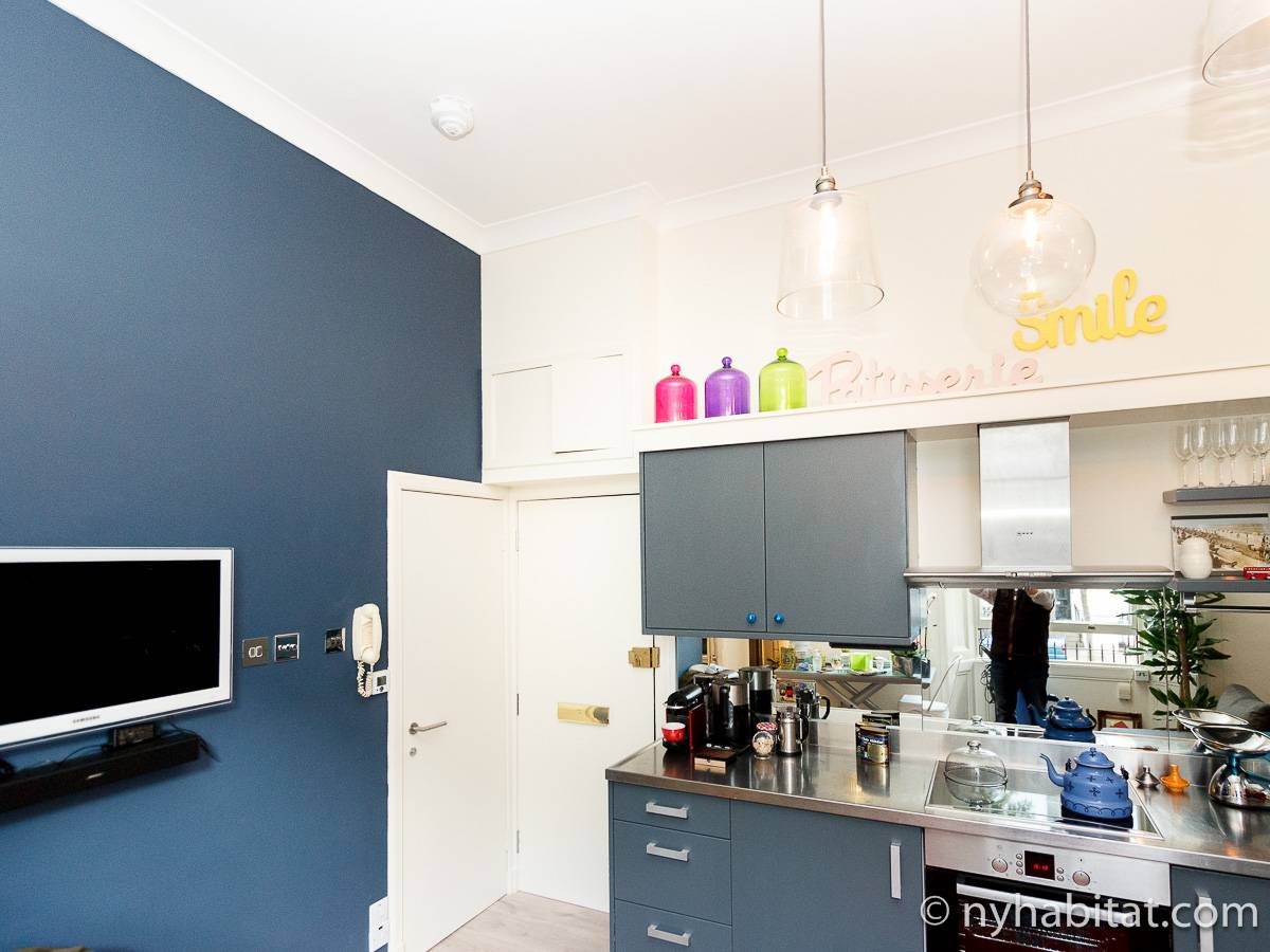 Discover this modern one bedroom furnished apartment in the London neighborhood of Notting Hill. On the ground floor of a 3 story period home, this flat provides an in-unit washer and dryer. Located near Colville Square & Colville Terrace come to find what makes this a favorite neighborhood known from the set of a movie.