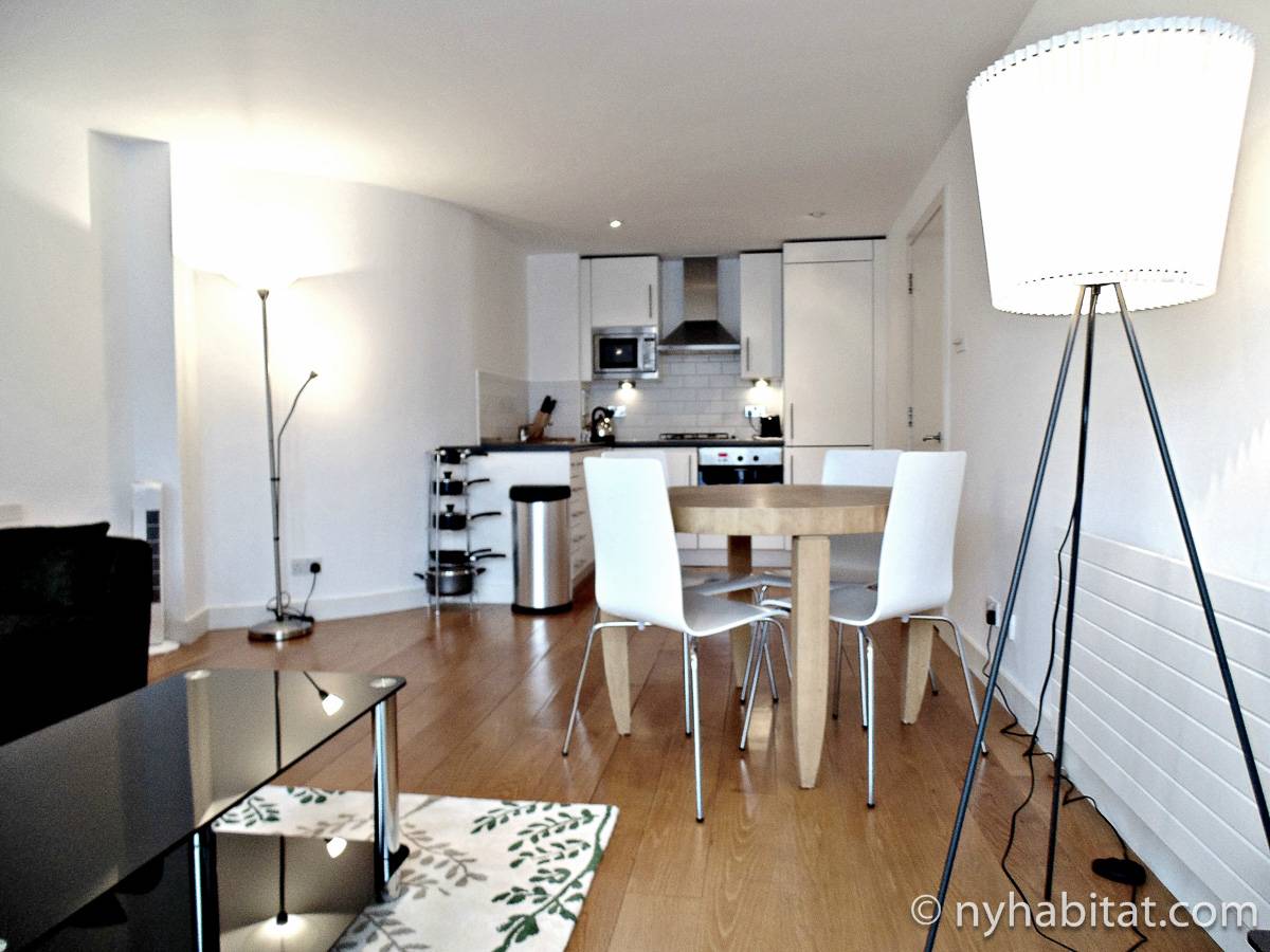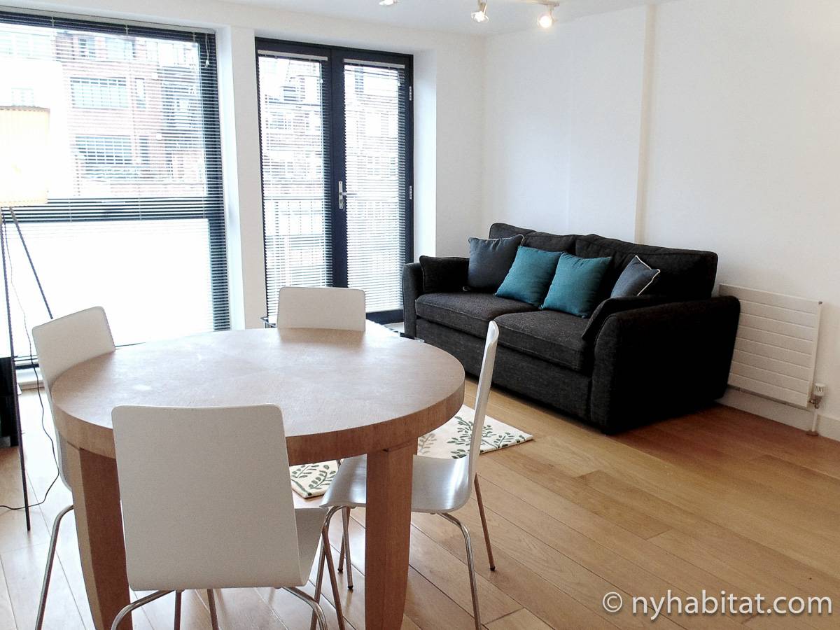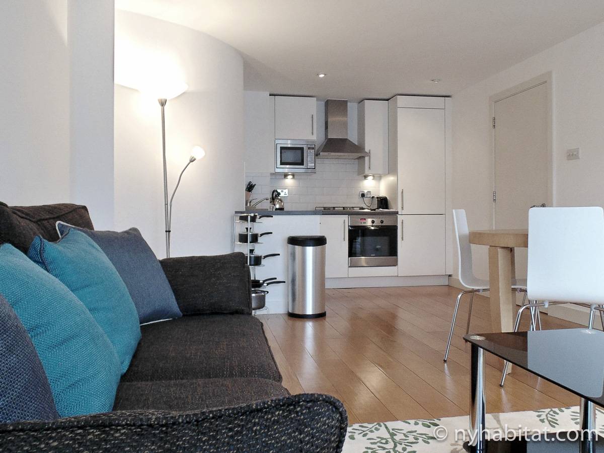 These one bedroom apartments are in the industrial heart of Clerkenwell, London. In a modern building on Turnmill Street and Clerkenwell Road, you have conveniences of a hotel with the privacy of your own apartment. The building has full-time concierge service, an elevator, and maid service for stays over seven days.