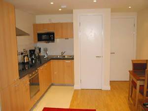 This London vacation rental is furnished with a modern décor and offers hardwood flooring throughout. The living area is furnished with a sofa, dining table, phone, TV with cable and a full sized murphy bed. In the open kitchen, you can cook at home with the microwave, toaster, coffee maker and dishwasher. The vacation rental has the convenience of a washer and dryer in the unit.