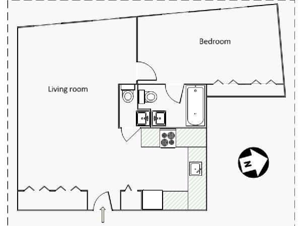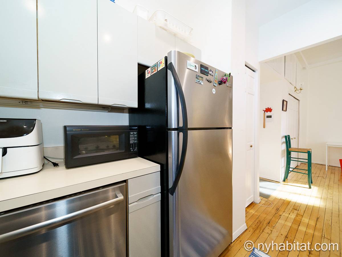 Set in the residential and ultra-trendy Fort Greene neighborhood, the one bedroom apartment sits on the top floor of a 4-story (considered 3-story in Europe) low-rise walk-up building with intercom security system. A laundry room is located on the same floor, shared with all residents of the building.