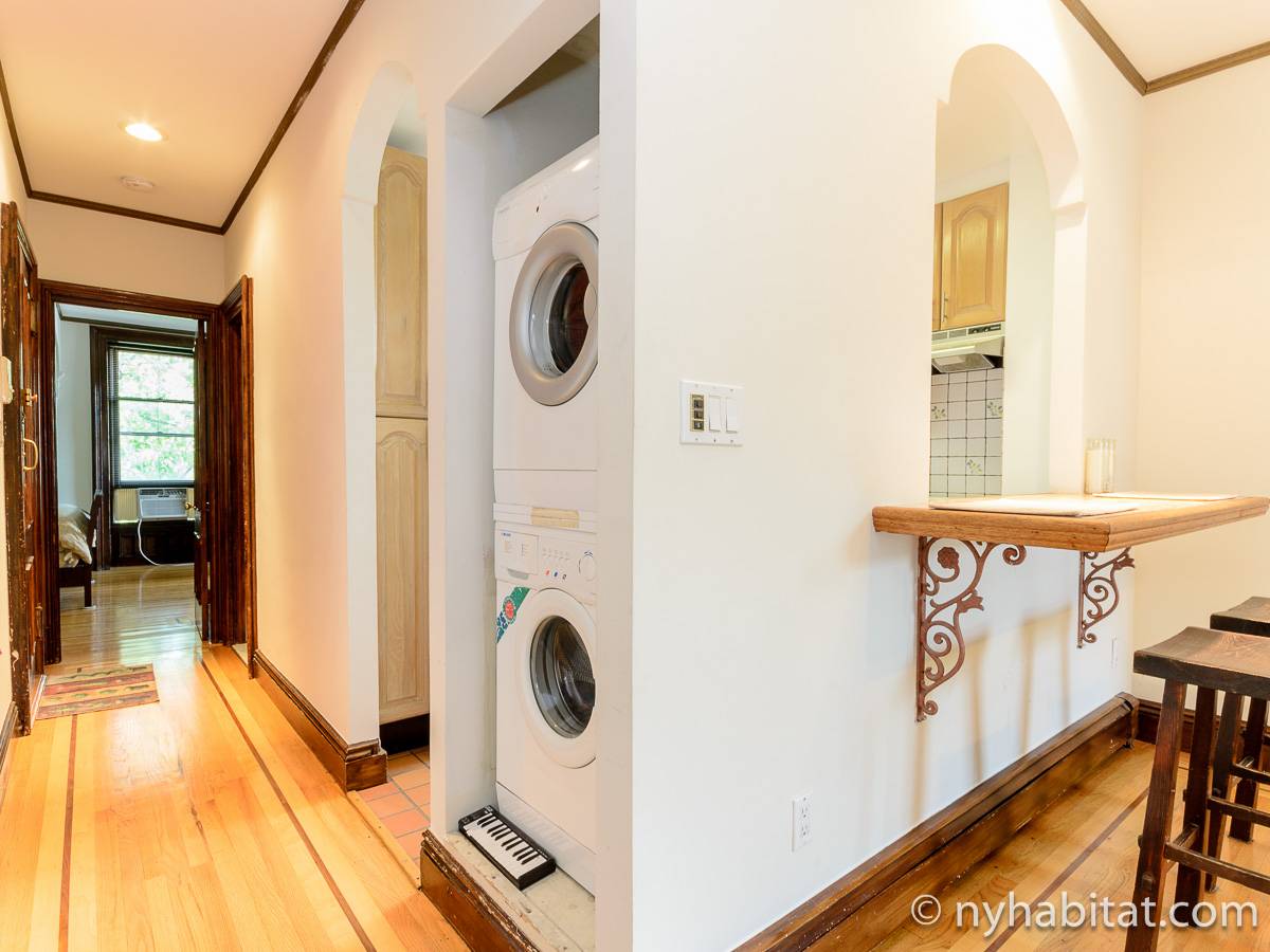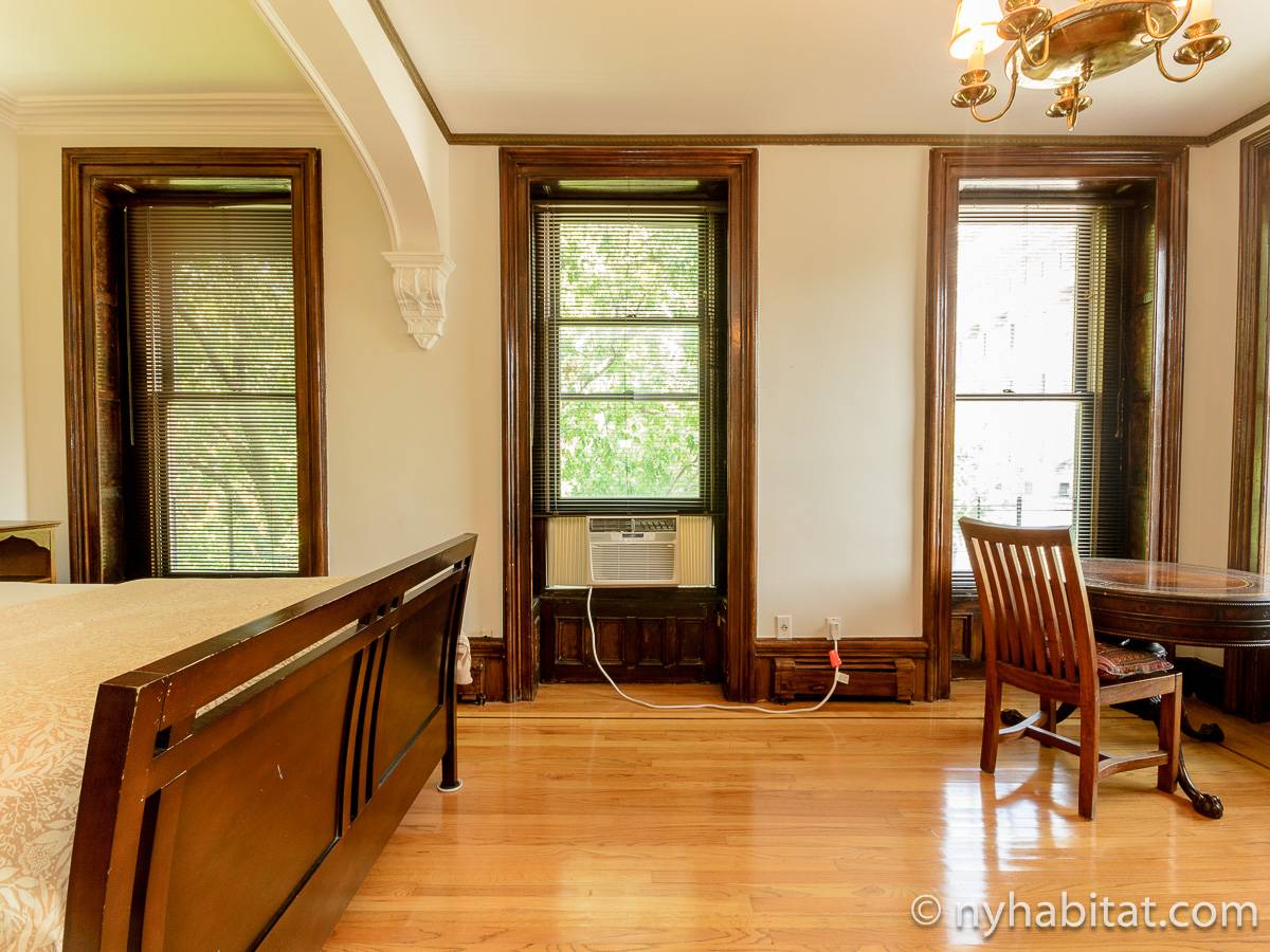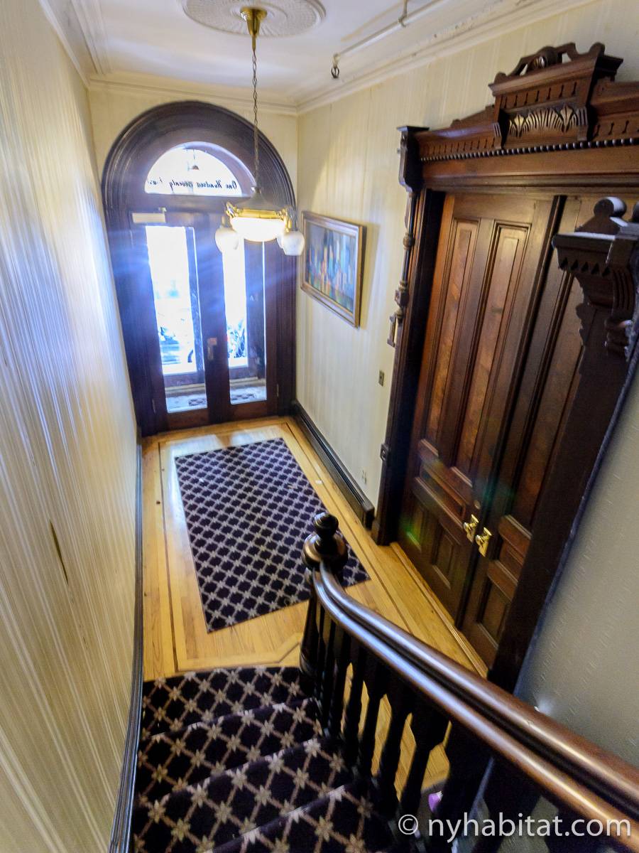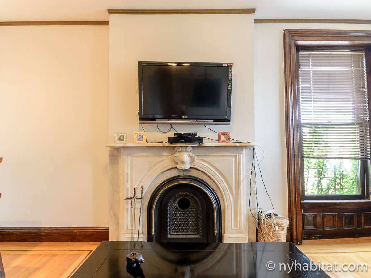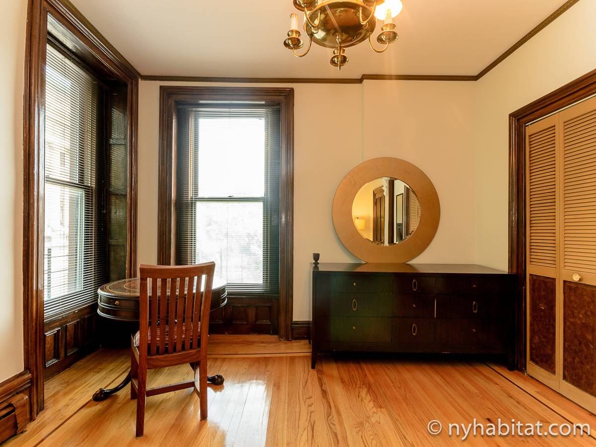 This fully furnished one bedroom apartment is located in Fort Greene, Brooklyn. The apartment is on the 3rd floor (considered 2nd by Europeans) of 4-story walk-up historic New York brownstone. There is an intercom/buzzer system for entry.