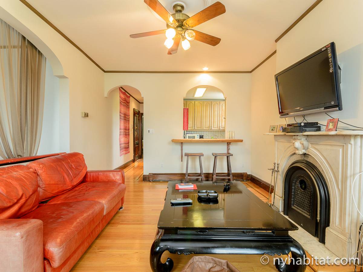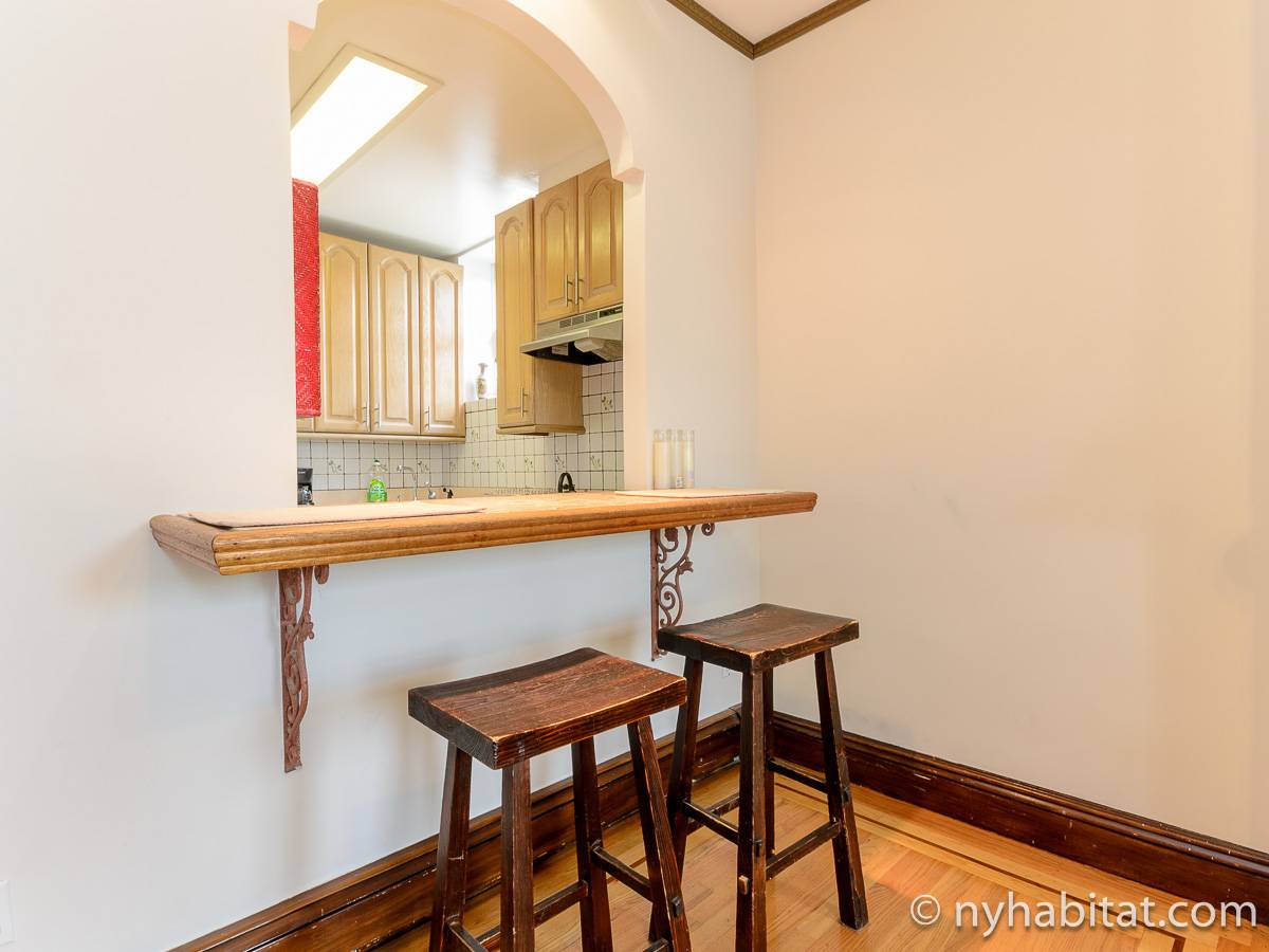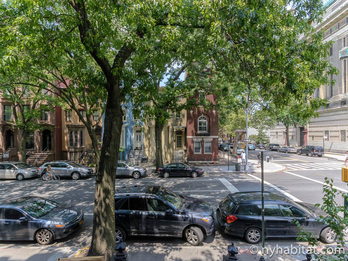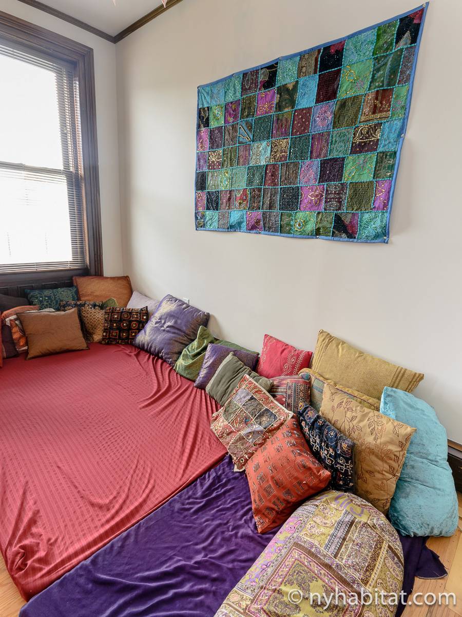 This fully furnished one bedroom apartment is located in Fort Greene, Brooklyn. The apartment is on the 3rd floor (considered 2nd by Europeans) of 4-story walk-up historic New York brownstone. There is an intercom/buzzer system for entry.