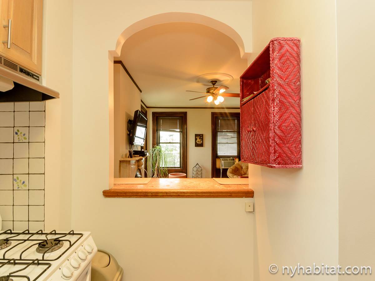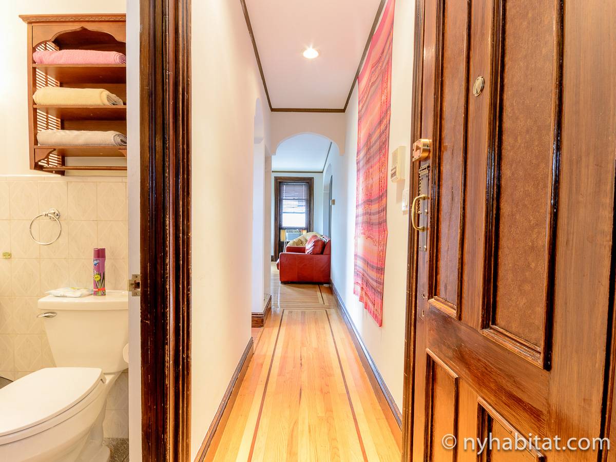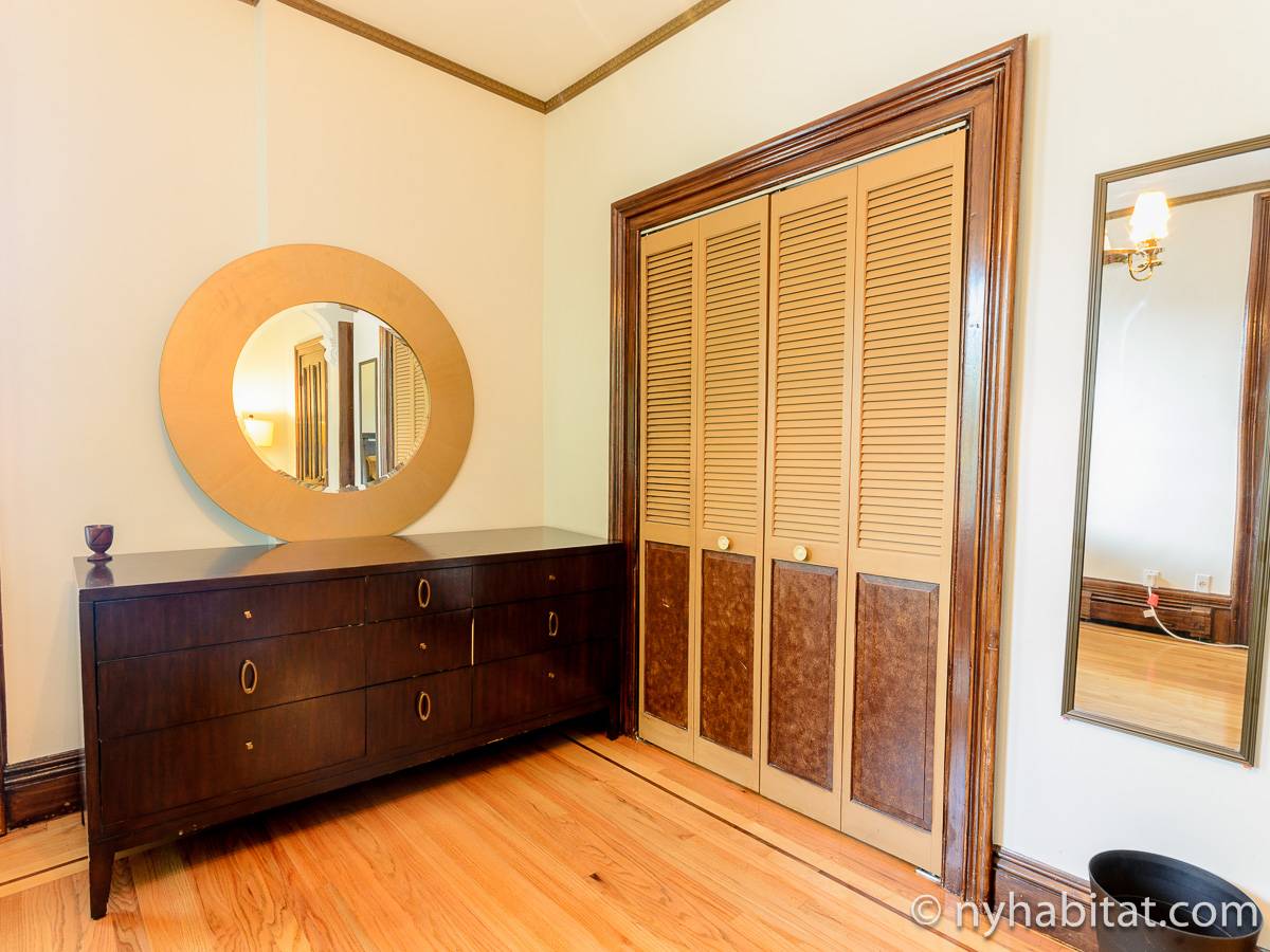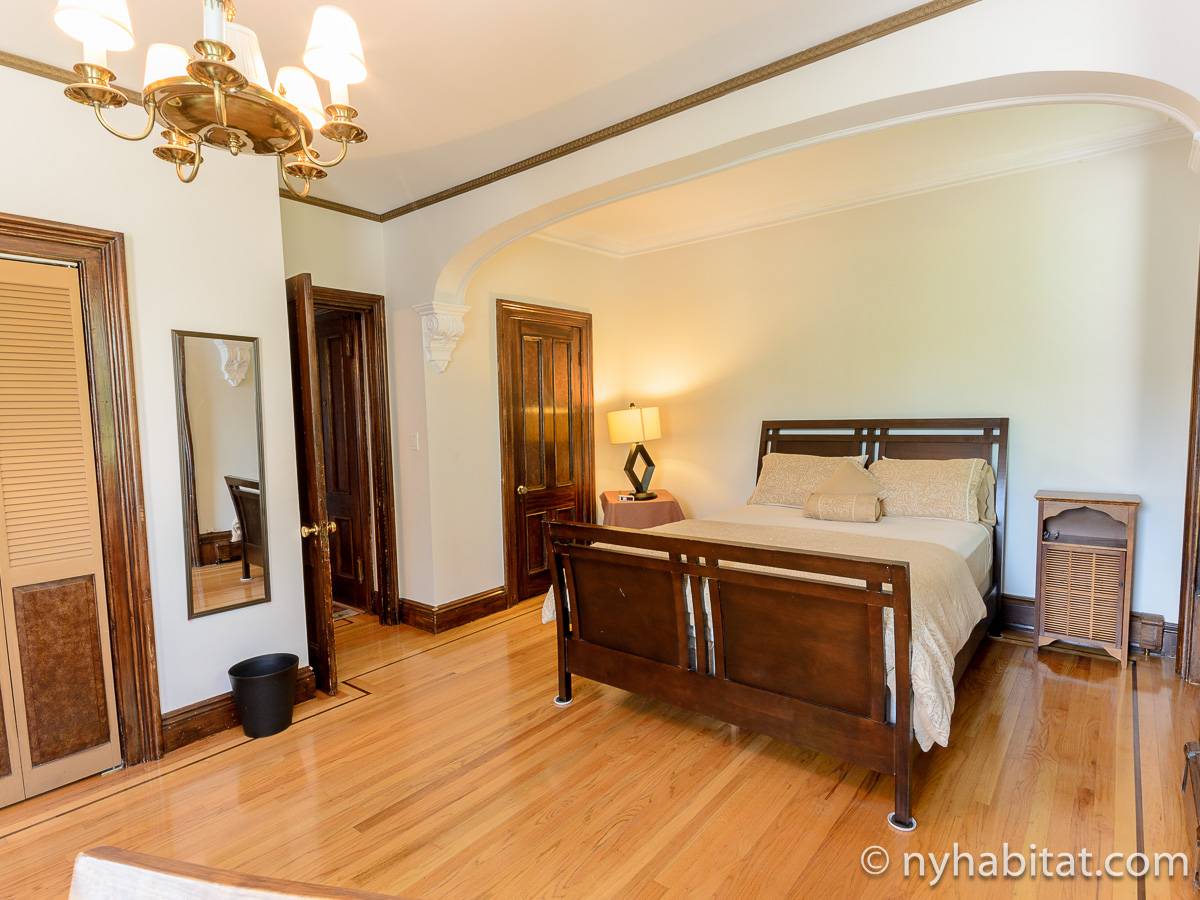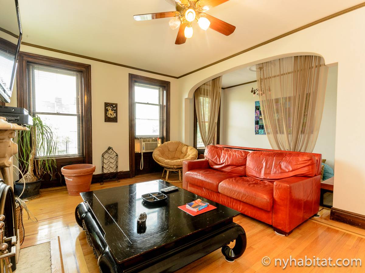 This fully furnished one bedroom apartment is located in Fort Greene, Brooklyn. The apartment is on the 3rd floor (considered 2nd by Europeans) of 4-story walk-up historic New York brownstone. There is an intercom/buzzer system for entry.