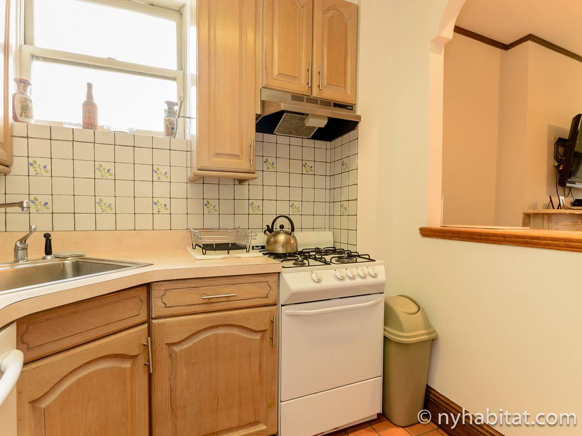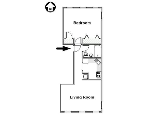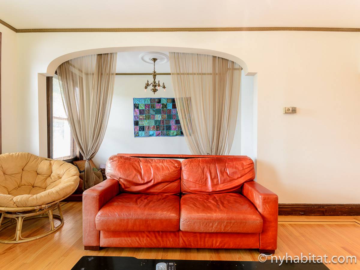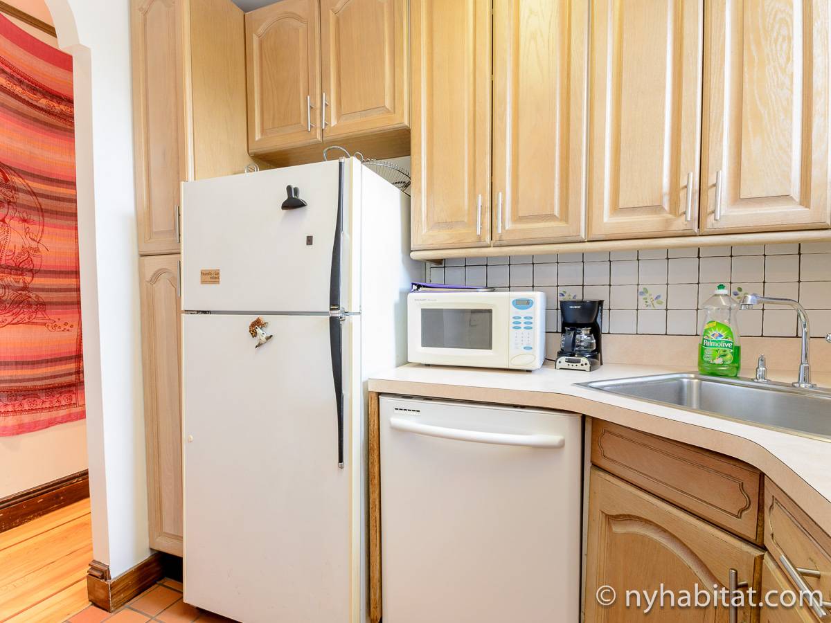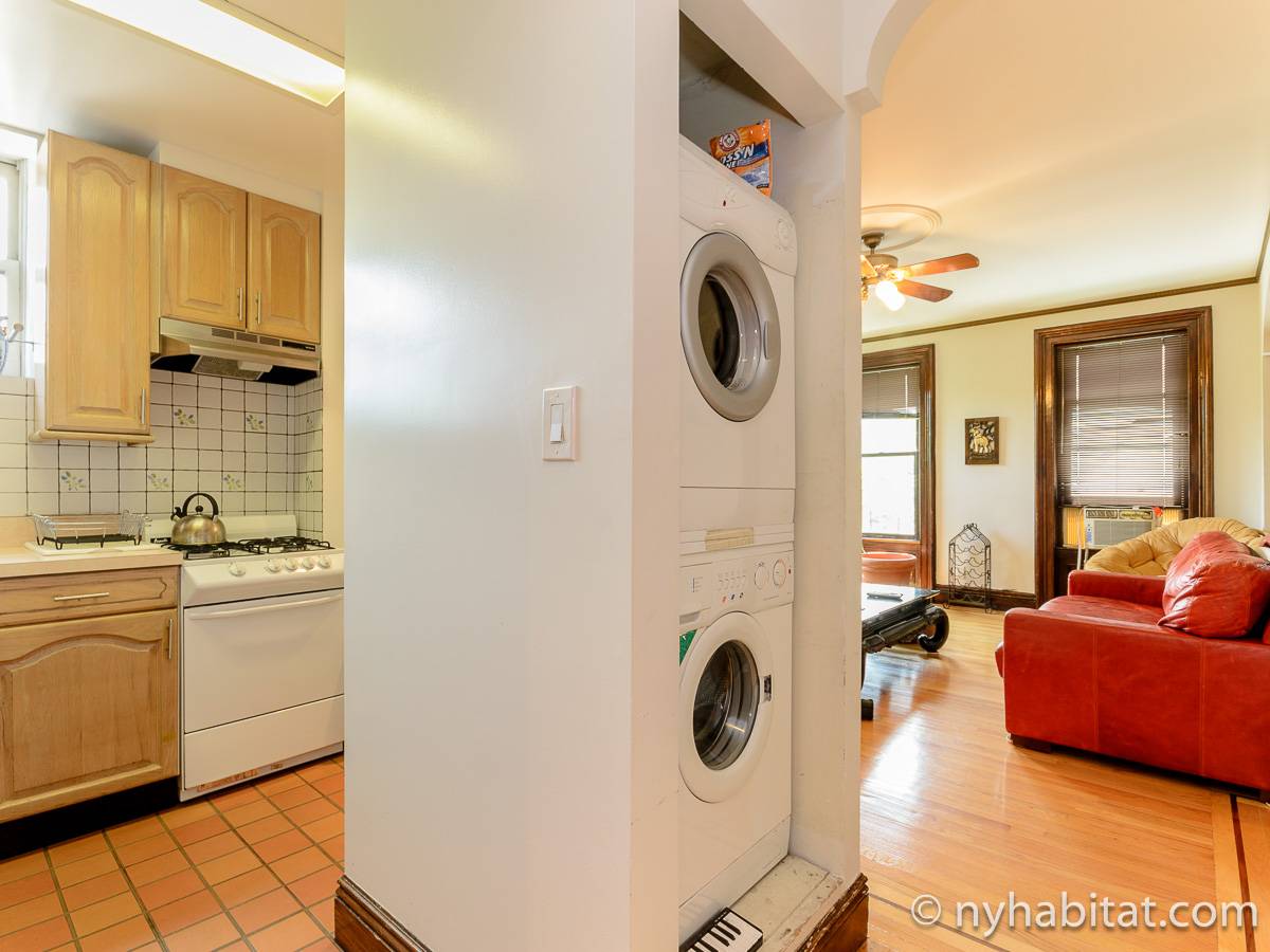 This fully furnished one bedroom apartment is located in Fort Greene, Brooklyn. The apartment is on the 3rd floor (considered 2nd by Europeans) of 4-story walk-up historic New York brownstone. There is an intercom/buzzer system for entry.