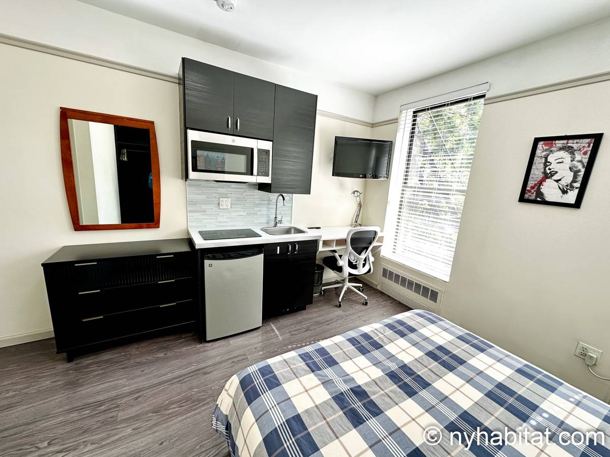 Location (Union square) is unbeatable. Would gladly stay here again, mainly for that reason. Friendly staff. The super is a great guy. Noise can be a serious factor for those who can't sleep through the humdrum. It was just fine for me. Hey, this is Manhattan! Main down side: no stove top. You just get a microwave. But the location is filled with restaurants. A bit pricey, but I had a wonderful time staying here. |