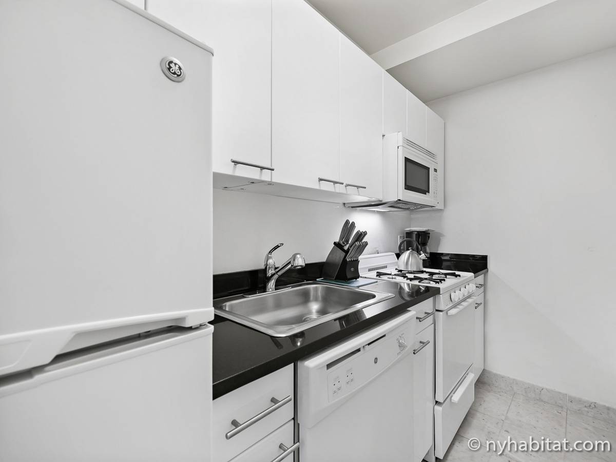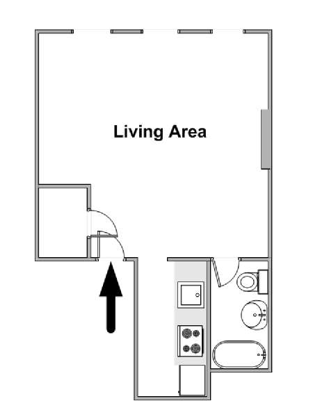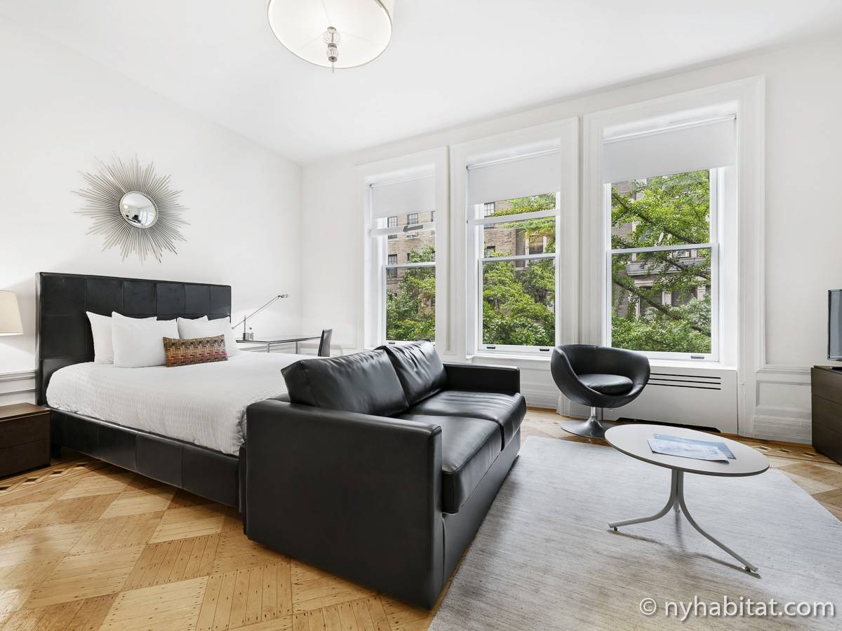 This furnished studio apartment is located on West 87th Street, less than a block from Riverside Park on the Upper West Side of New York City. The park includes the Hudson River Greenway, a path running alongside the river, where you can jog or stroll, enjoying the New Jersey skyline.